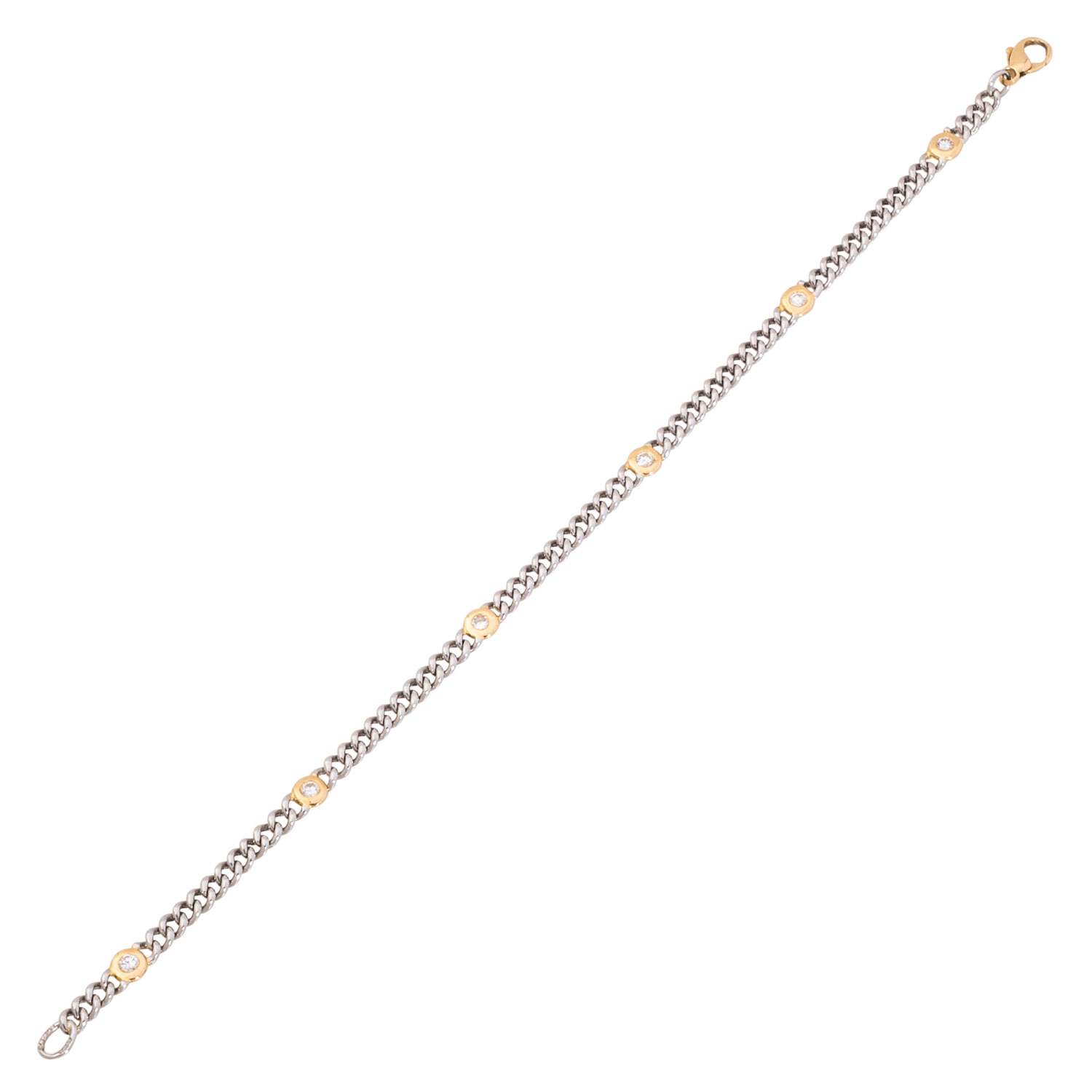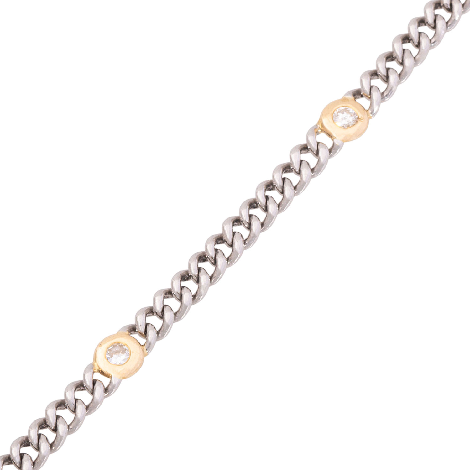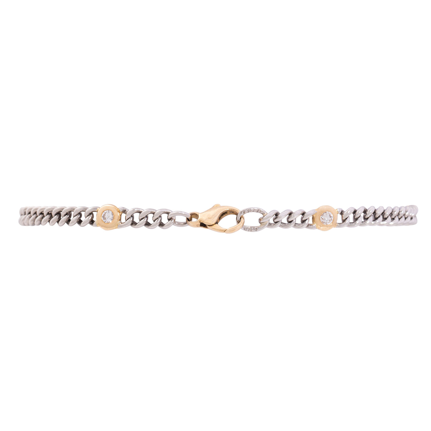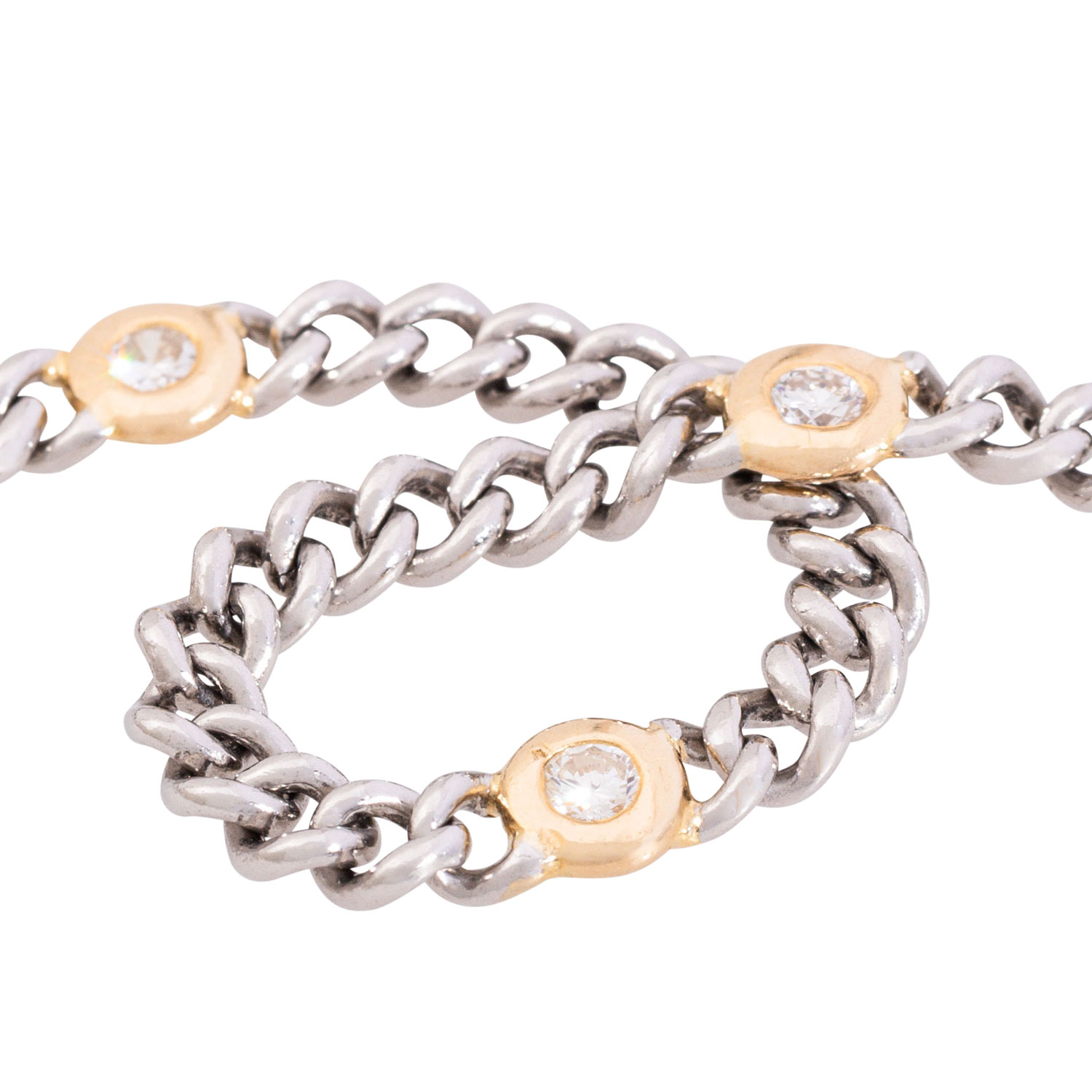 Bracelet, curb chain, with 6 brilliant cut diamonds, totalling 0.24 ct, good colour and clarity, Platinum 950, 18K yellow gold, 11.7g, L: 20 cm, carabiner clasp, late 20th century, minor signs of wear.