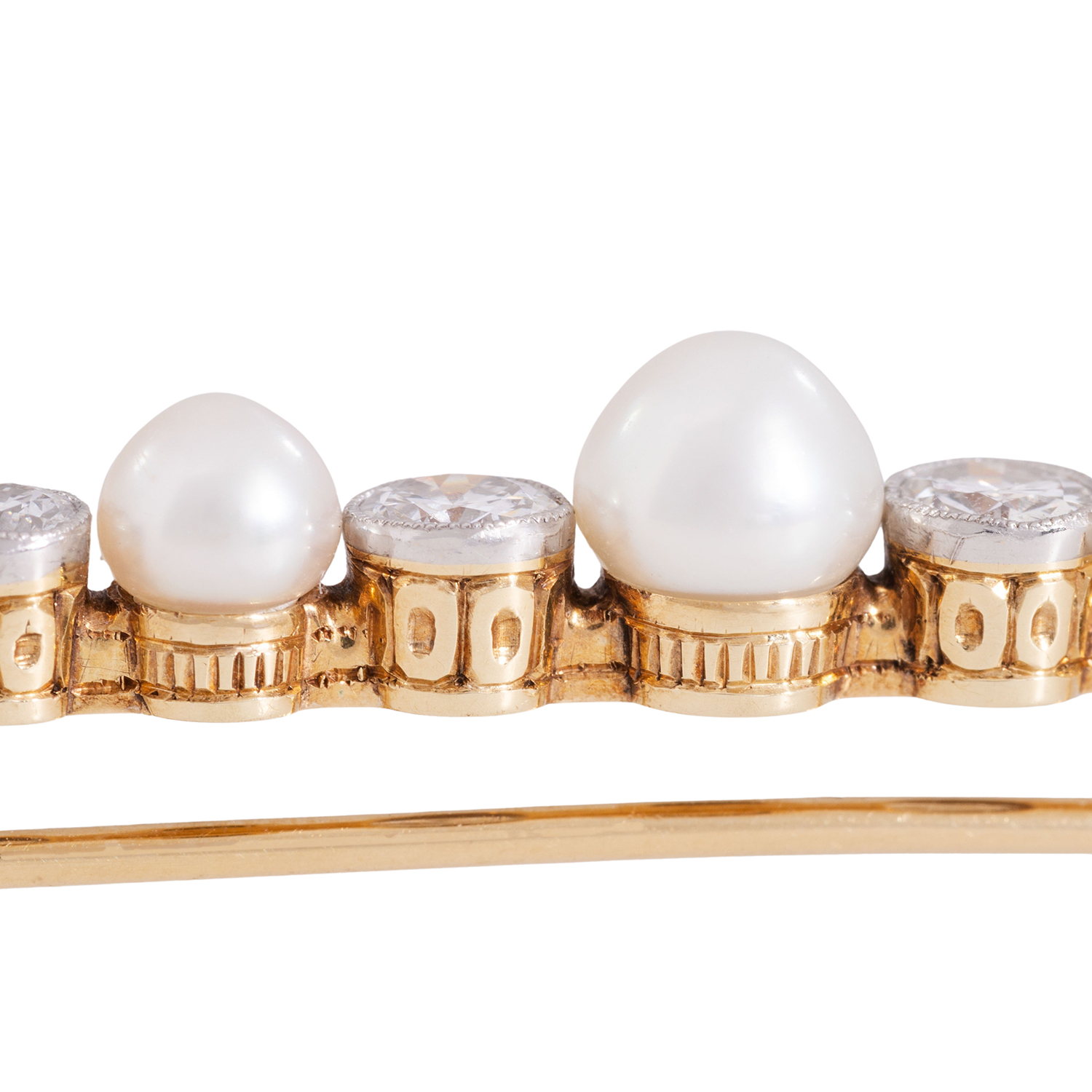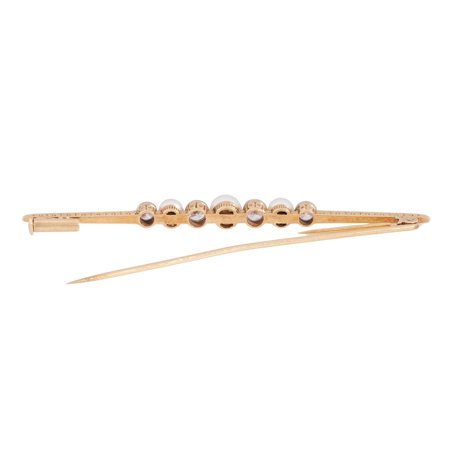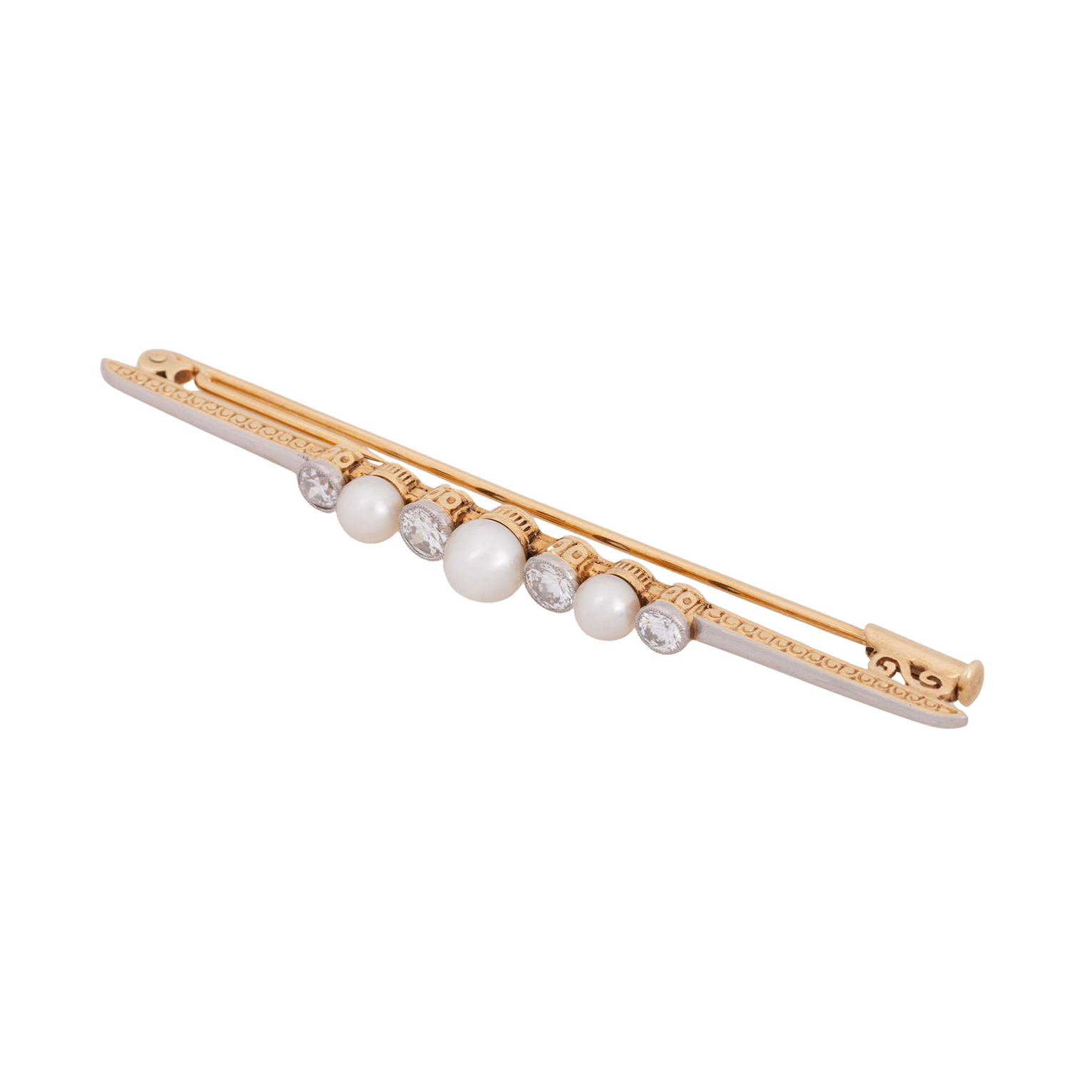 Art Déco fine bar brooch with 3 pearls and 4 diamonds totaling approx. 0.6 ct,