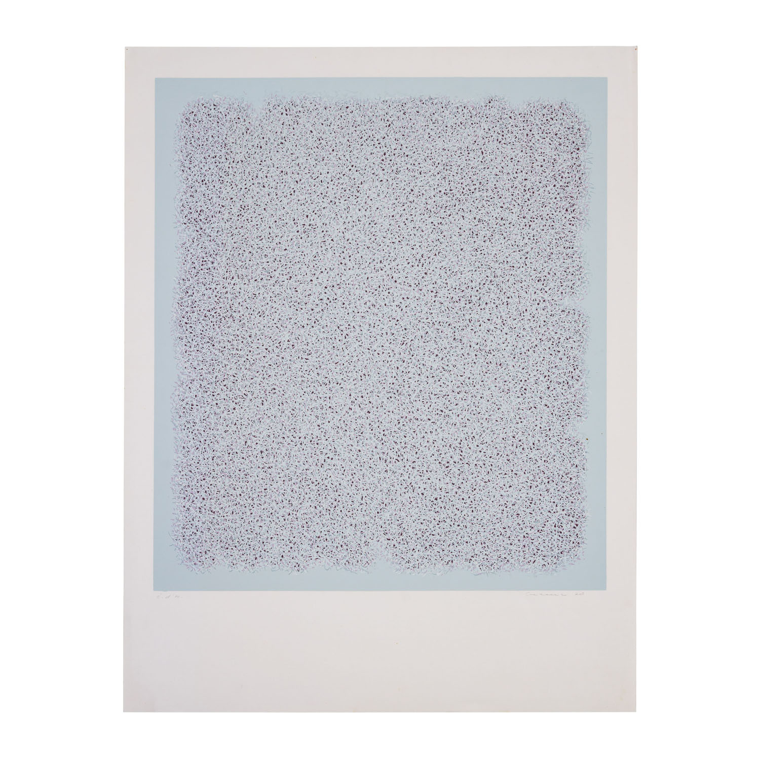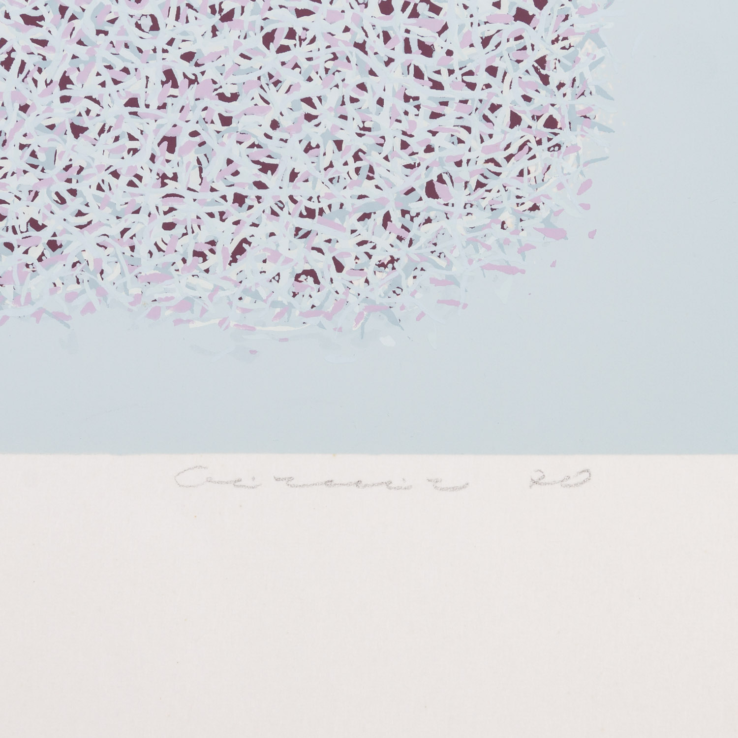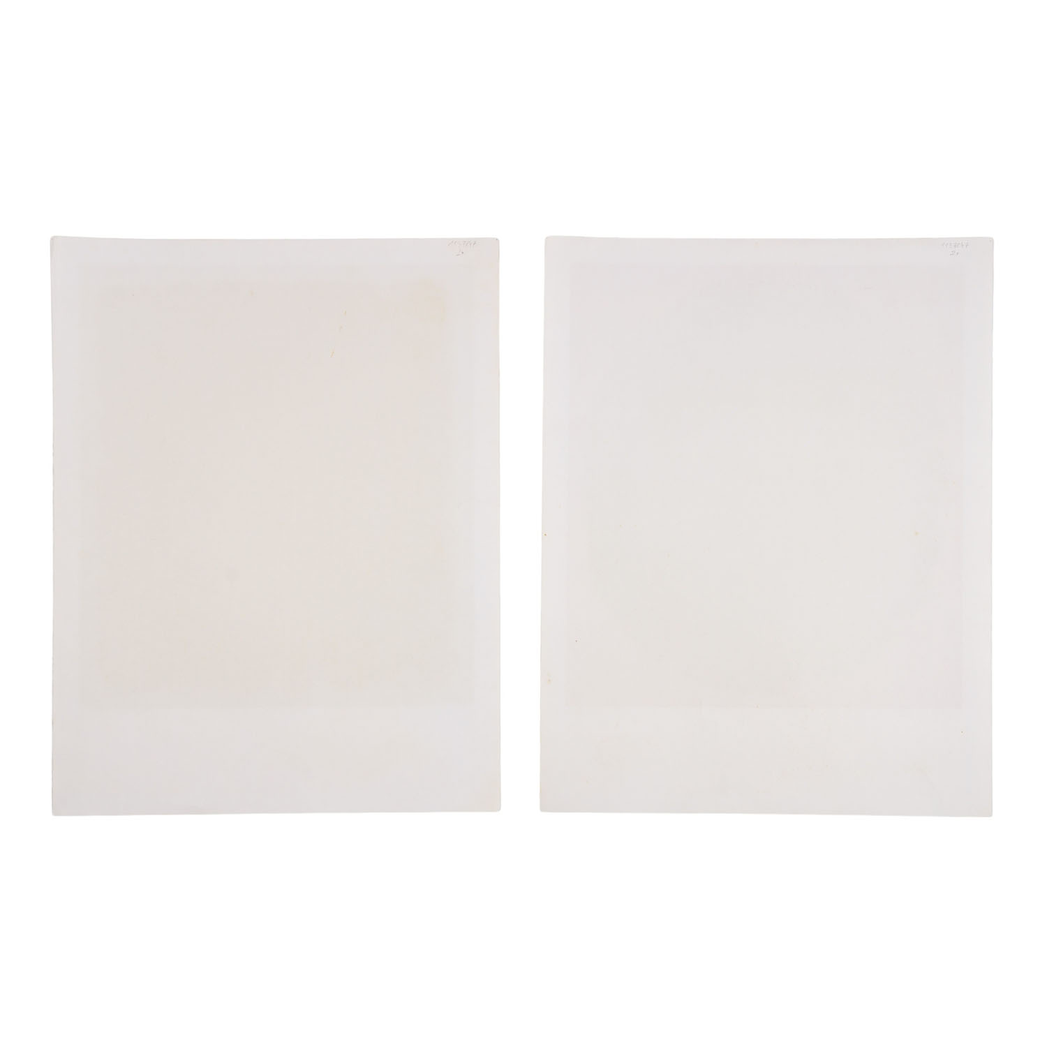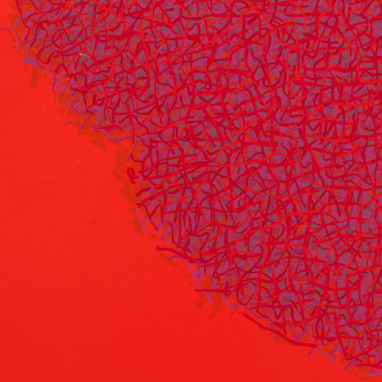 ARTIST 20th century, 2 colour screenprints ‘Abstrakte Komposition’, 1970, 1x in blue tones and 1x in red tones, each indistinctly signed and dated in pencil, 1x indistinctly inscribed ‘e. d. a.’ and numbered 13/25 in pencil, HxW: plate each approx. 50x44 cm, sheet each approx. 65x50 cm. Signs of age and creasing, slightly browned, partially stained, pinholes to corners.