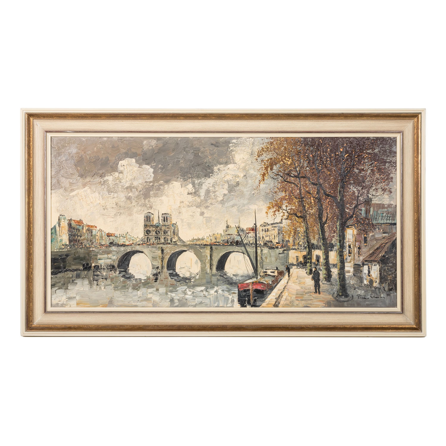 ARTIST/IN 20th century, ‘Paris, Blick auf Notre Dame’, u.r. indistinctly signed ‘Lamm’ or ‘Larson’?, oil/canvas, HxW: approx. 50x100 cm (65x115 cm with frame). Signs of age and wear, minimally. Pressure marks, small colour flaking. With frame.