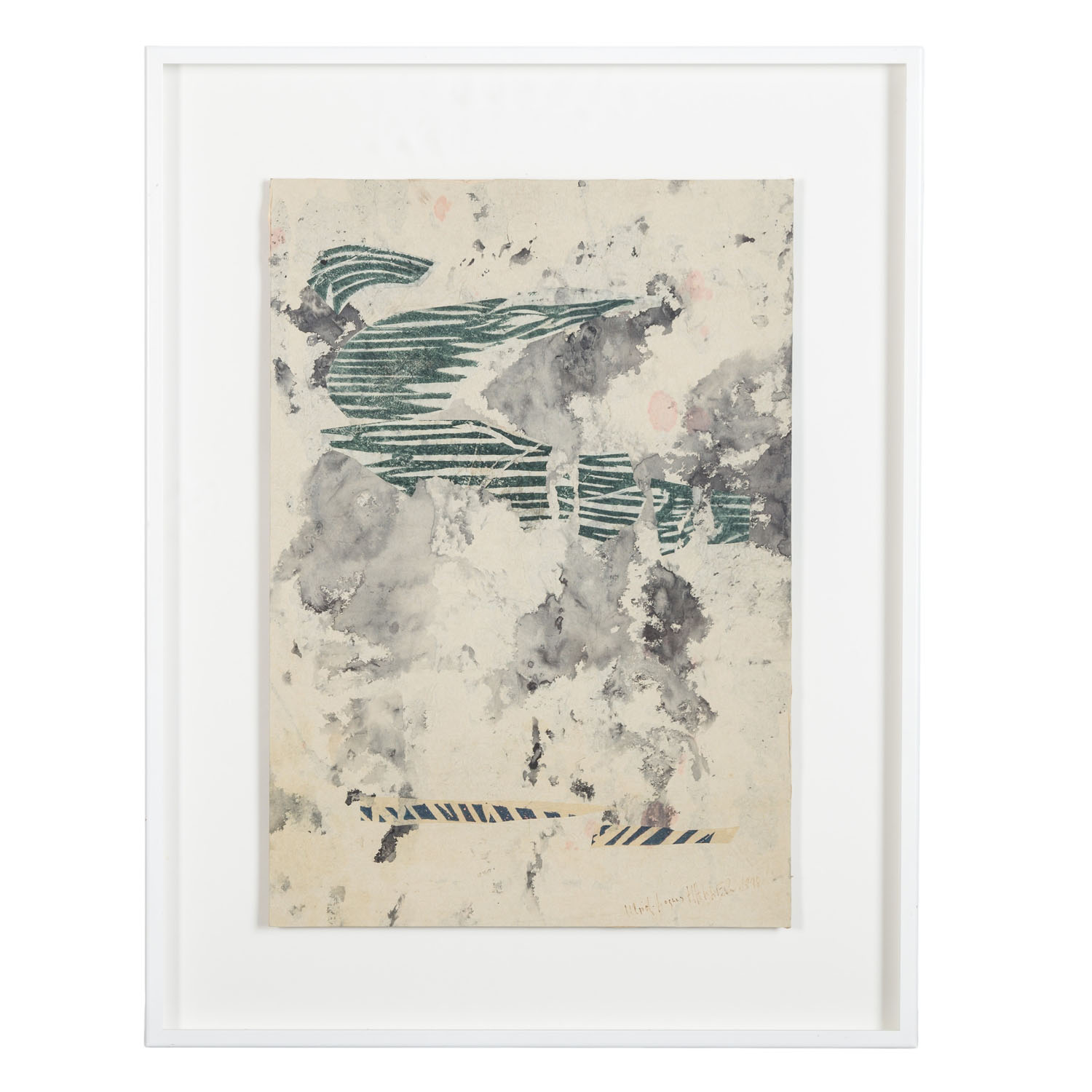 ARTISTS OF THE 20TH CENTURY, Collage with lithograph, signed lower right. HxWxD: 49/34.5 cm (66/51.5 cm with frame). Traces of age, cardboard wavy.