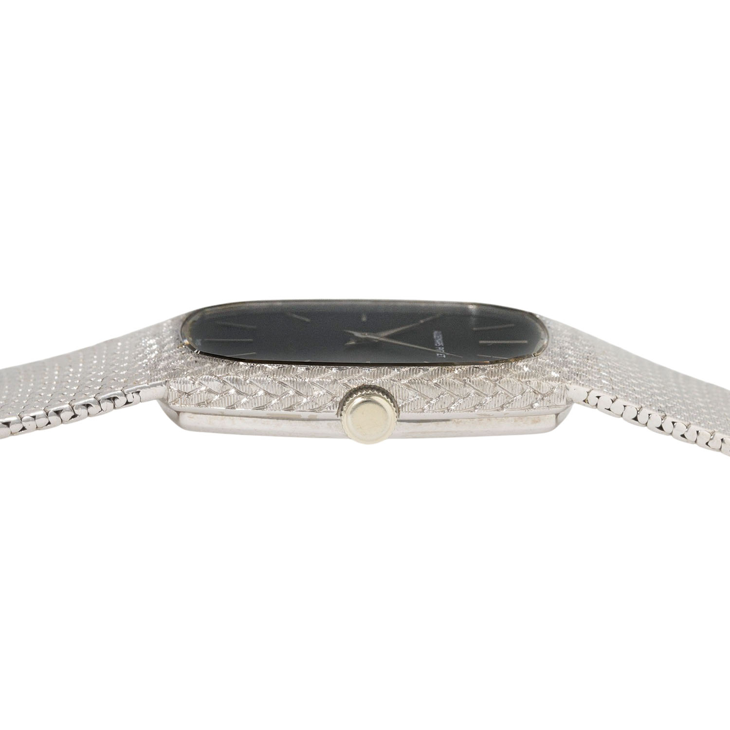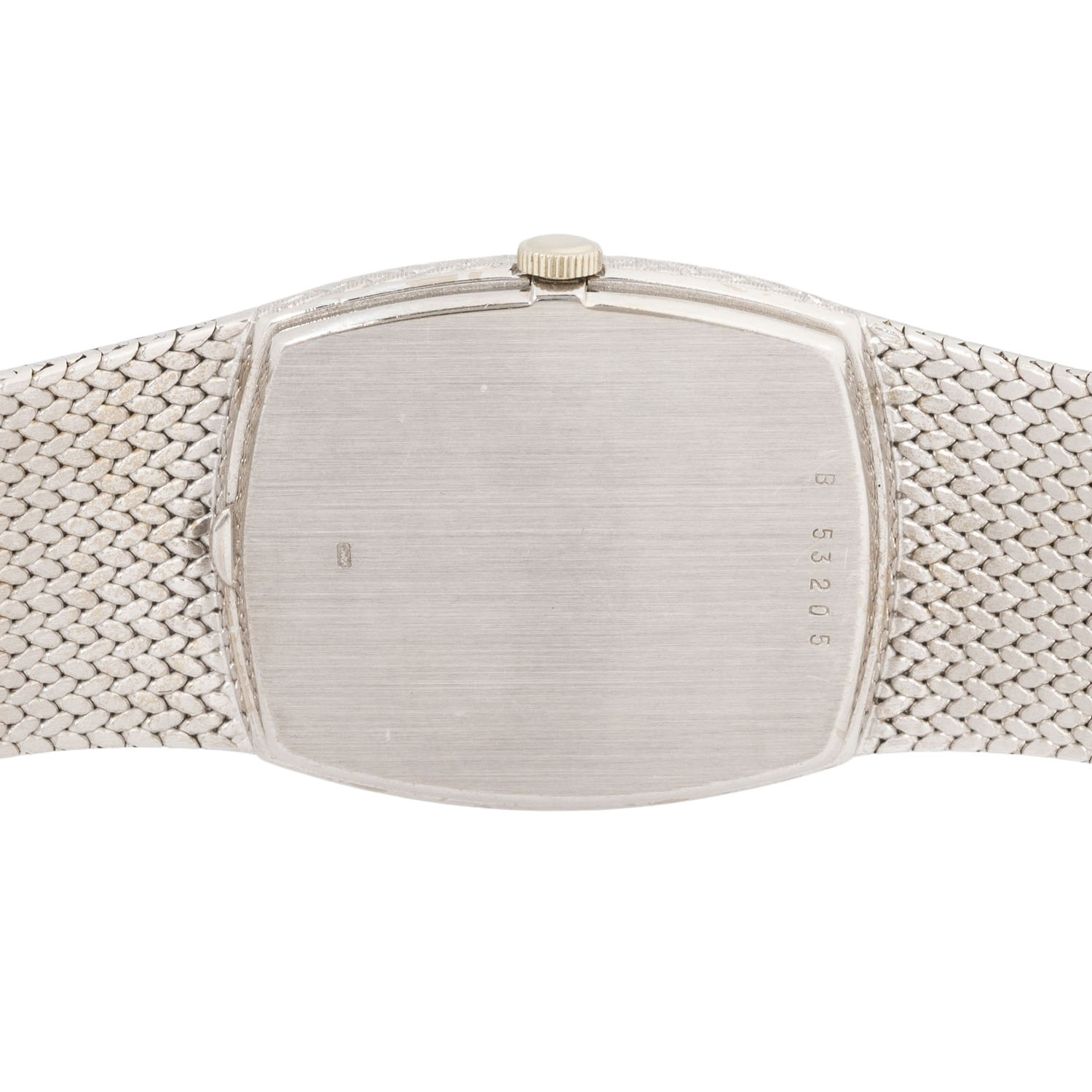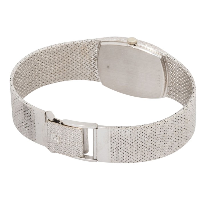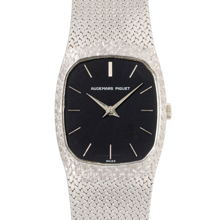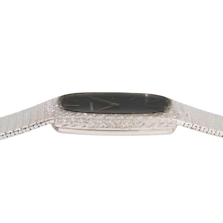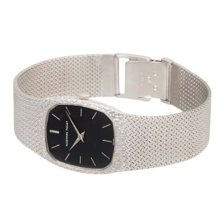 AUDEMARS PIGUET Cobra men's watch from the 1980s. 18K white gold. Case number B53205. Hand-wound movement Cal. 2090 with good performance (+7 s/d. 241° amplitude). Black dial with baton indices. Integrated Audemars Piguet bracelet in 18K white gold with folding clasp. Good condition with slight signs of wear. Diameter approx. 26.5 mm (measured without crown). Suitable for wrist sizes up to approx. 20 cm.