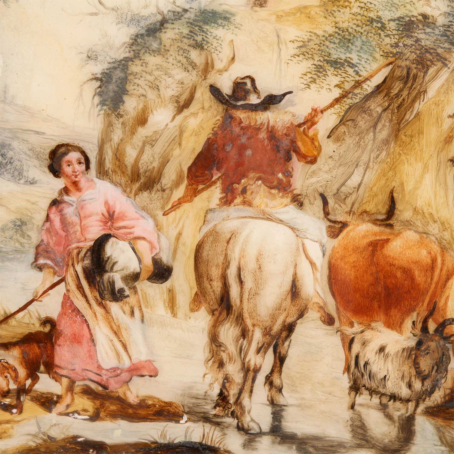 BACKGROUND PAINTER Augsburg 18th/19th c., "Shepherds by the river",