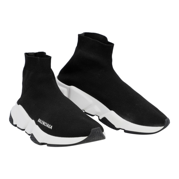 BALENCIAGA sneaker 'SPEED', size 37. Current retail price: €795. Elastic textile in black with rubberized outsole in white. Box and dust bag enclosed. Signs of wear present.
