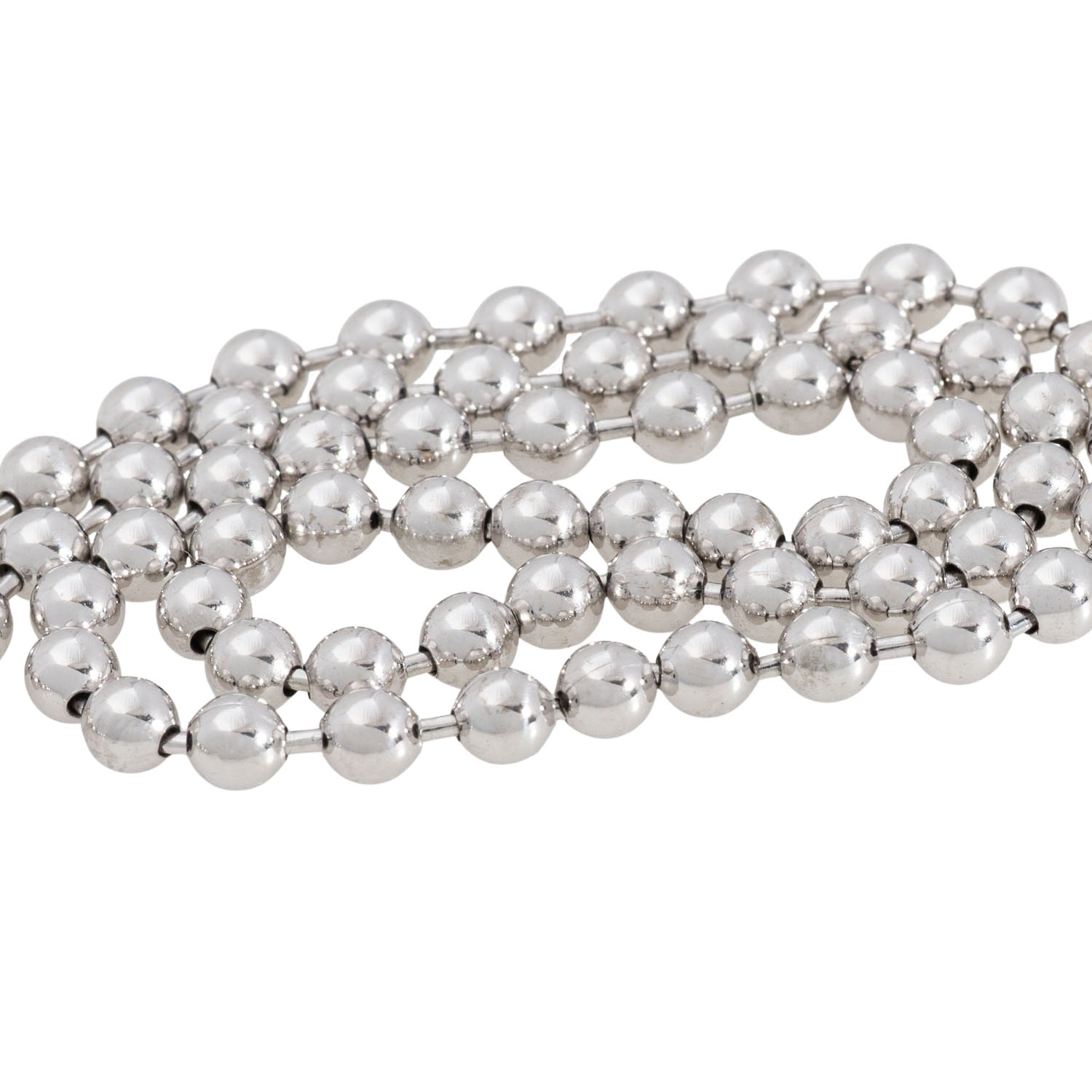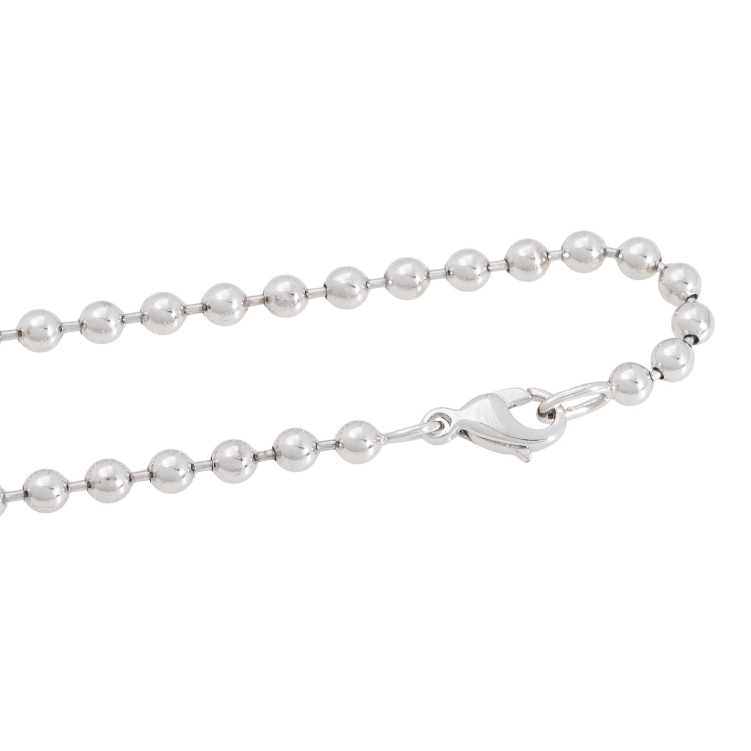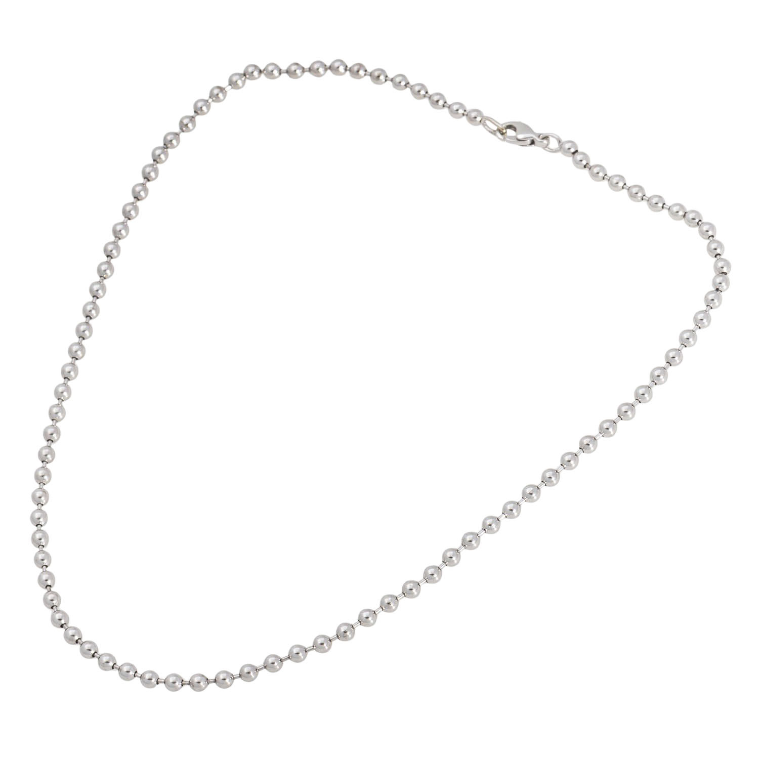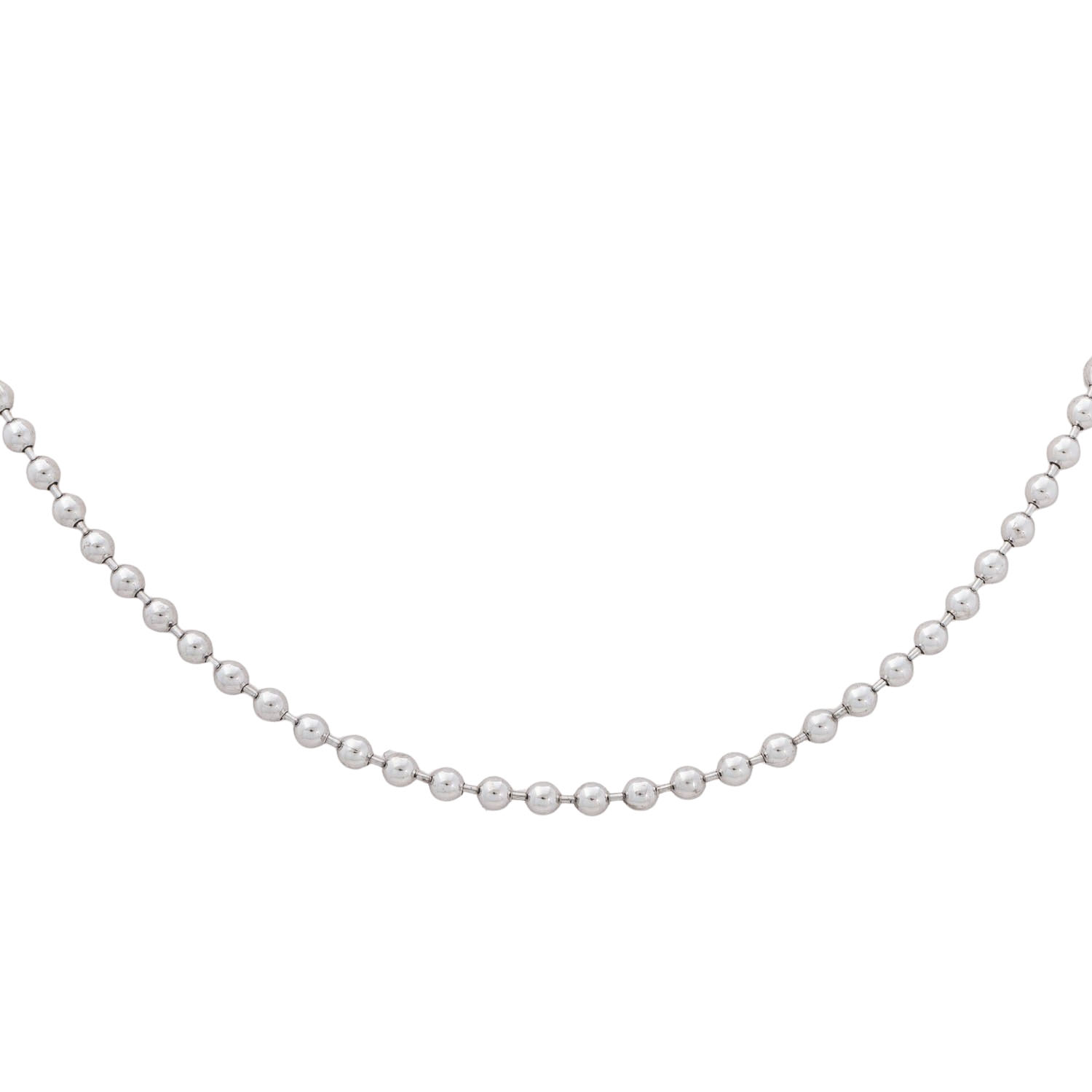 Ball chain, D: 3.2 mm, 14K white gold, 15.8 g, L: 40.5 cm, carabiner clasp. late 20th century, minimal signs of wear.