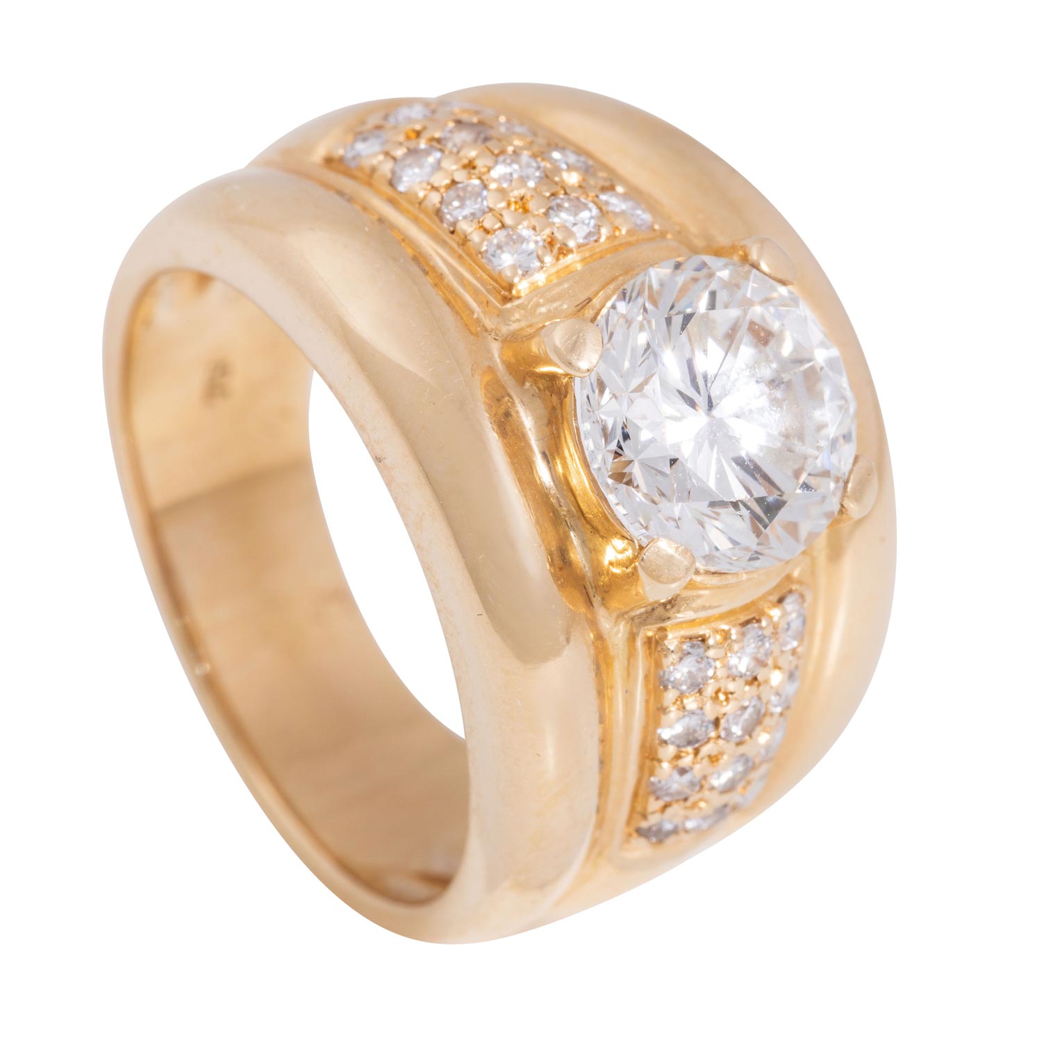 Band ring, center set with 1 brilliant-cut diamond 2.1 cts.