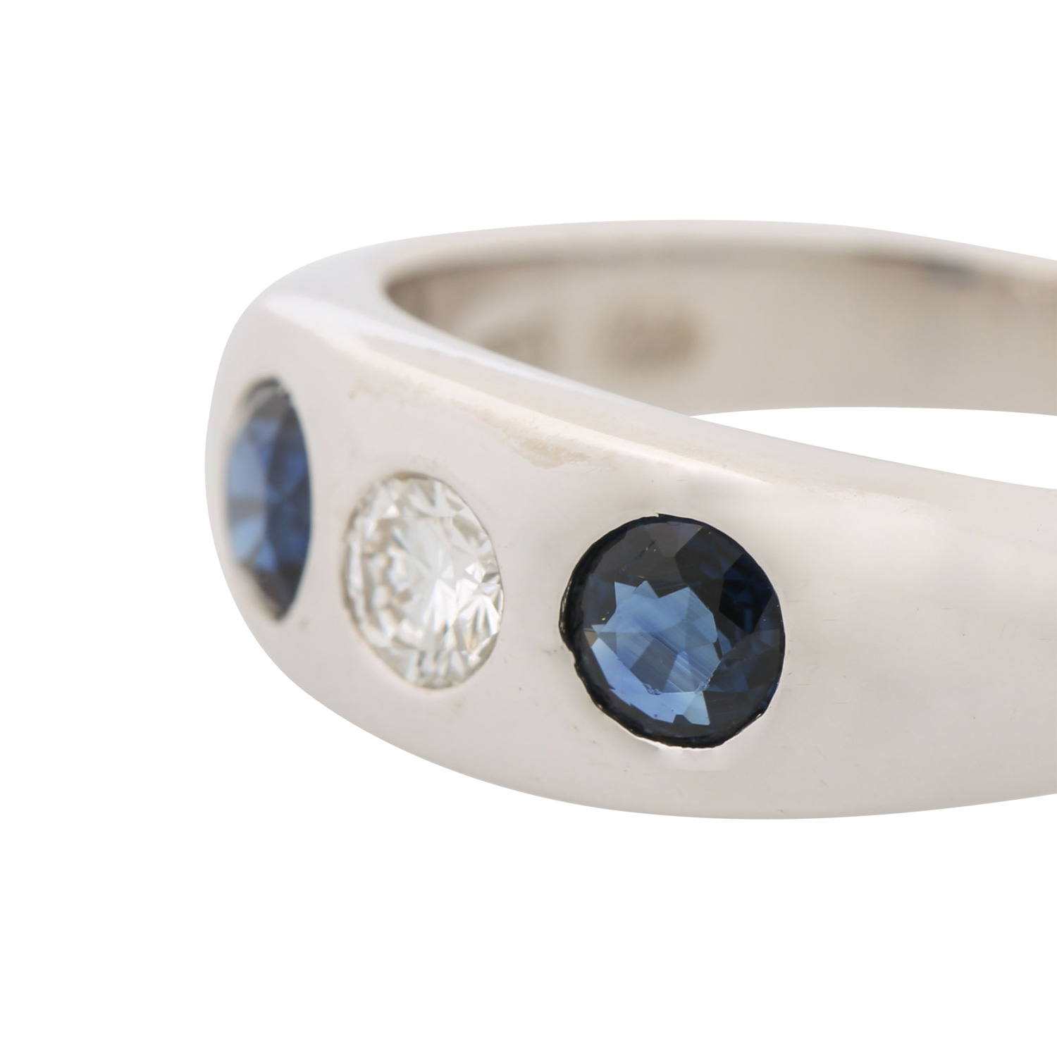 Band ring with brilliant-cut diamond and 2 sapphires,