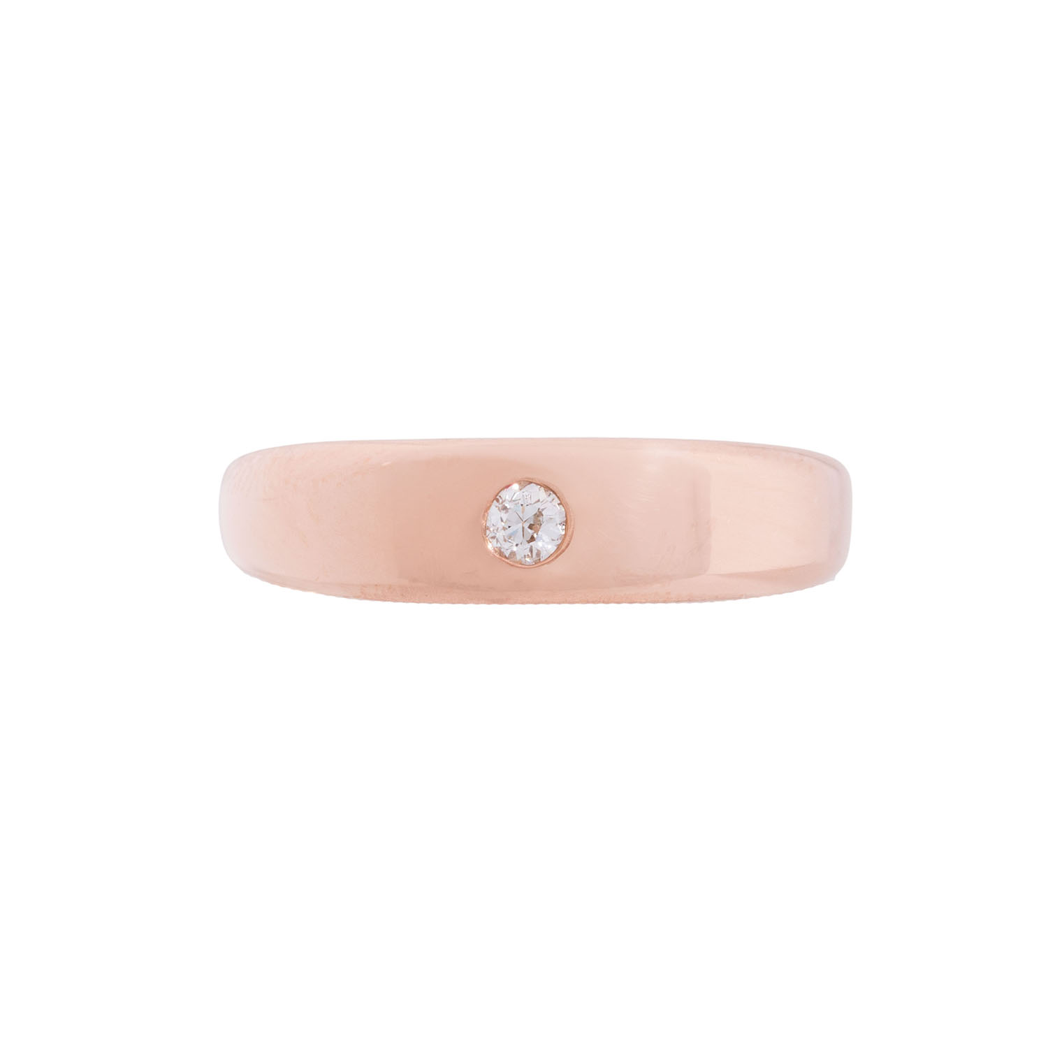 Bandring with old european cut diamond, ap. 0.10 ct, STW (I-J)/VS, 14K red gold, 4.3 g, ring size 55, 20th century, minimal signs of wear.