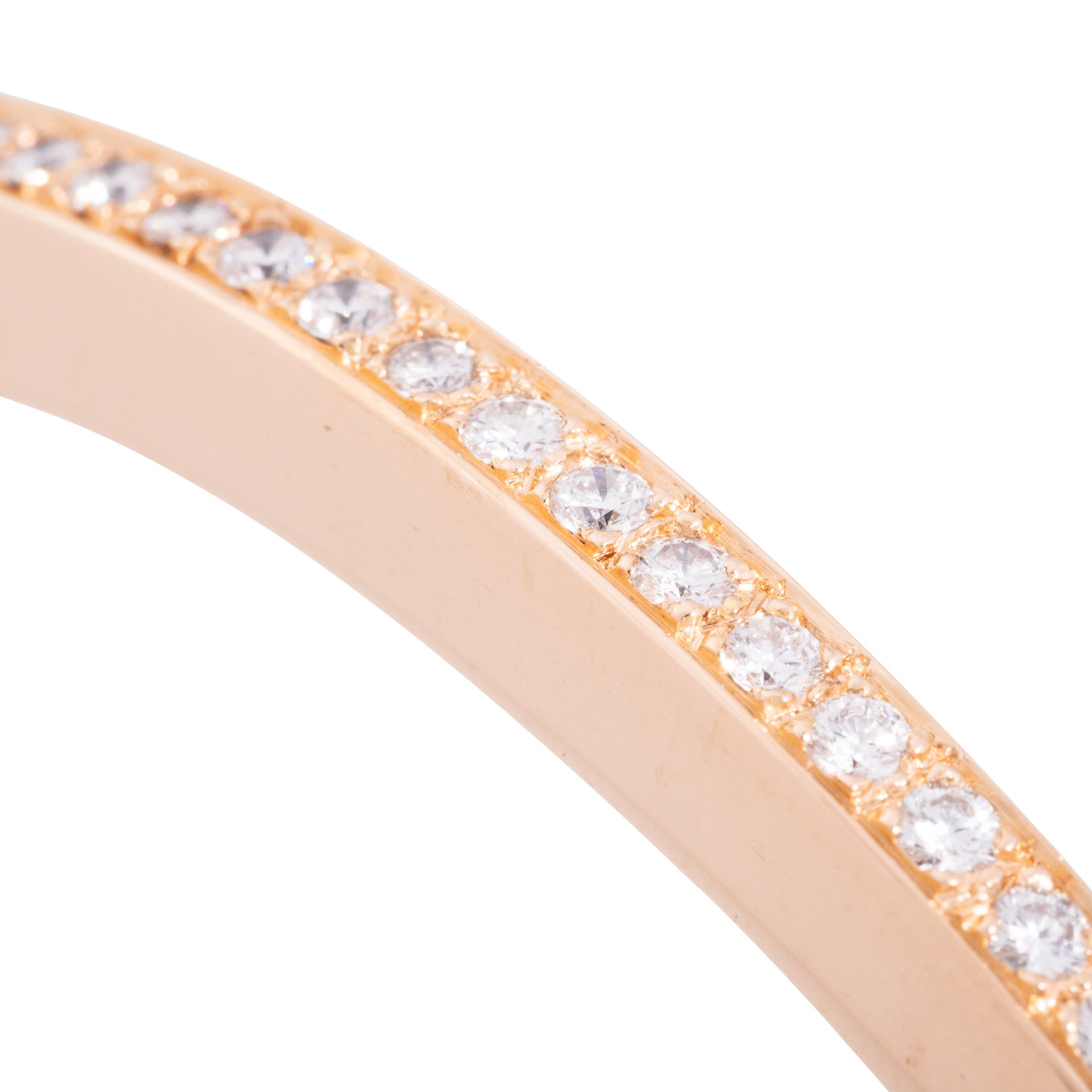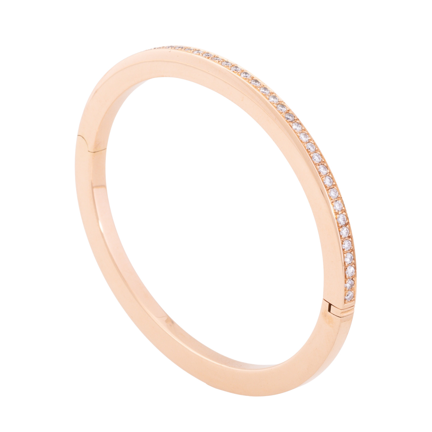 Bangle with 43 brilliant-cut diamonds totalling approx. 1.29 ct, RW (G)/SI, 18K rose gold, 29.7 g, inner circumference: approx. 17 cm, width: approx. 4 mm, 21st century, minimal signs of wear, with hallmark.