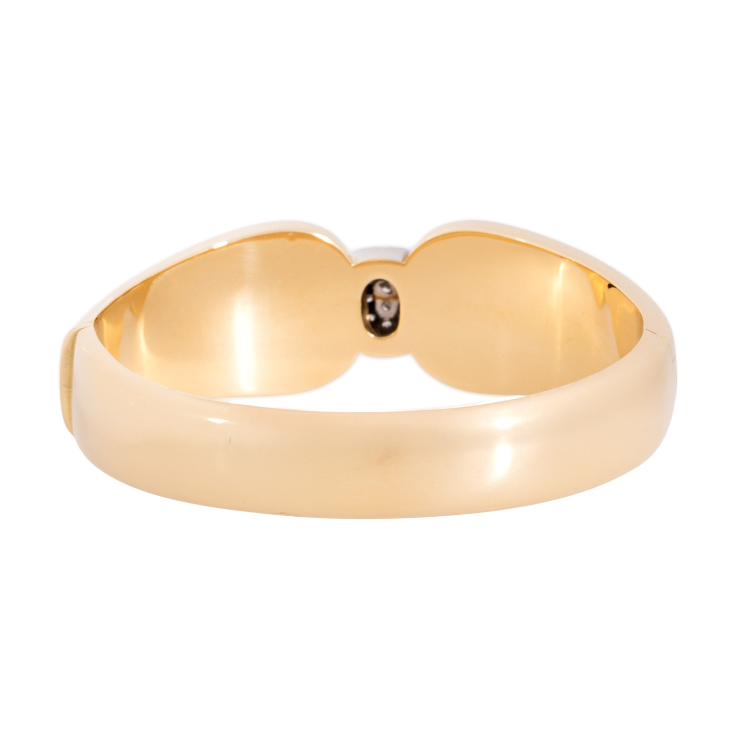 Bangle with 93 brilliant-cut diamonds, totalling ca. 1.3 ct, good colour and clarity, 18K yellow gold, 44.8 g, inner circumference ca. 16.5 cm, 2nd half of 20th century, minor signs of wear, handcrafted.