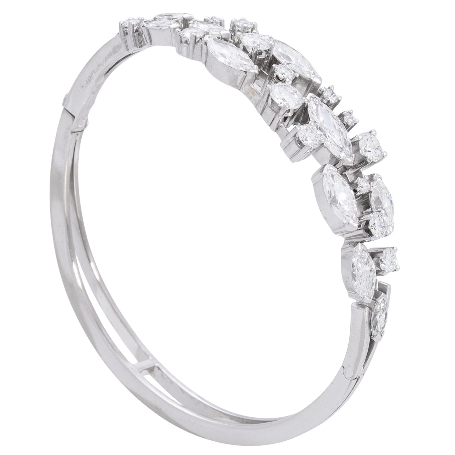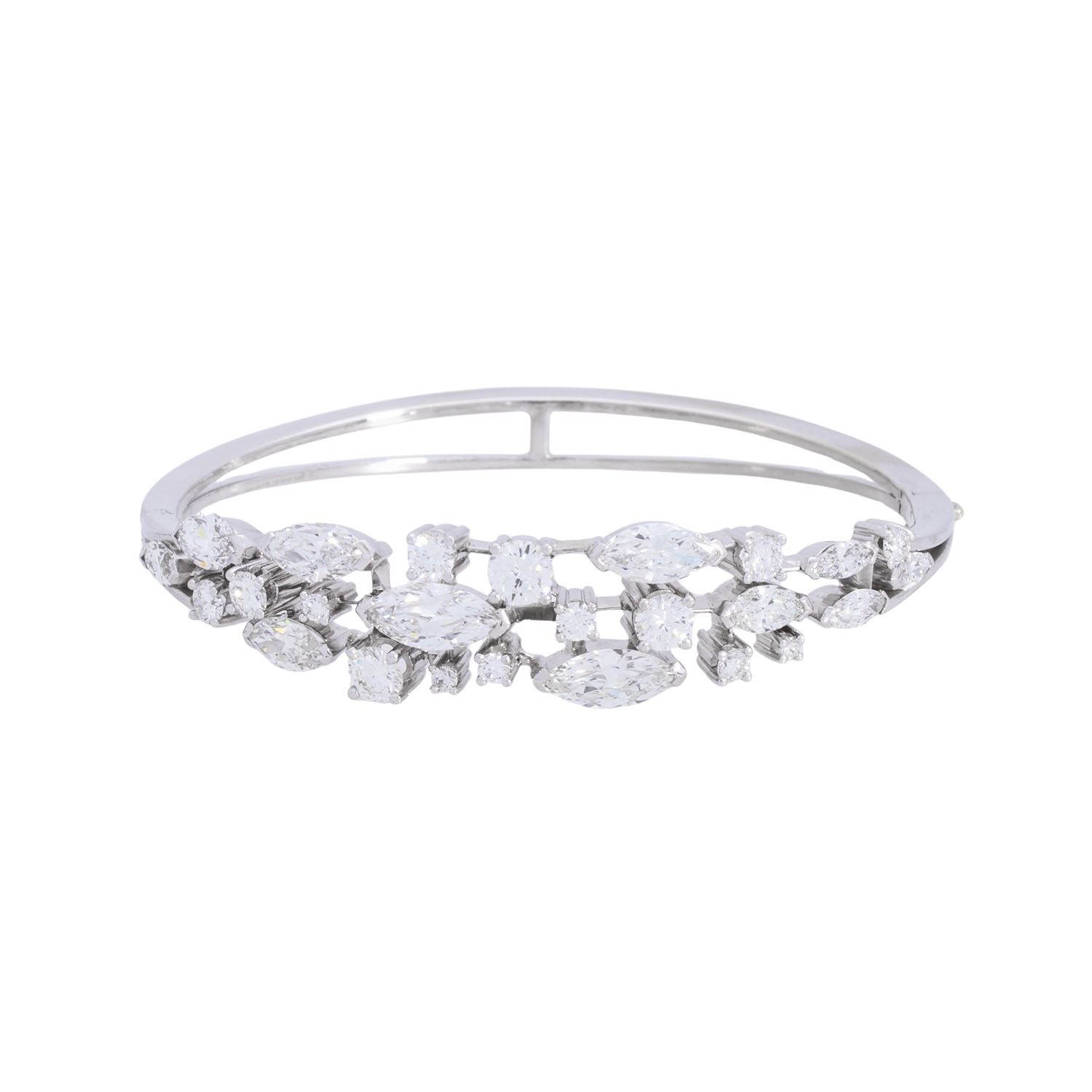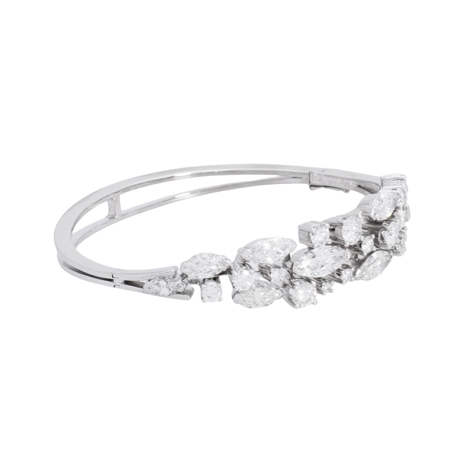 Bangle with 10 navette-cut diamonds totalling ca. 4 ct, and brilliant-cut diamonds totalling ca. 1.4 ct, ca. WHITE-STW (H-J)/VS-SI, 18K white gold, 20.6 g, inner circumference ca. 15 cm, 2nd half of 20th century, signs of wear, handcrafted.