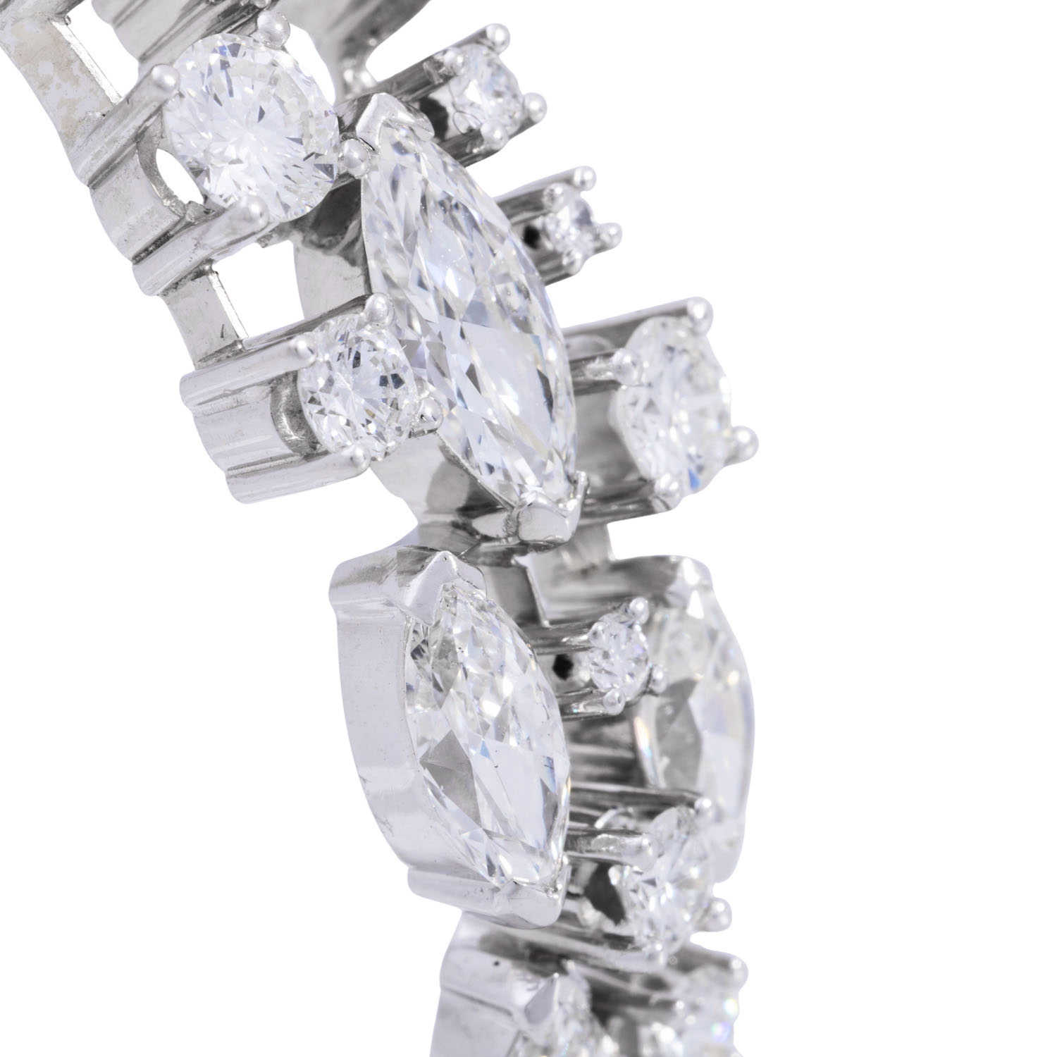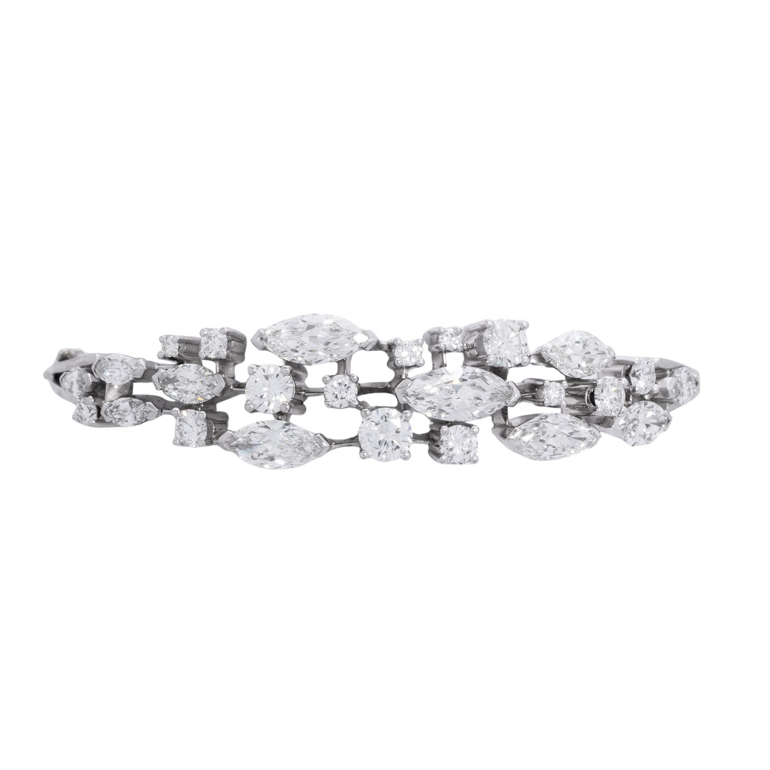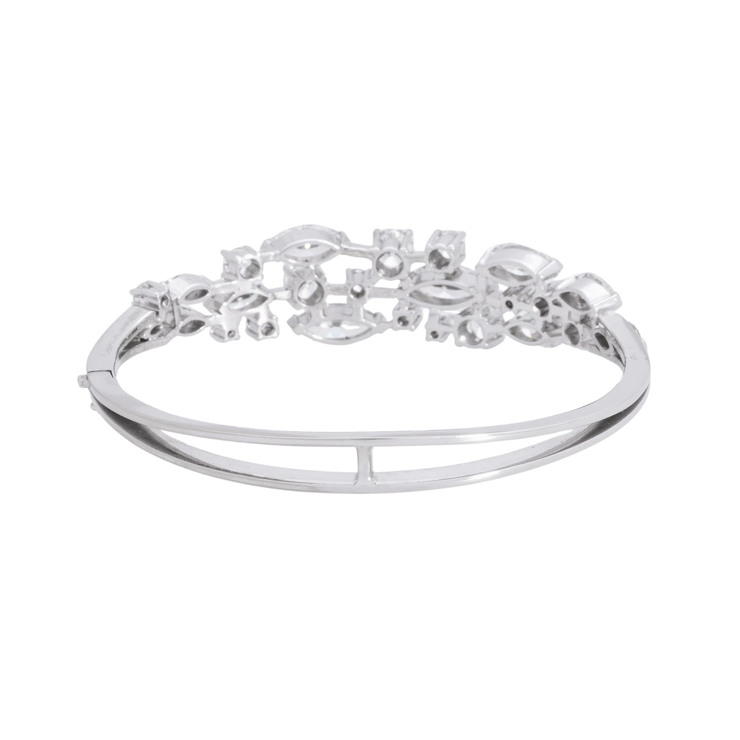 Bangle with 10 navette-cut diamonds totalling ca. 4 ct, and brilliant-cut diamonds totalling ca. 1.4 ct, ca. WHITE-STW (H-J)/VS-SI, 18K white gold, 20.6 g, inner circumference ca. 15 cm, 2nd half of 20th century, signs of wear, handcrafted.