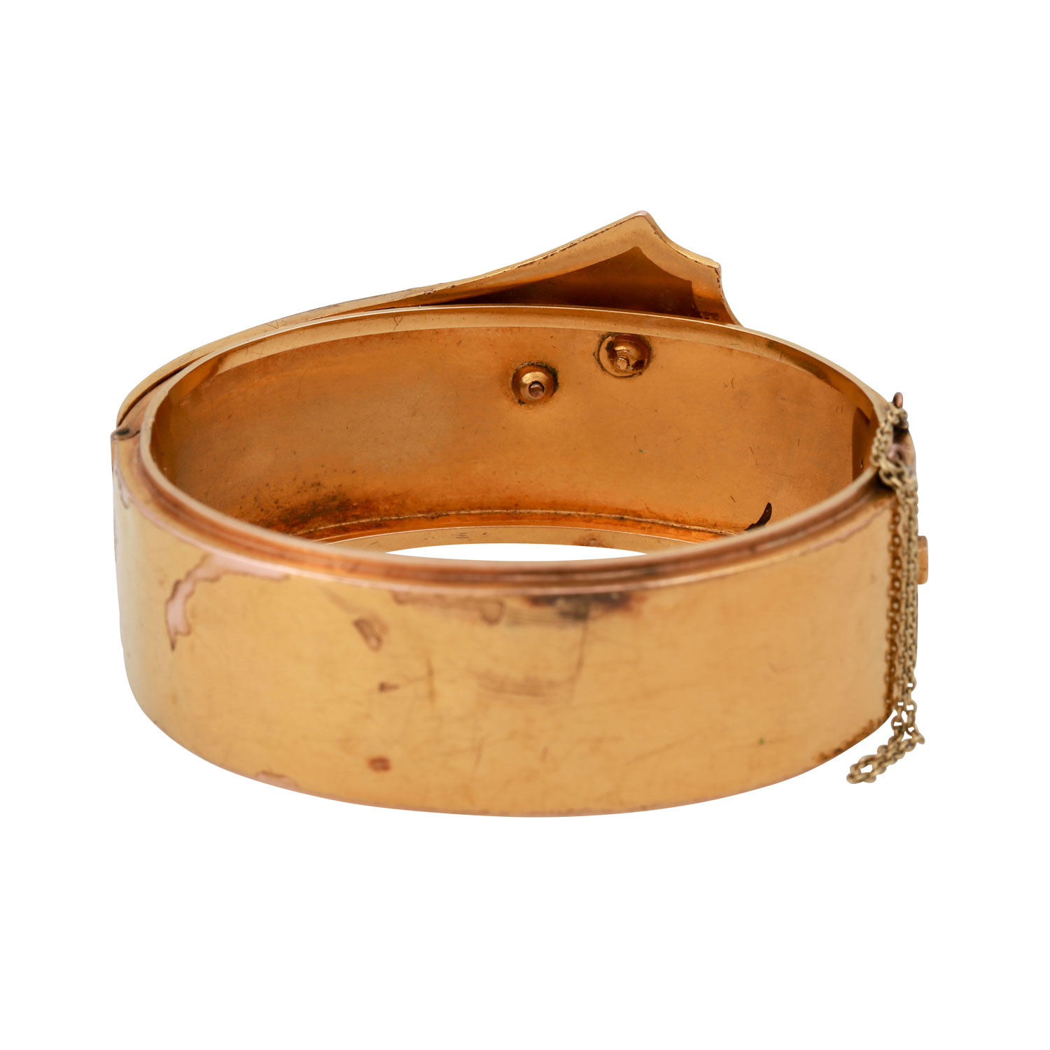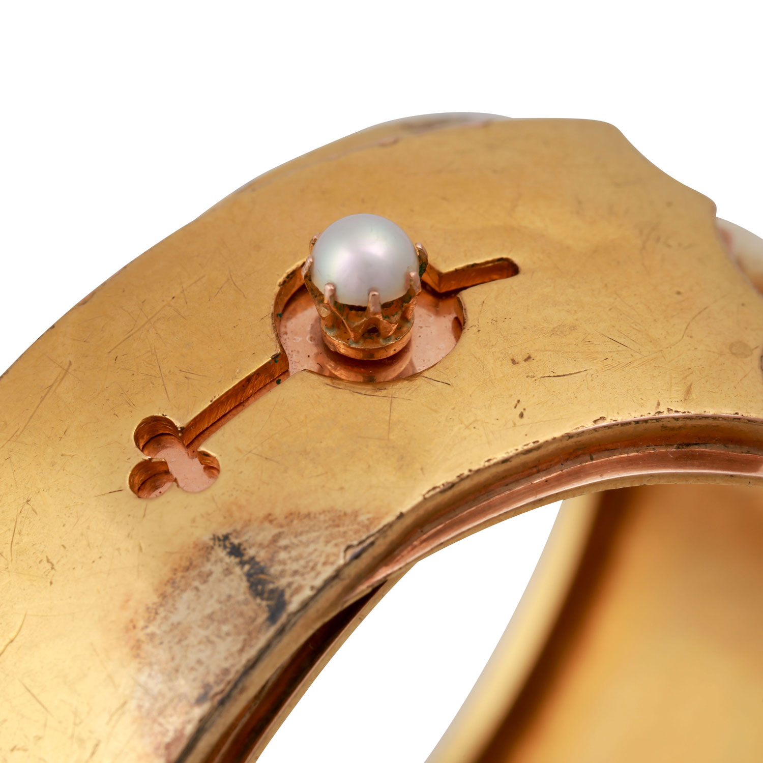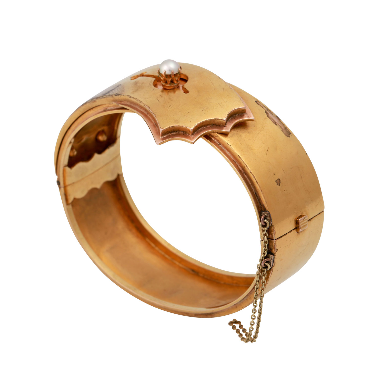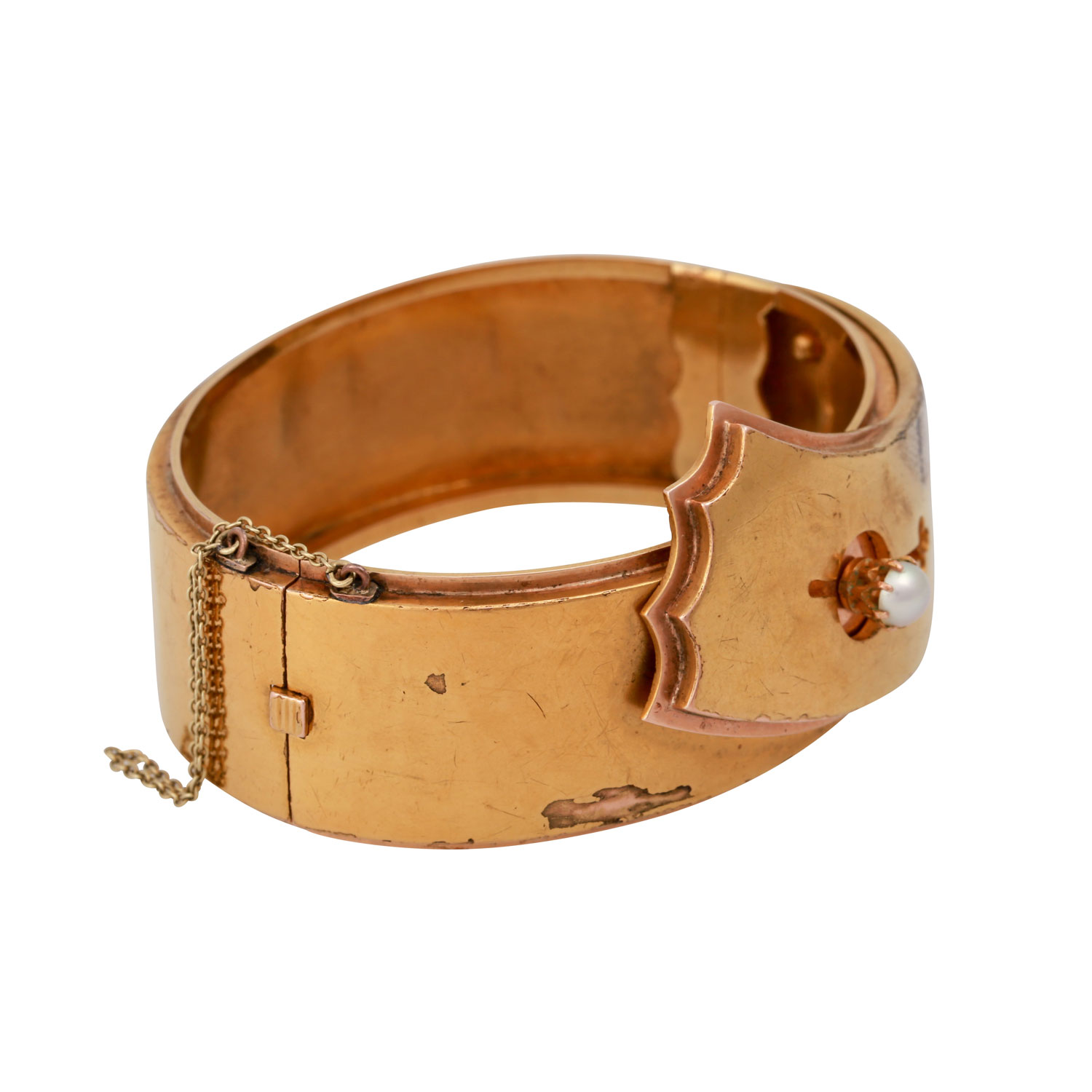 Bangle with half pearl, probably natural pearl, rose gold 14K, gold-plated, around 1880, pressure marks.