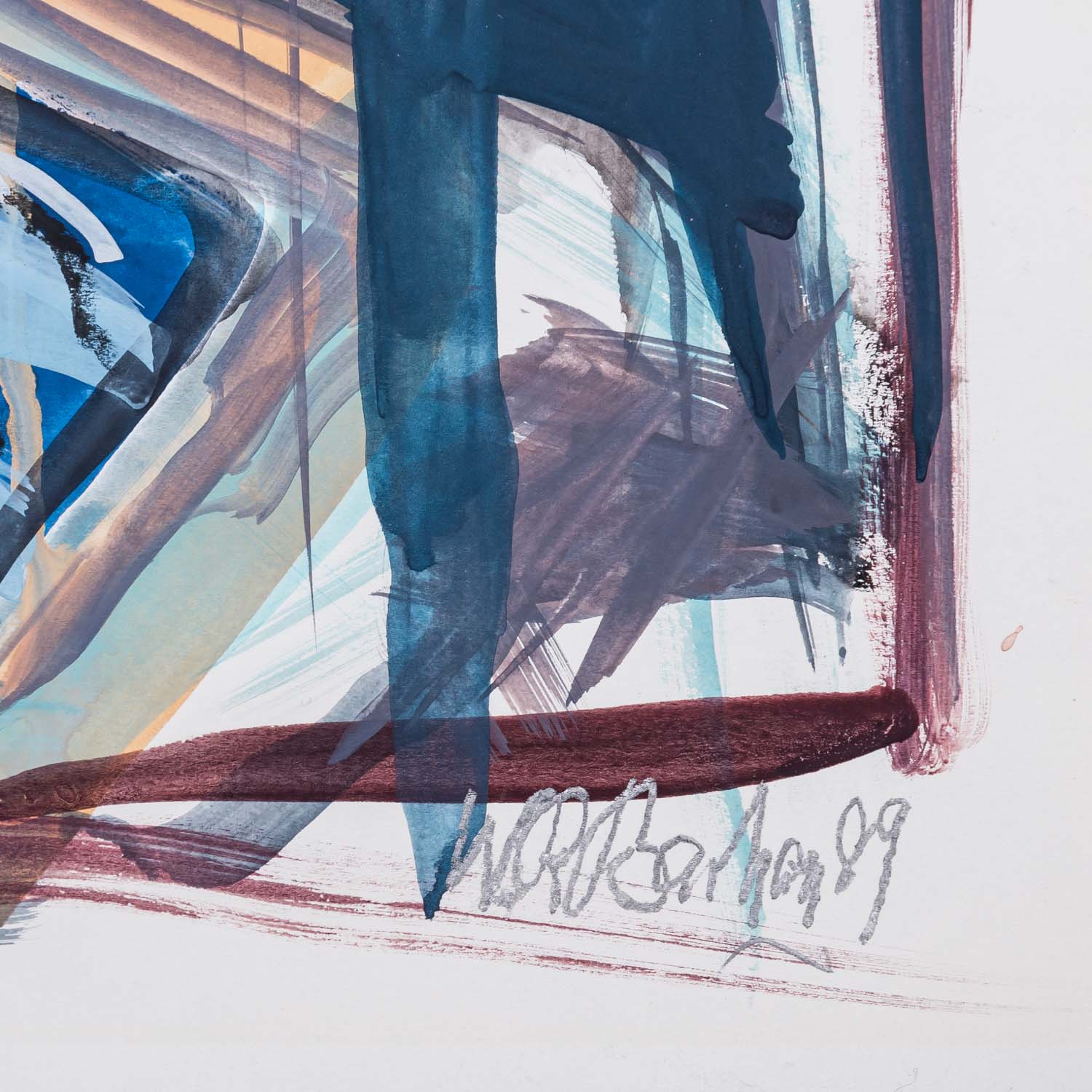 BARHARN, RÜDIGER (born 1955), 2 figurative compositions, signed and dated, each mixed media/paper, HxW: sheet each approx. traces of age and creasing, wavy. Glazed frames with passe-partout loosely attached (passe-partout section approx. 60x83 cm, outer frame dimensions approx. 82x105 cm; slightly damaged).