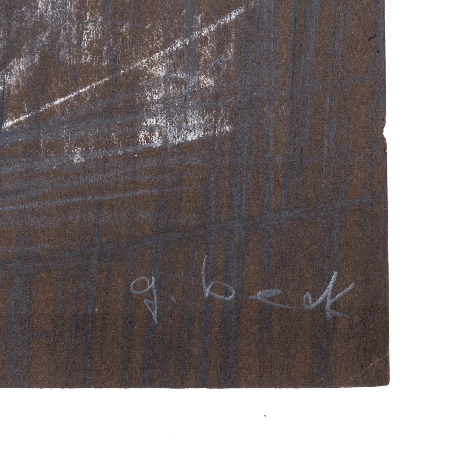 BECK, GERLINDE (1930-2006), 'Abstrakte Komposition', signed lower right, mixed media/dark grey paper, HxW: approx. 70x50 cm. Signs of age and creasing, drawing pin holes to the upper corners and minim. damage to margins.