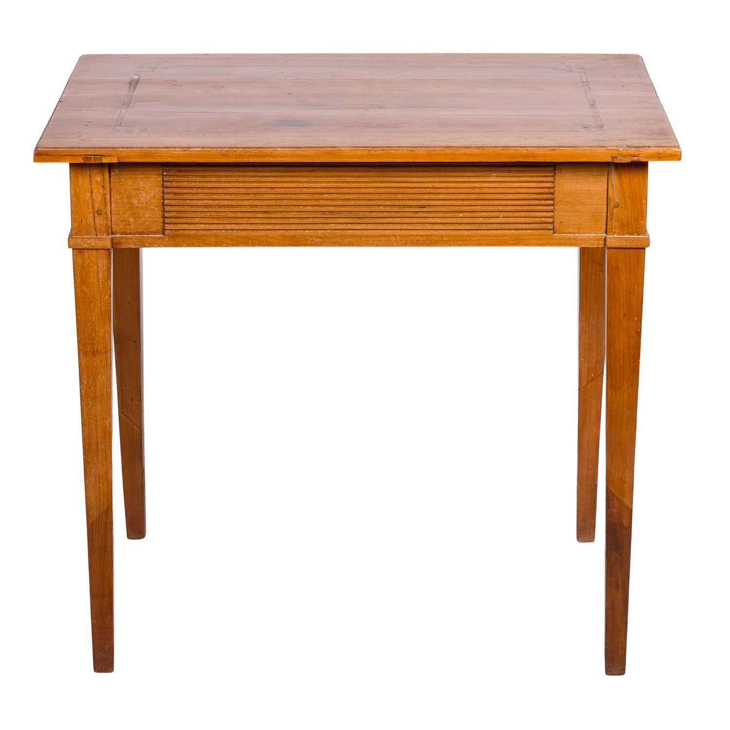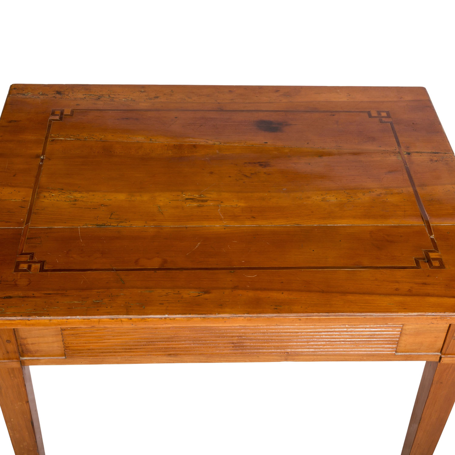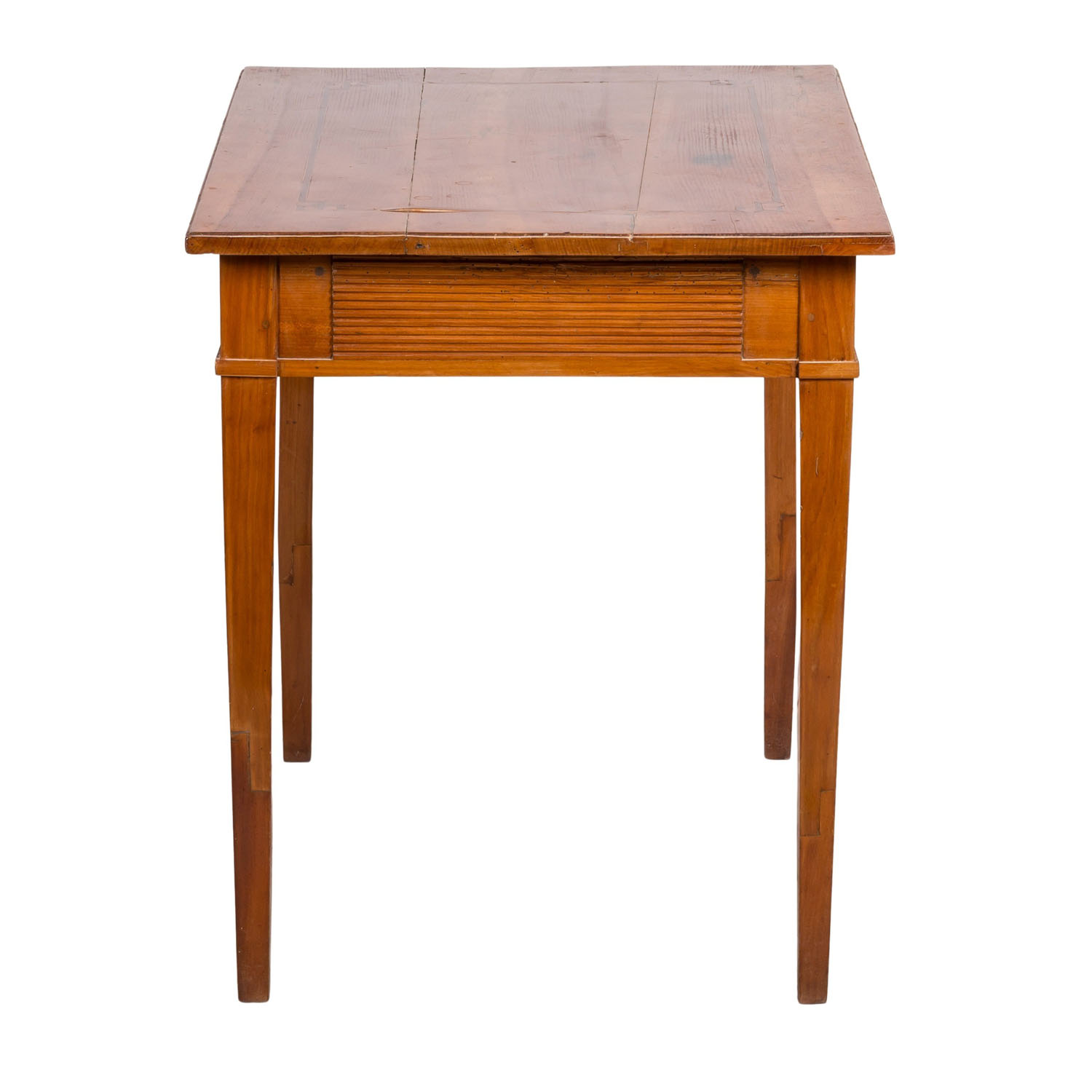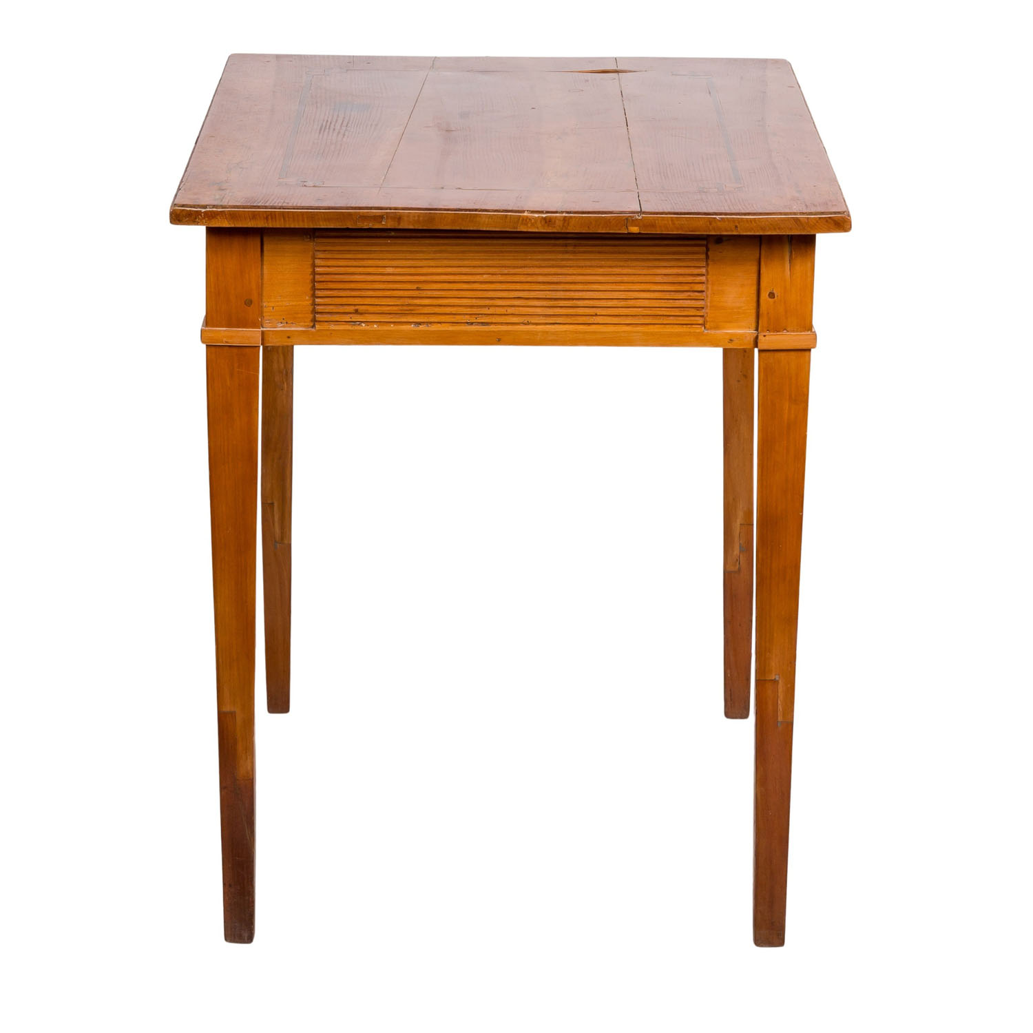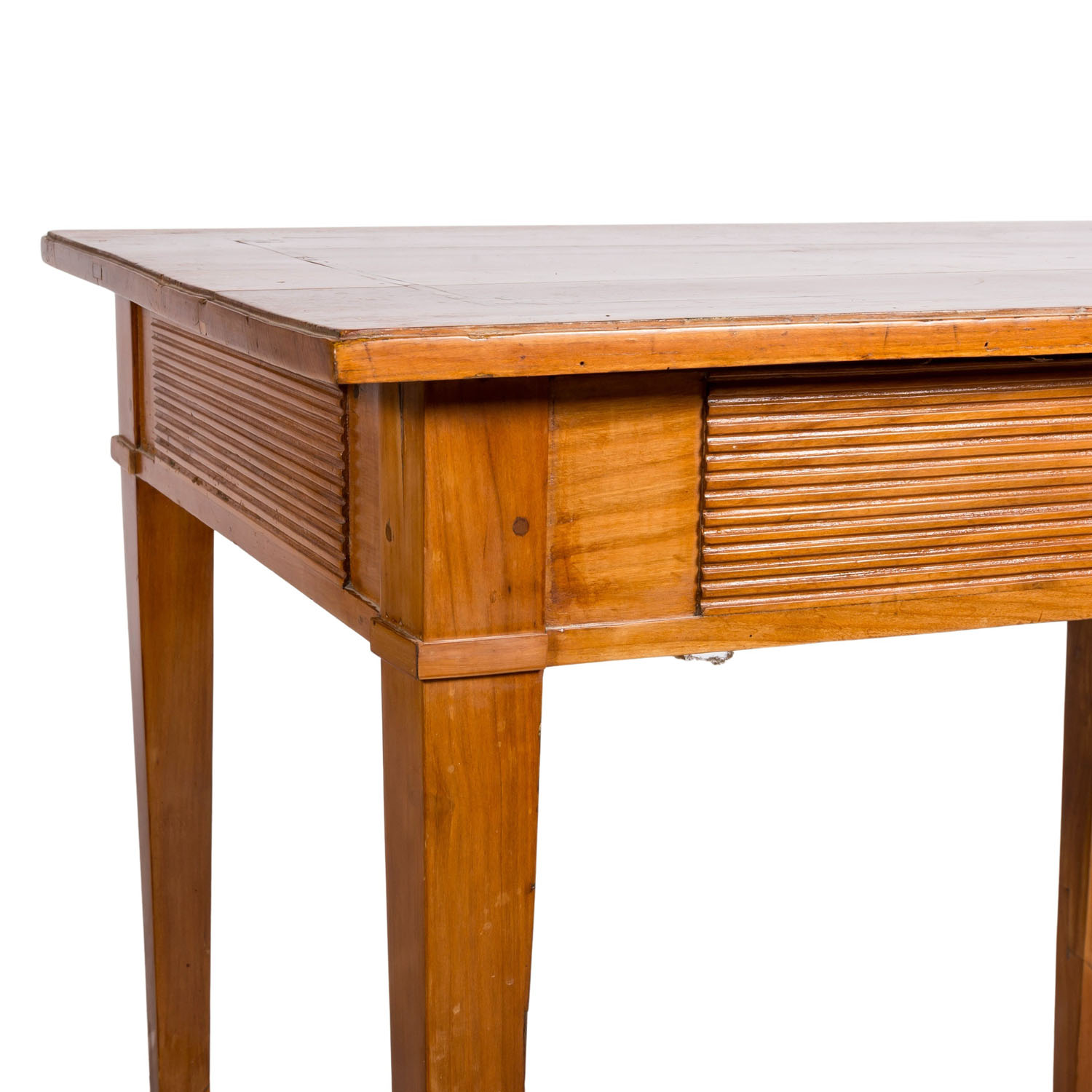 c. 1820, cherry veneer with ribbon inlays, body on four slender, tapered legs. HxWxD: 67/75/56 cm. Signs of age and use.