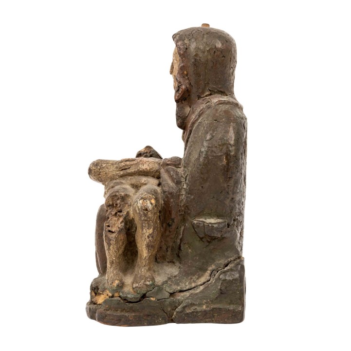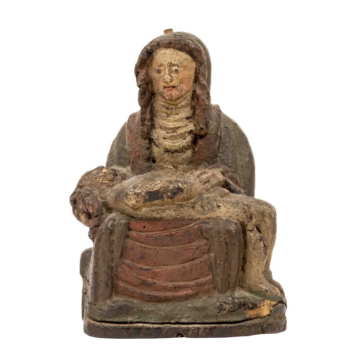 WOODCARVER 16th/17th century, Pietà, Northern Italy around 1600, wood, carved in three-quarter relief and painted, height: approx. 17 cm. Significant signs of age, previously restored, plinth likely replaced. PROVENANCE: La Gondolina Antiques, Venice 2009.