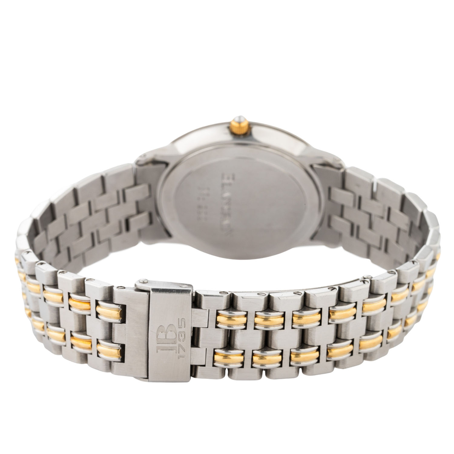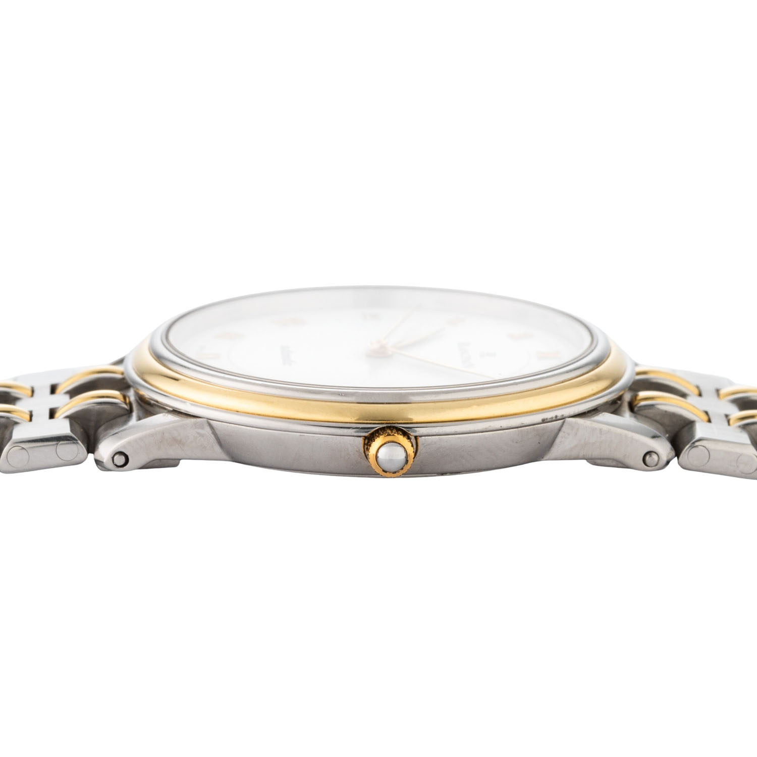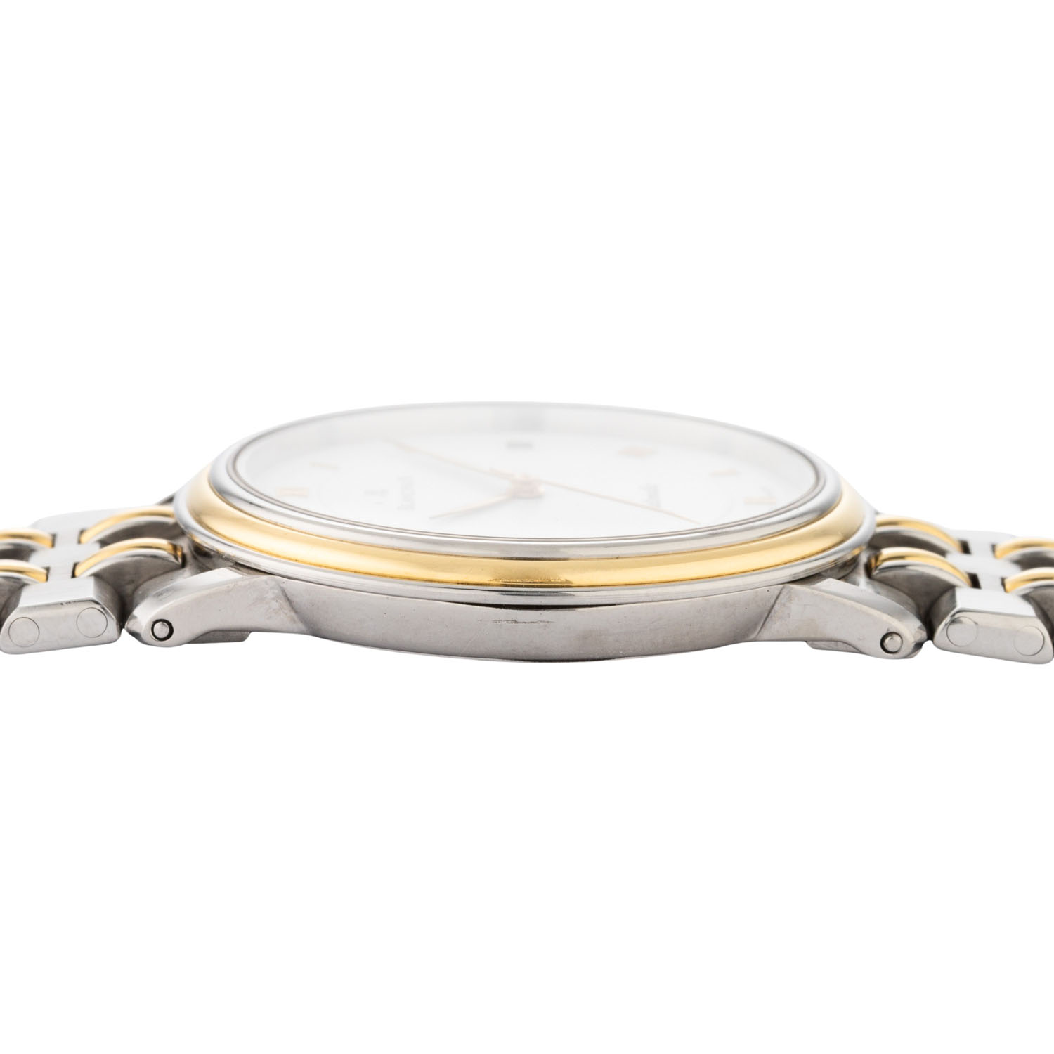 BLANCPAIN Villeret Ref 0095-1318-25 men's watch from 1987. Box and papers. Stainless steel/yellow gold 18K. Serial number 222. Automatic movement caliber 95 with good performance (+7 s/d, 252° amplitude). White dial with applied Roman indices and date display. Blancpain/Gay Freres stainless steel/yellow gold bracelet (with stretch) with folding clasp. Good condition with signs of wear. Blancpain box and warranty booklet included. The watch was purchased in 1987 from jeweler Rüschenbeck in Duisburg. Diameter approx. 34 mm (measured without crown). Suitable for wrist sizes up to approx. 18.5 cm.