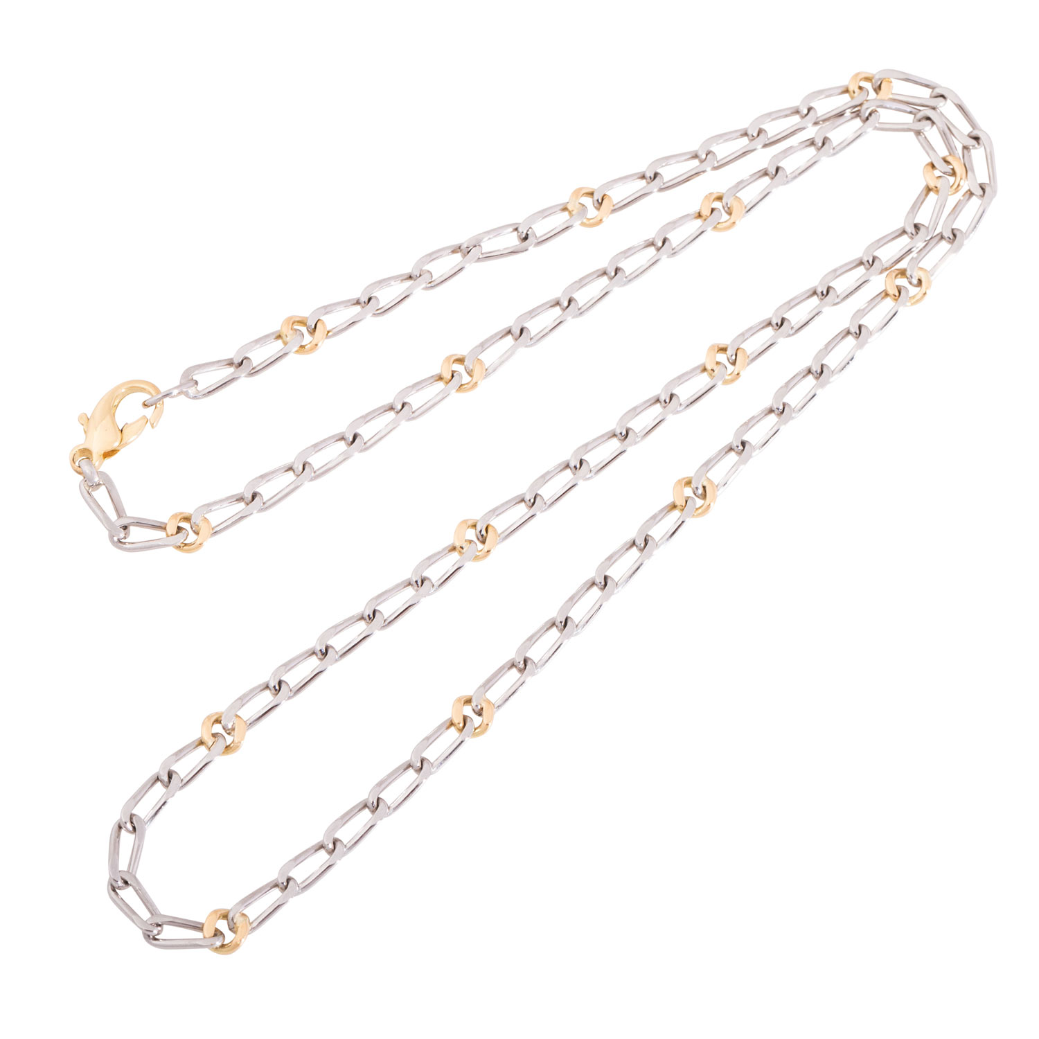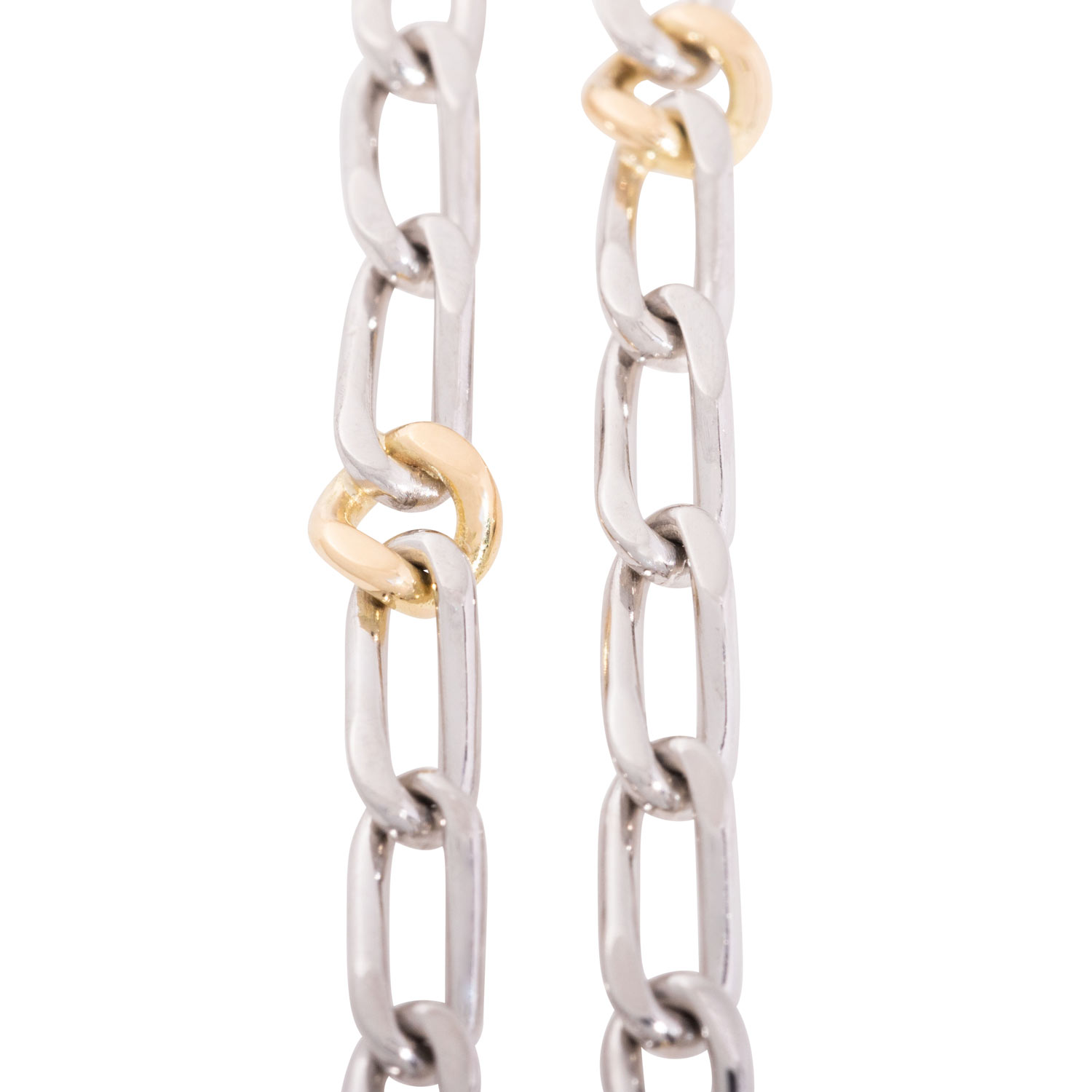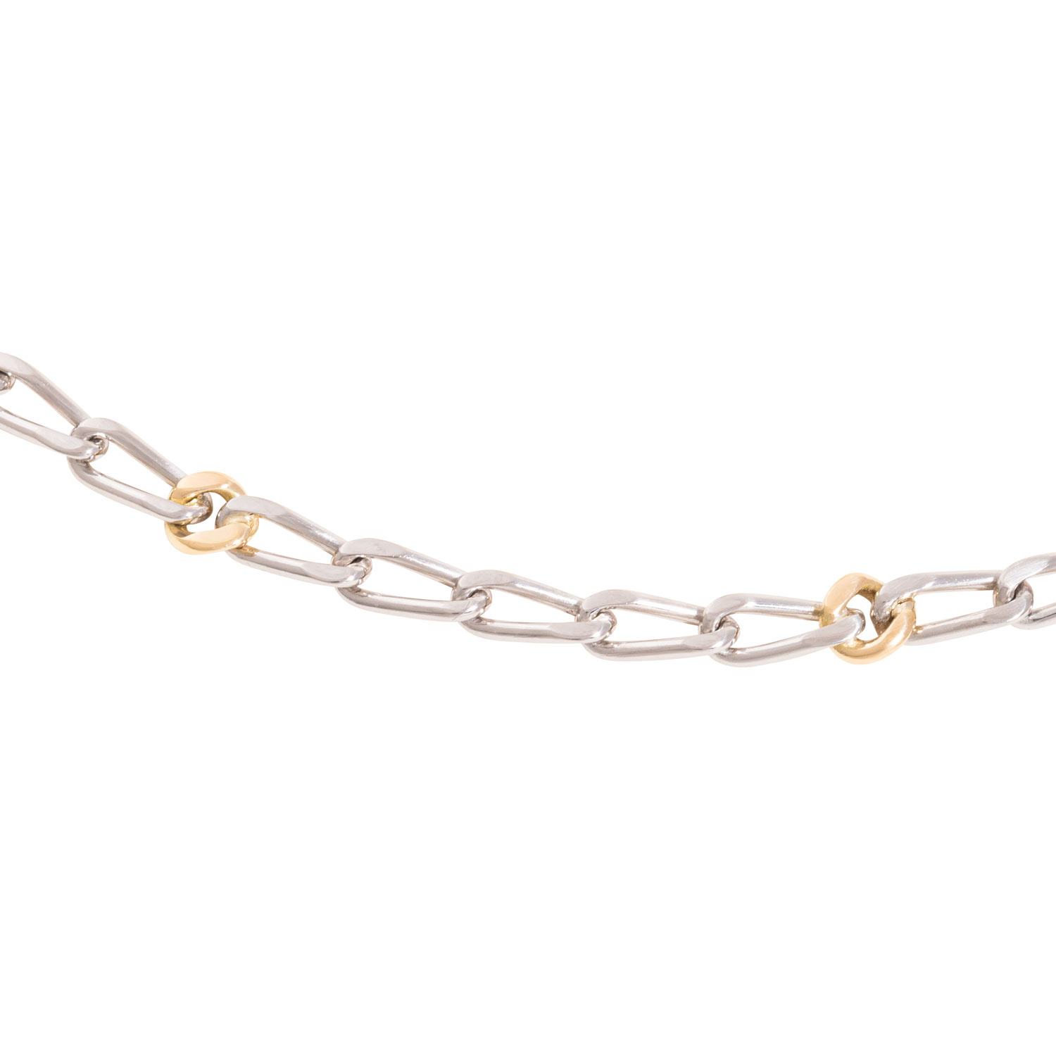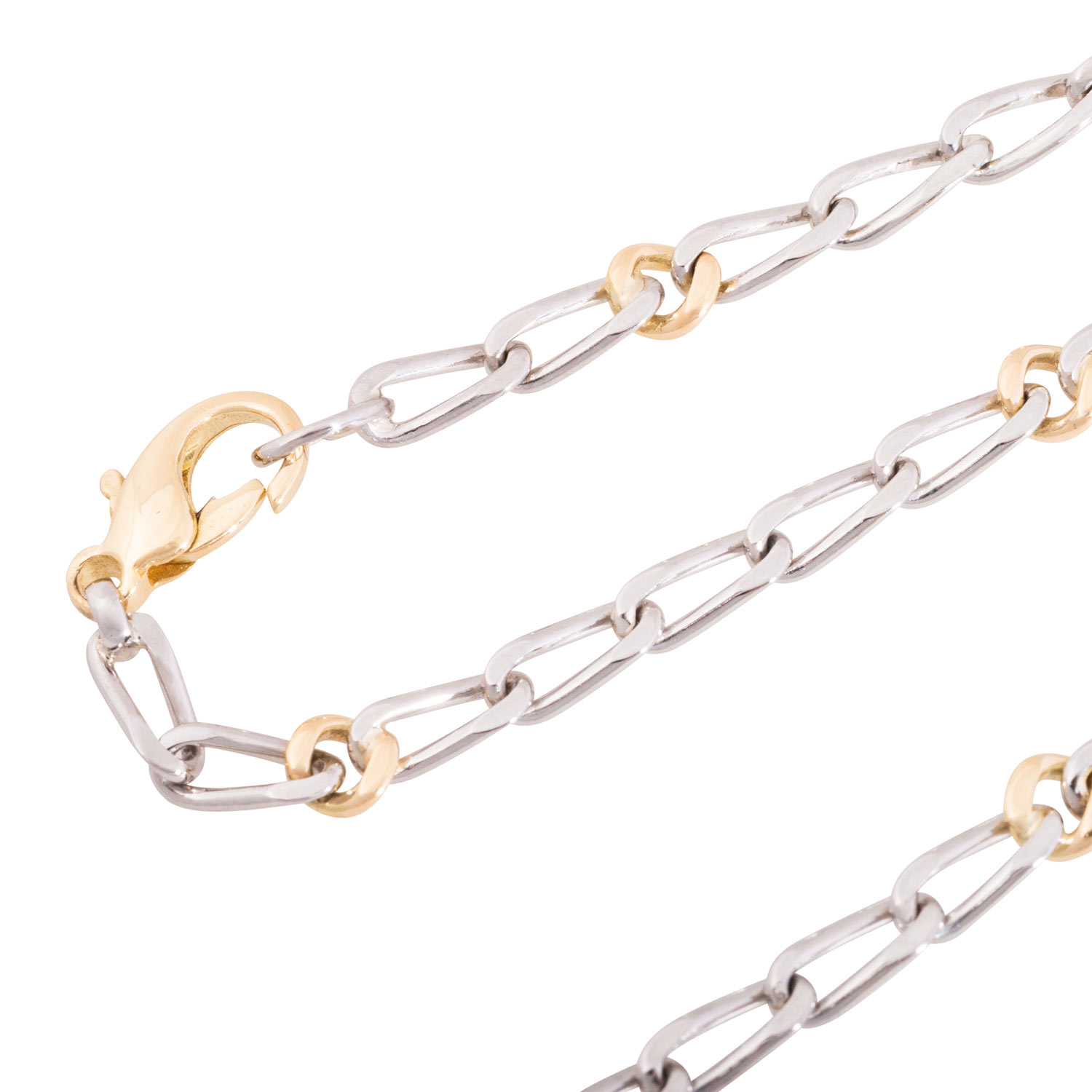KAST Necklace, curb link chain, wide platinum eyelets and narrow yellow gold eyelets alternating, Pt 950/yellow gold, 13.7 g, L: 40.5 cm, W: 3 mm, carabiner clasp, late 20th century, minimal signs of wear.