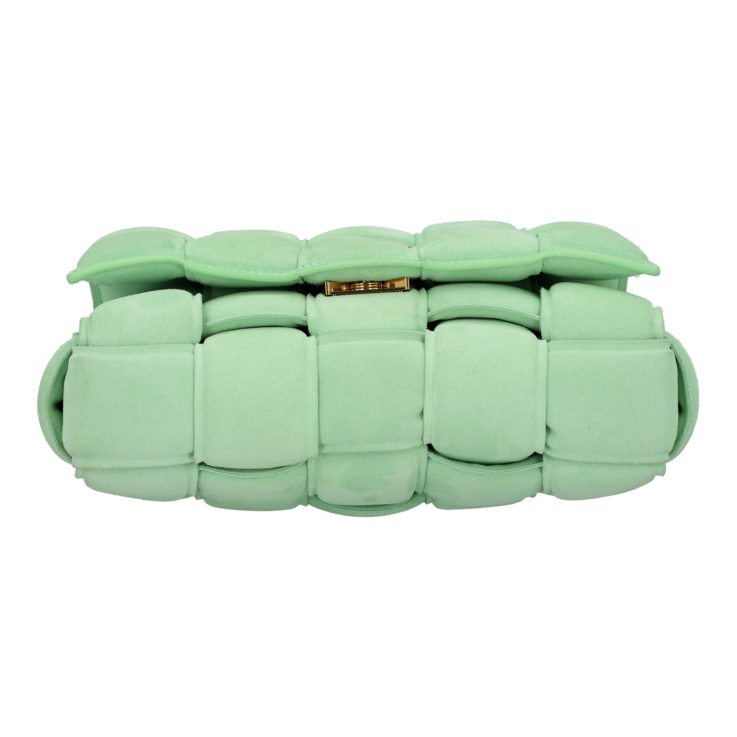 BOTTEGA VENETA bag 'CHAIN CASSETTE', retail price: 4.200,-€. Padded Intreccio suede in wasabi, hardware with gold finish, short and long link chain, flap with magnetic fastening. Interior with zip compartment. Dust bag enclosed. Very good condition. 18 x 26 x 8 cm.