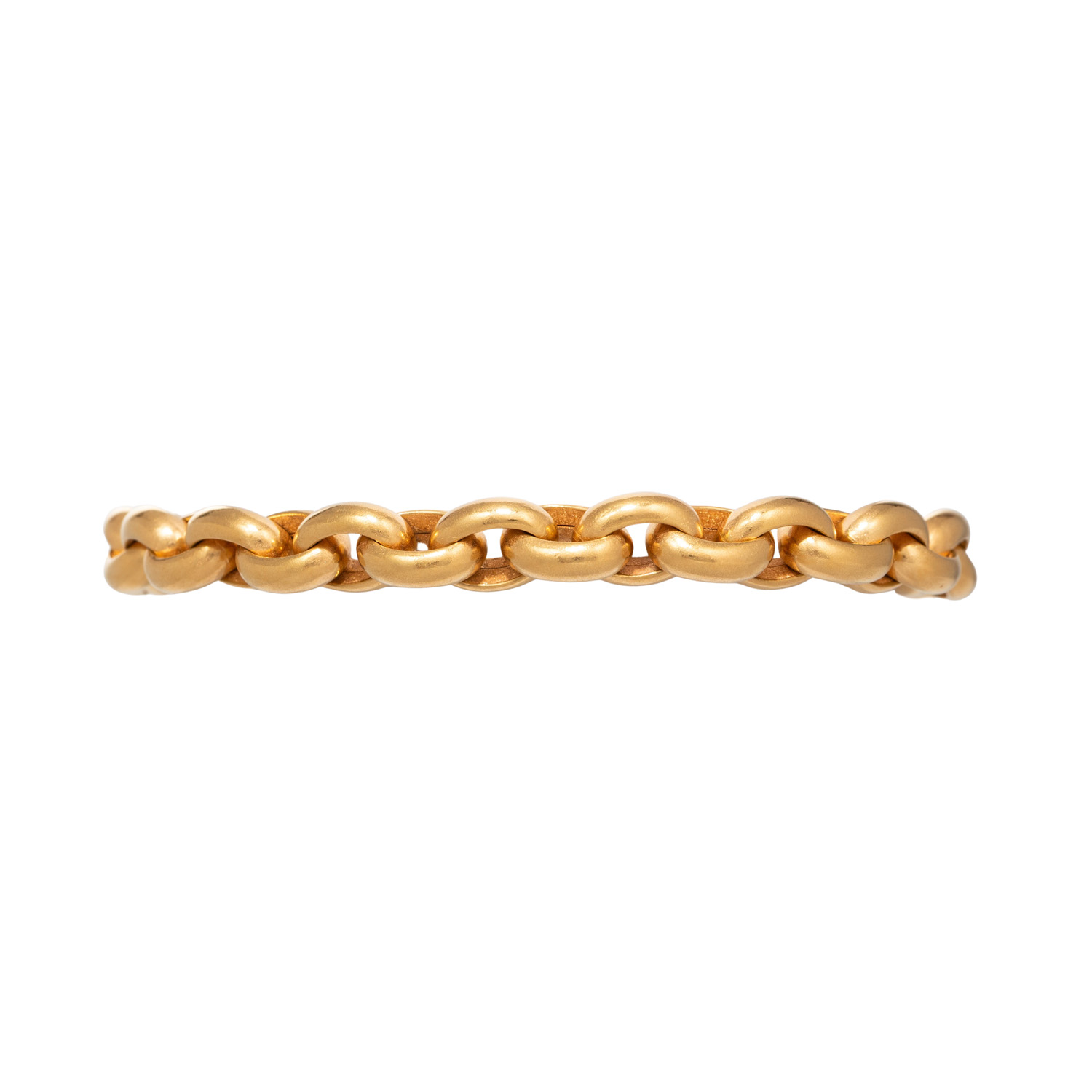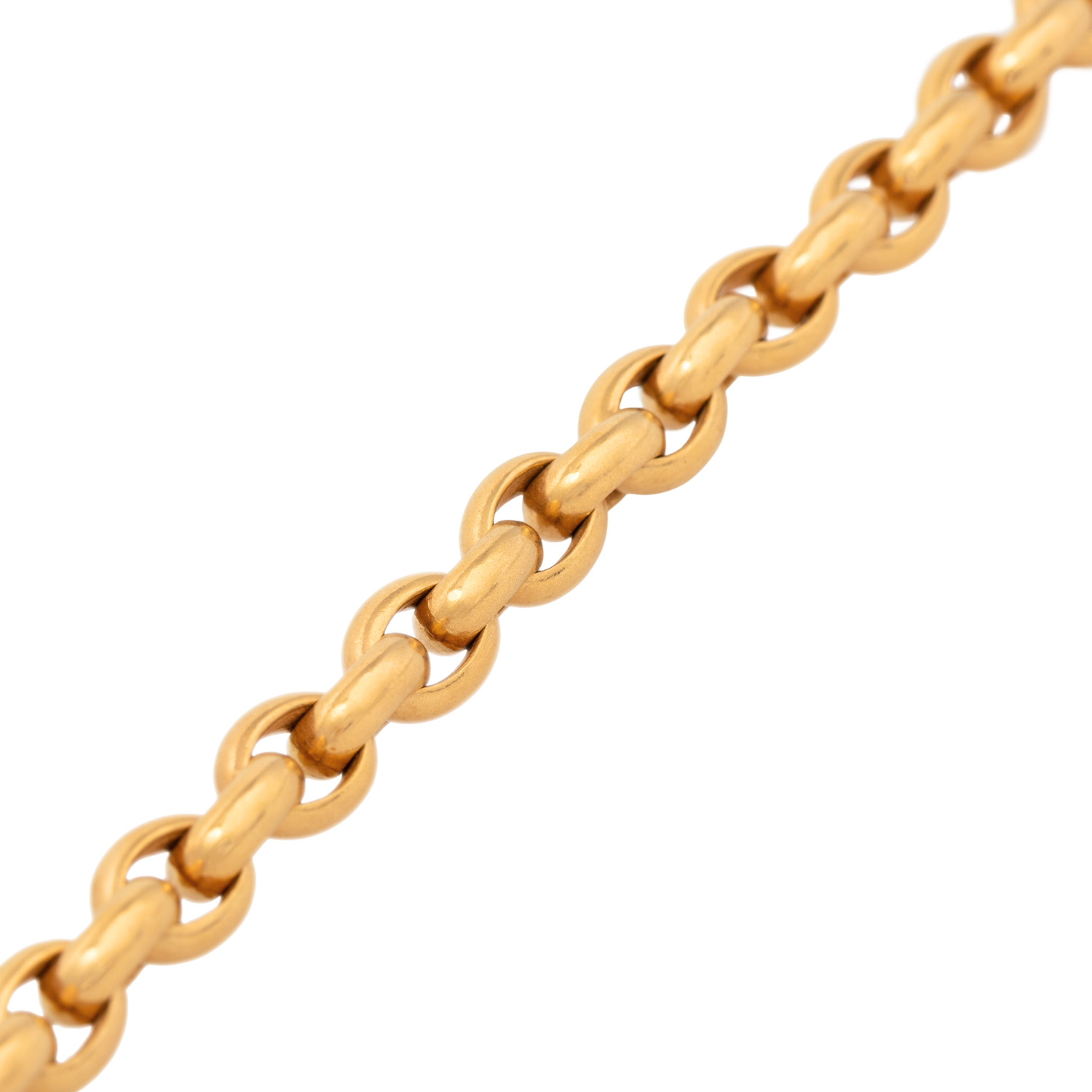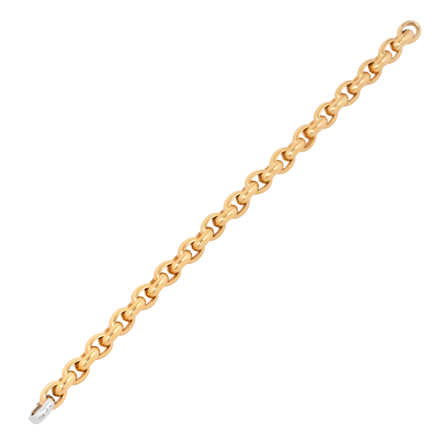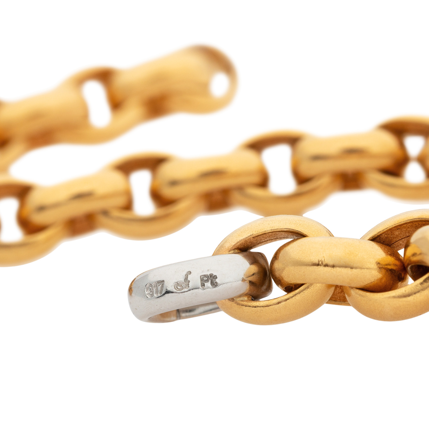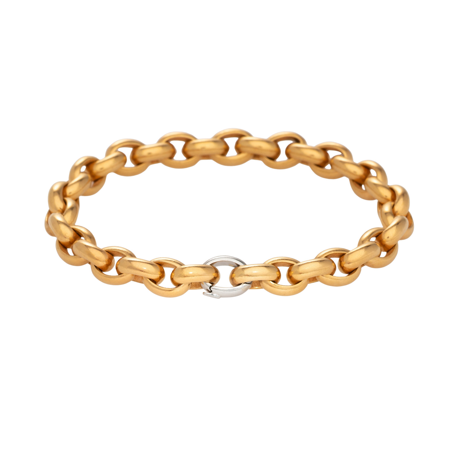 Bracelet, anchor chain in half round profile, 22K yellow gold, platinum link with integrated clasp, 40.6 g, L: 20 cm, W: 8.3 mm, hollow links, 20th/21st century, minimal signs of wear.