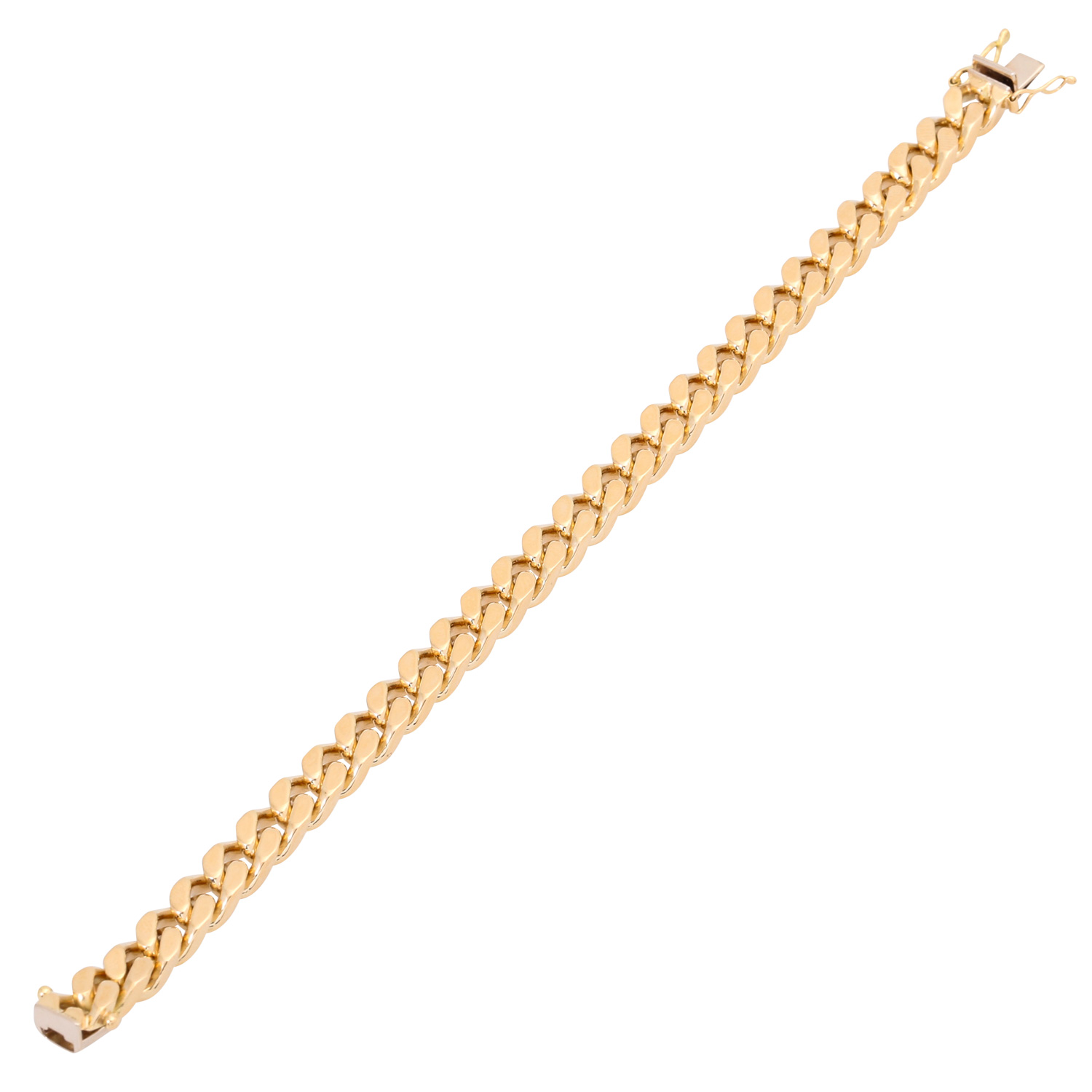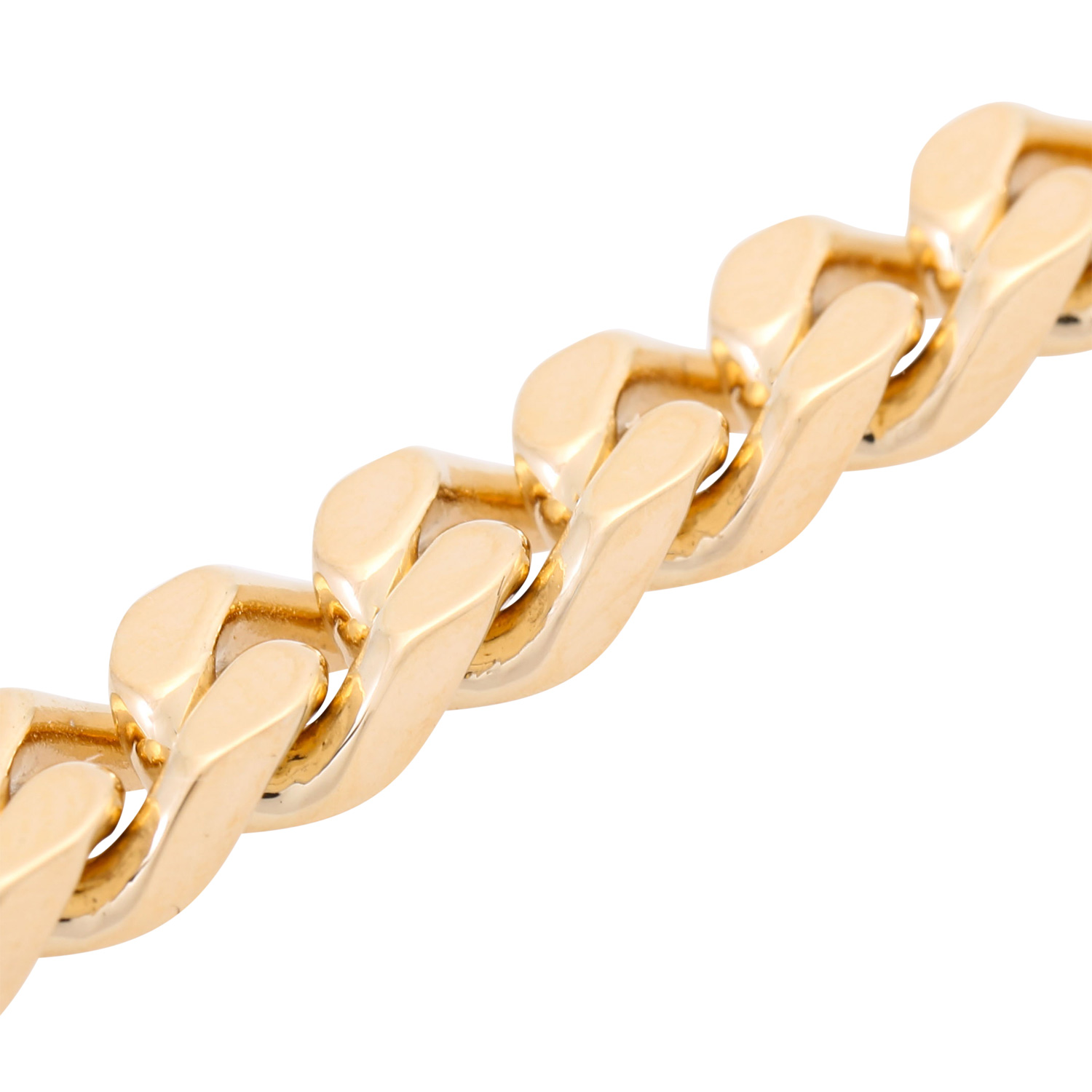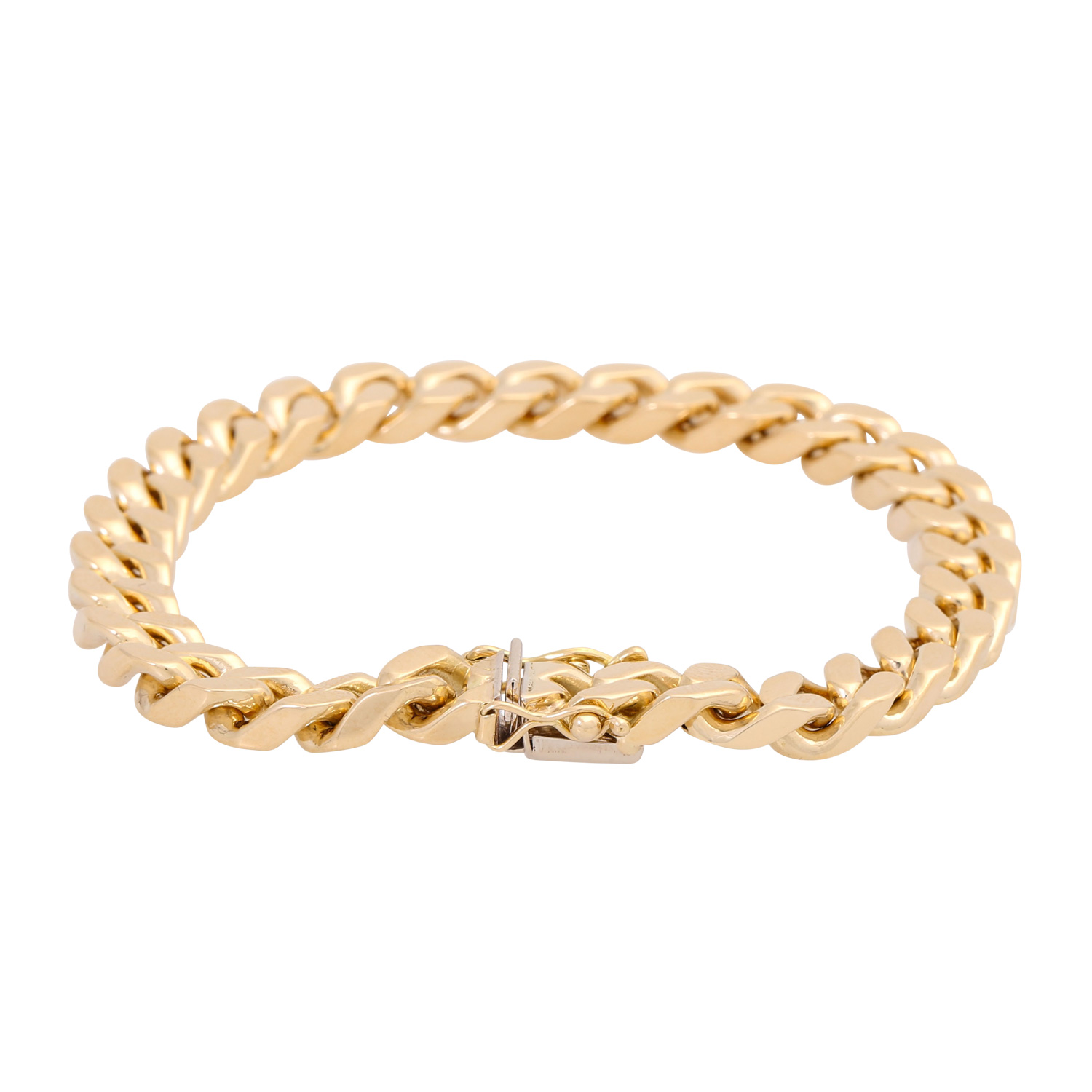 Bracelet in curb link design, grinded, 18K yellow gold, 44.1 g, L: 18.5 cm, W: 7 mm, box clasp with 2 security catches, late 20th century, minimal signs of wear.