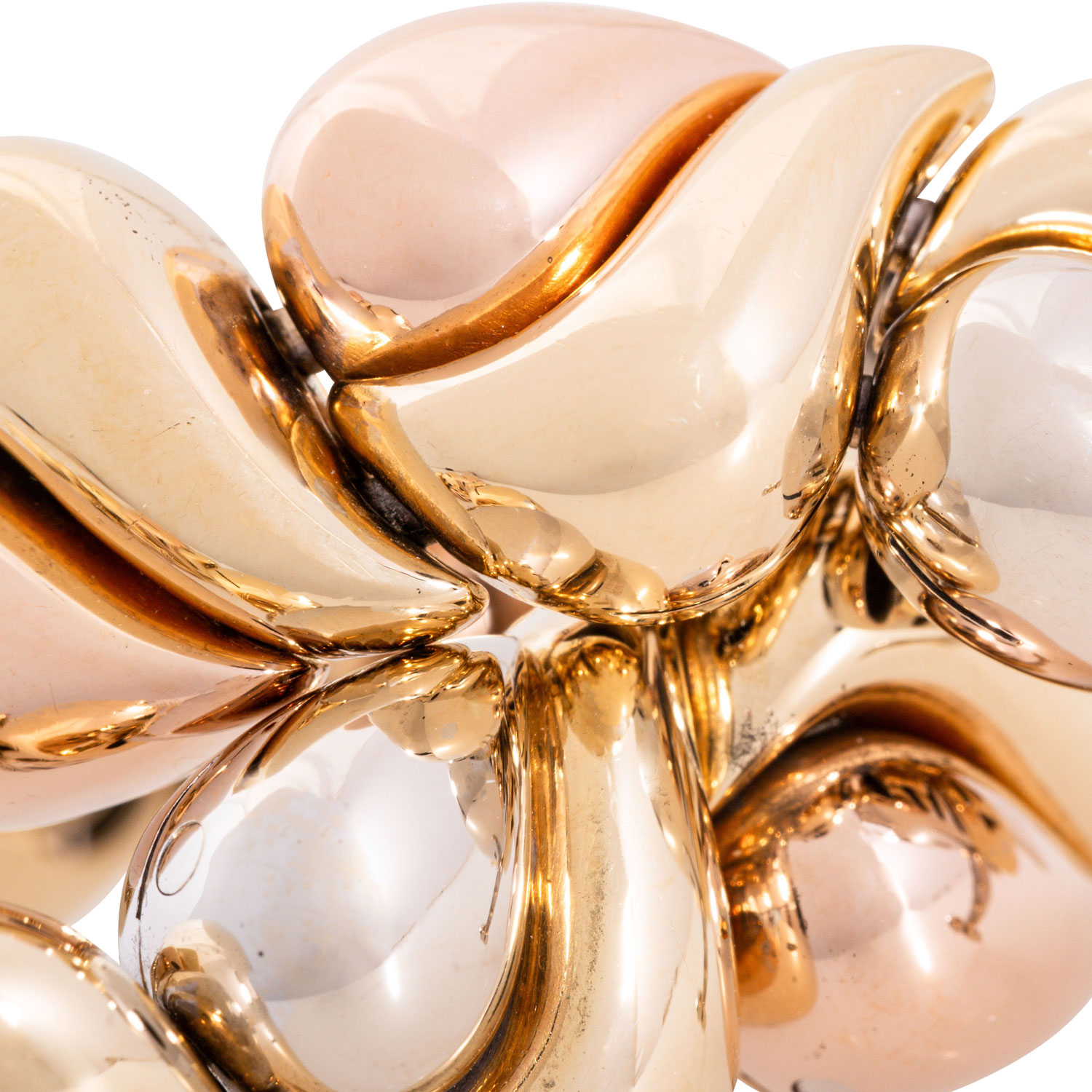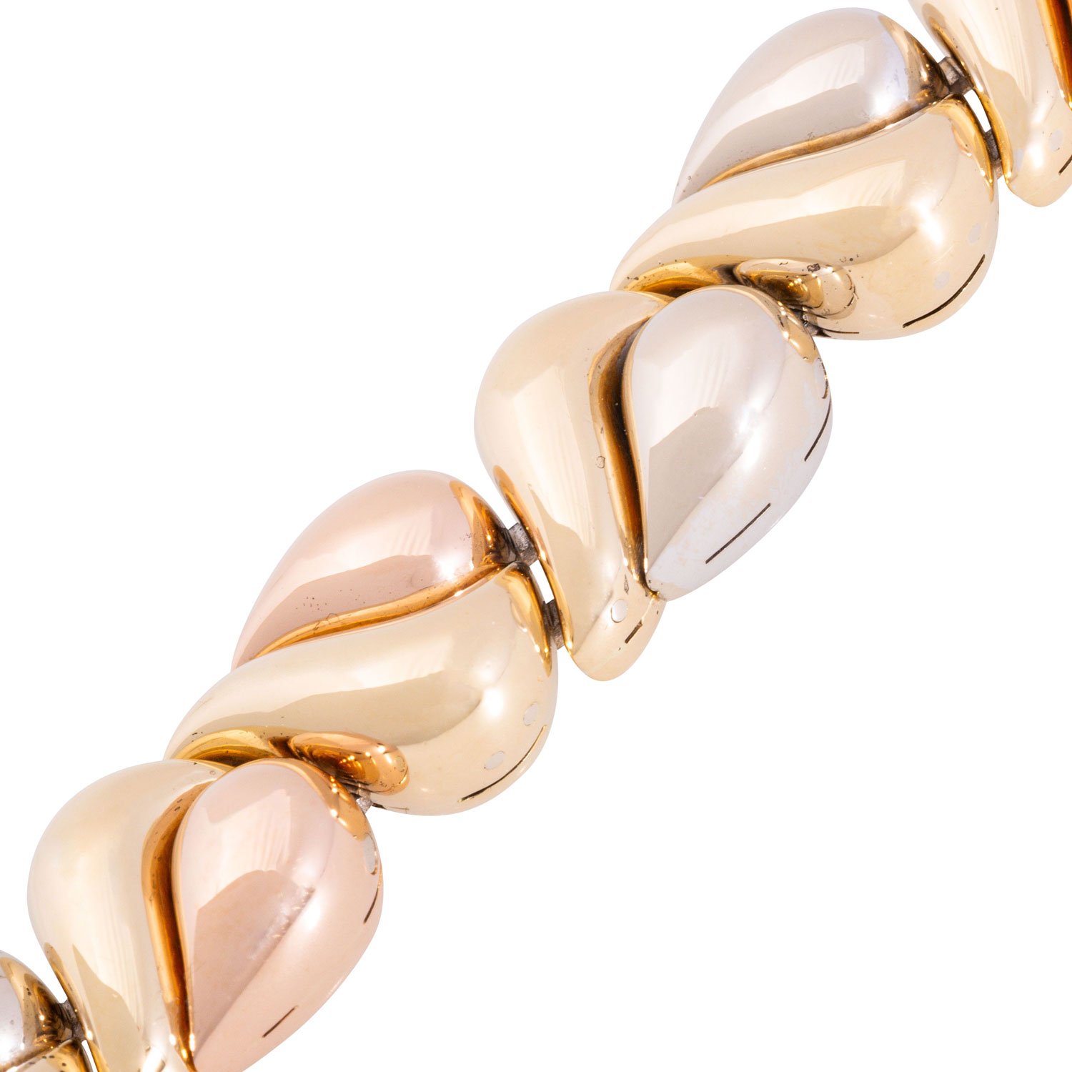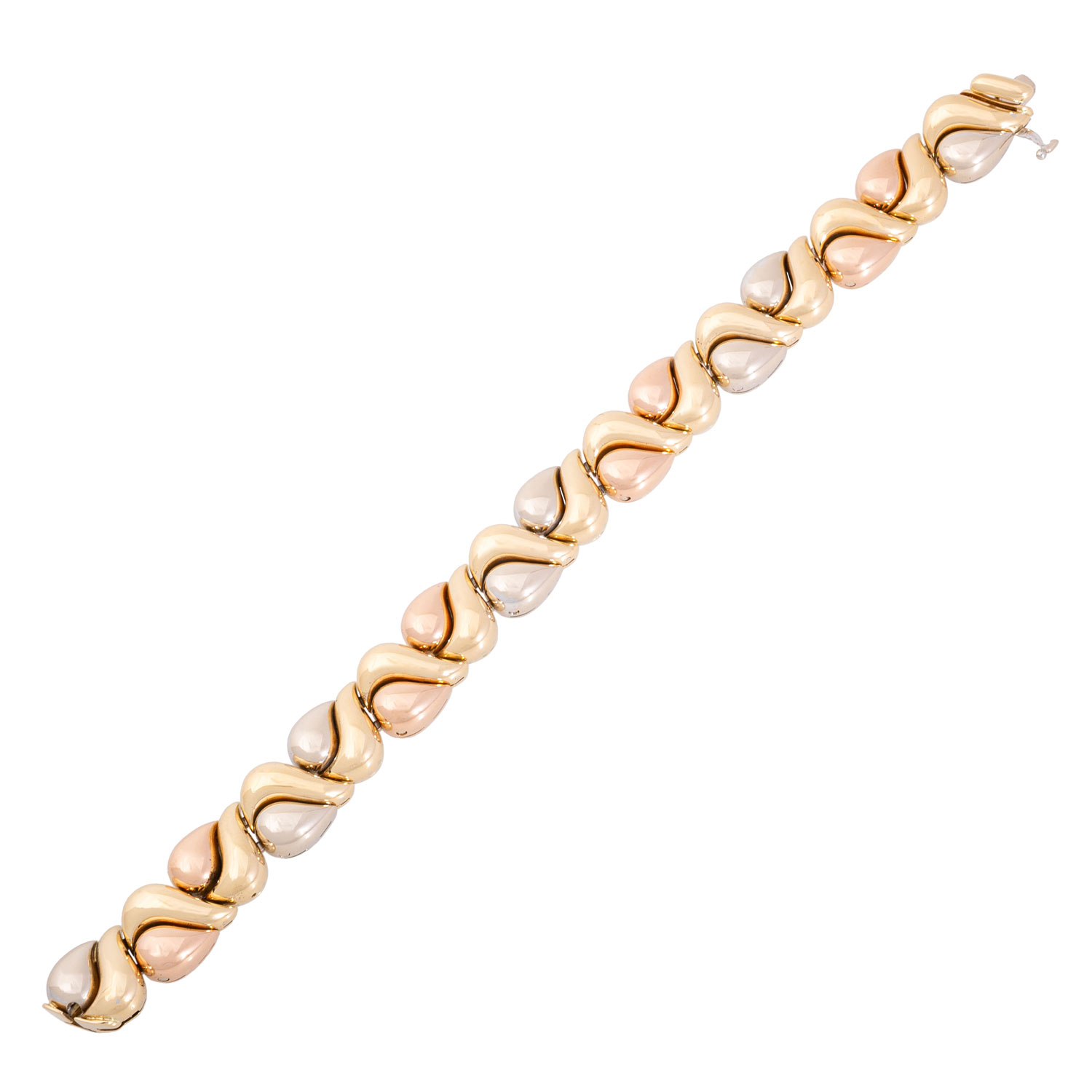 Bracelet, fancy pattern, 18K yellow gold/white gold/rose gold, 78,8 g, L: approx. 20 cm, W: approx. 1.4 cm, 20th/21st century, minimal signs of wear, with hallmark.