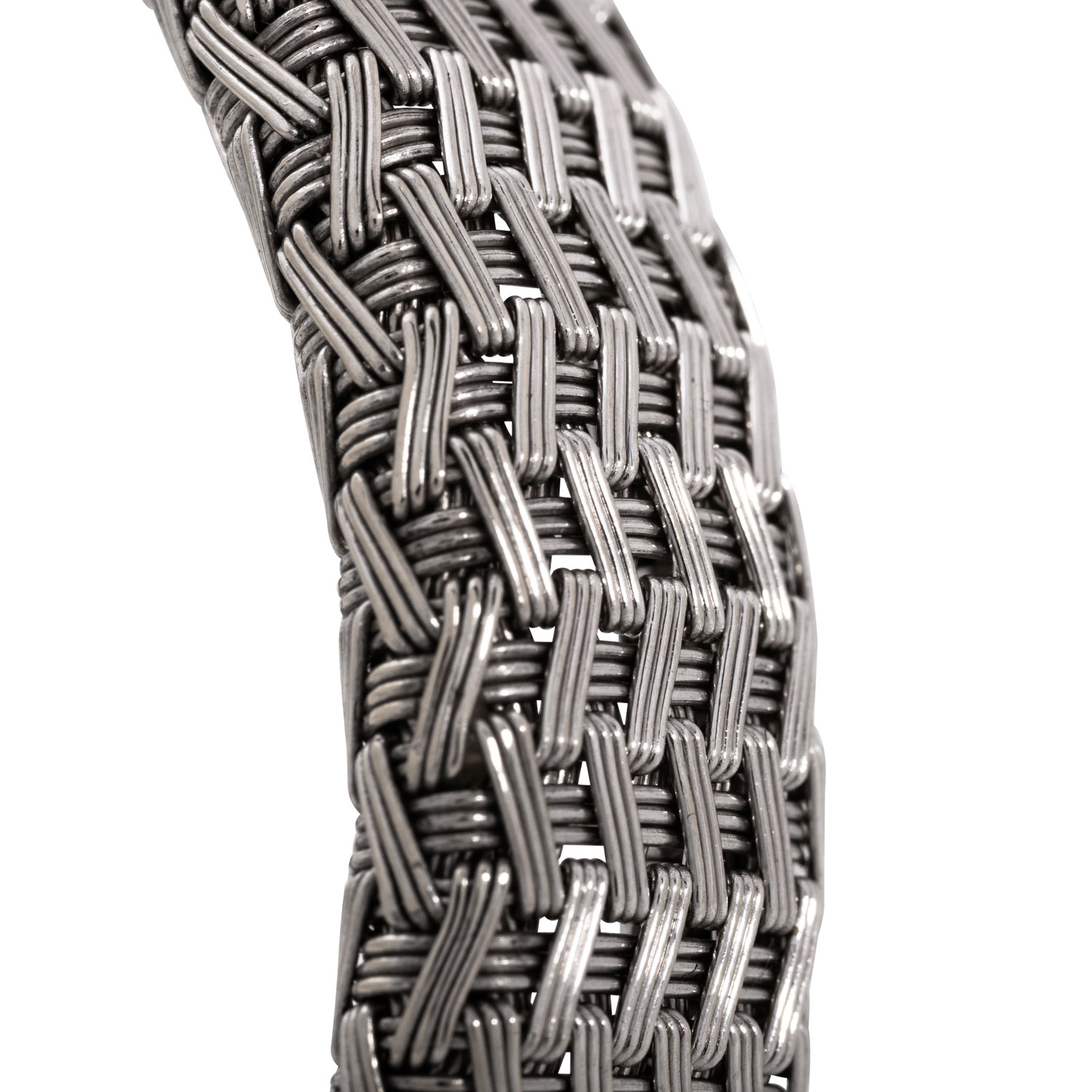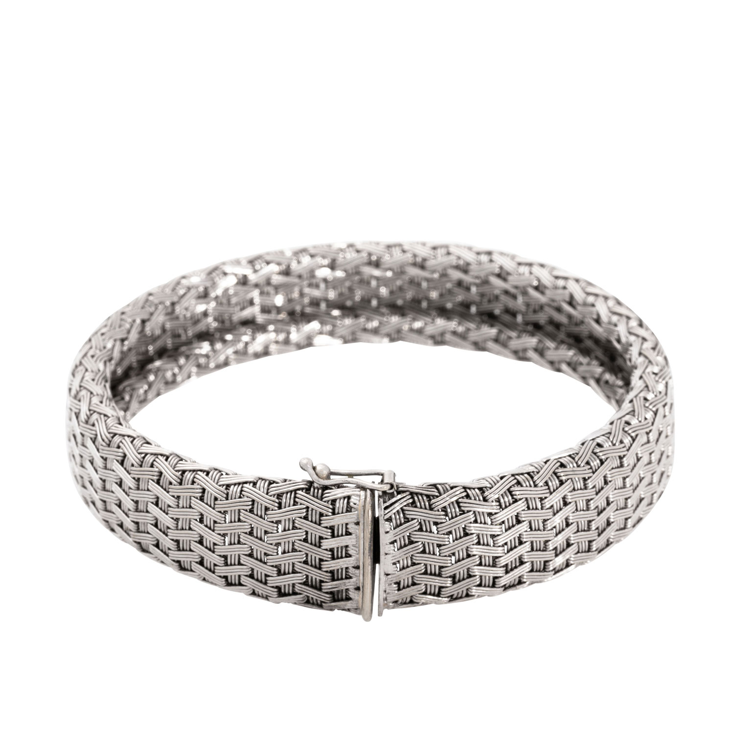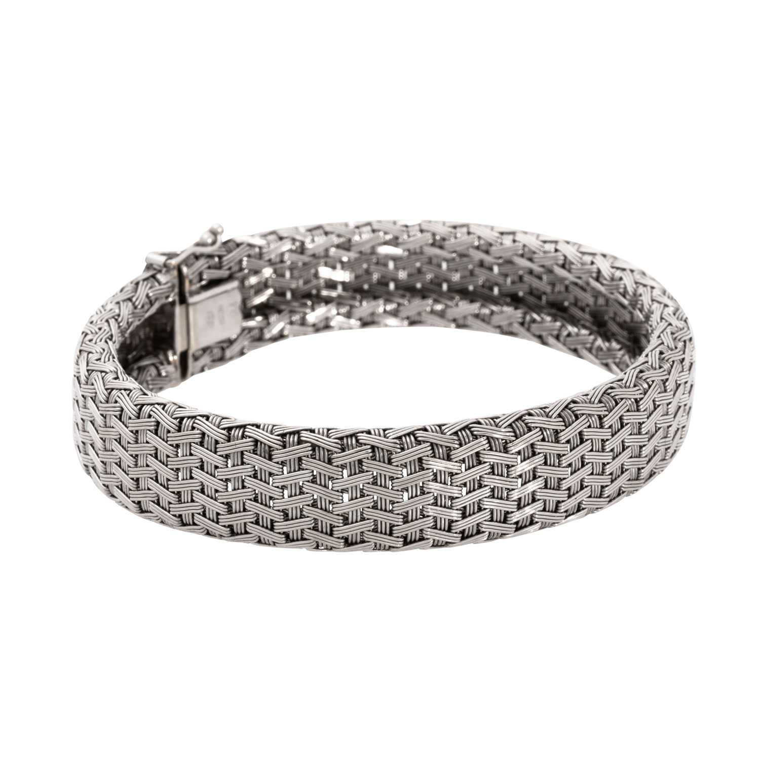Bracelet in Milanese-Design, 18K white gold, 52.0g, L: 19 cm, W: 13 mm, box clasp with security catch, 2nd half of 20th century, minor signs of wear.