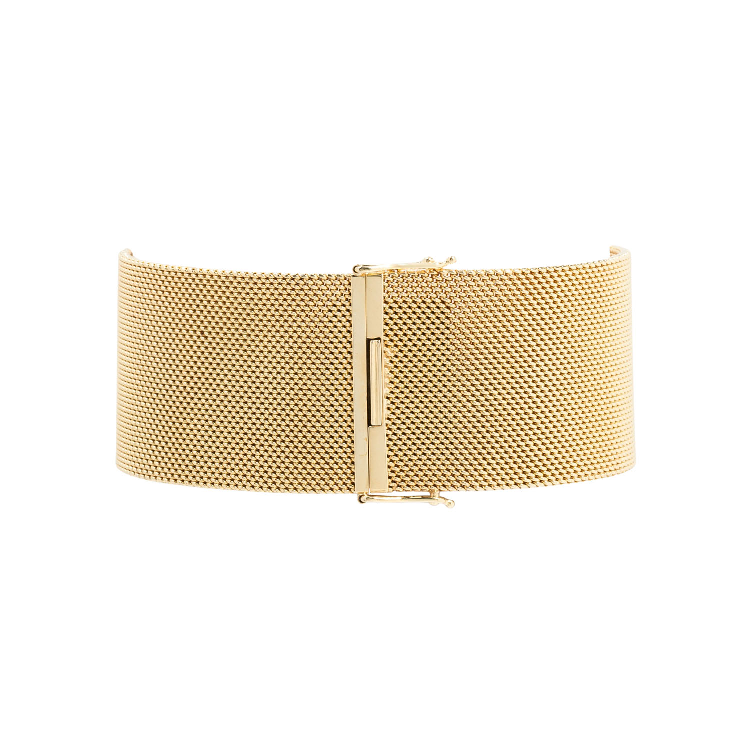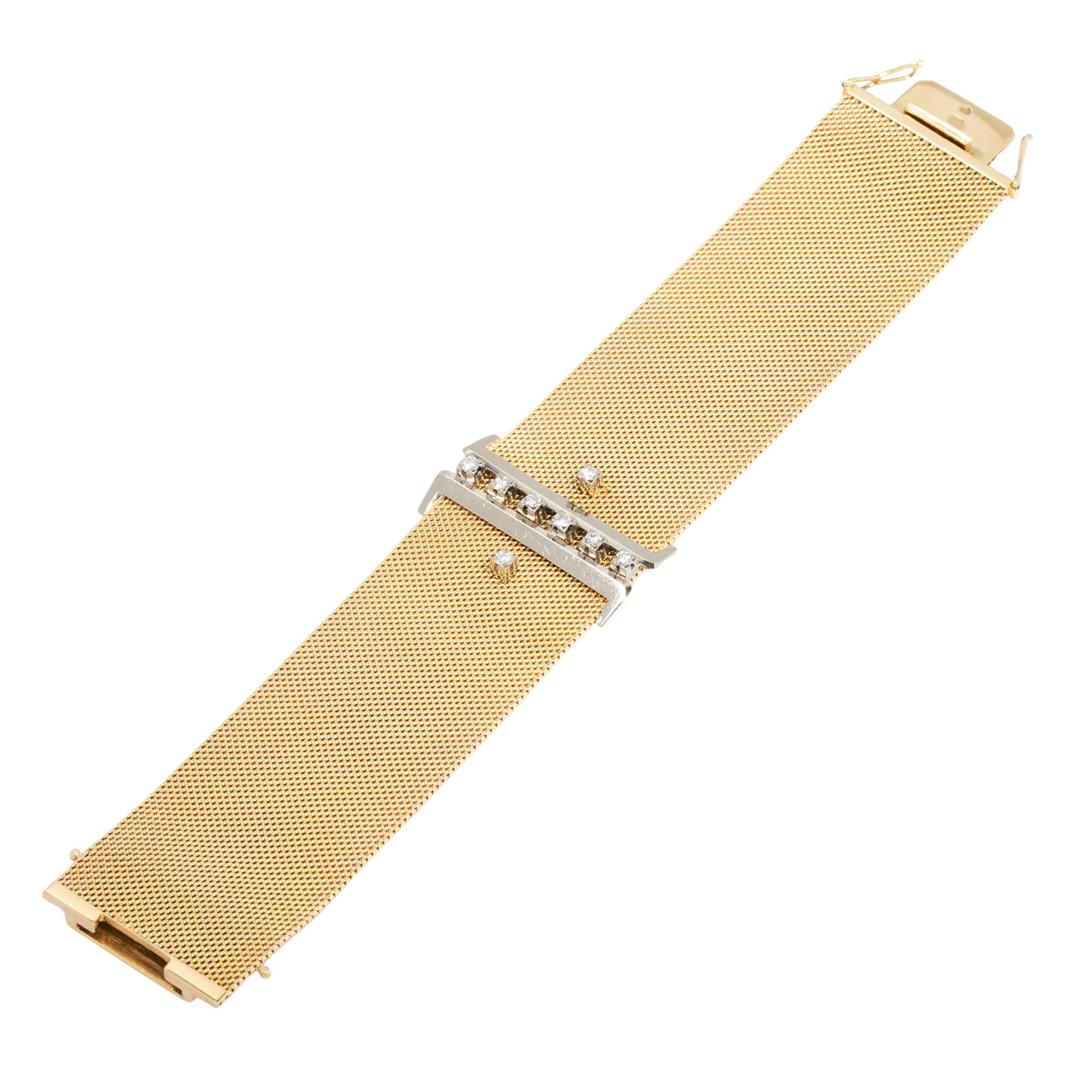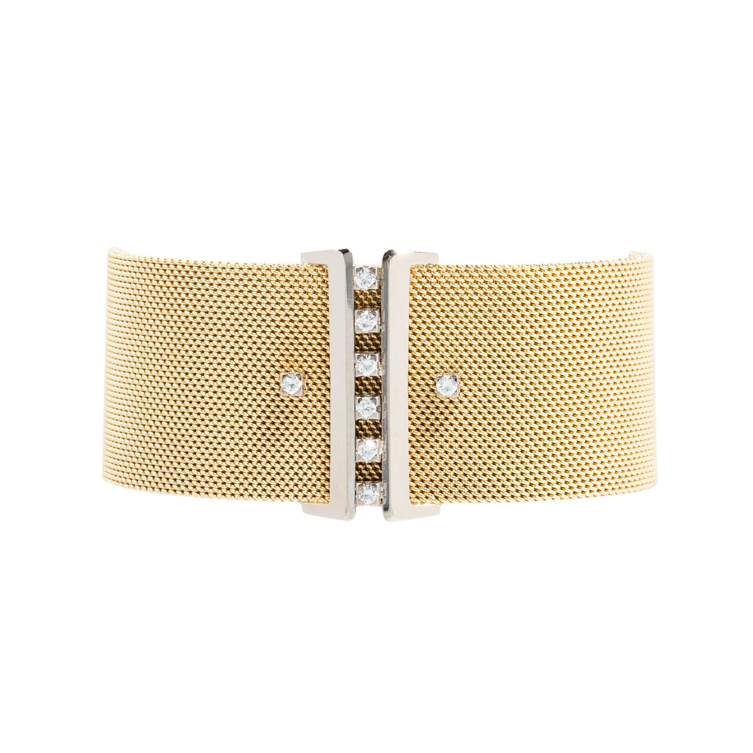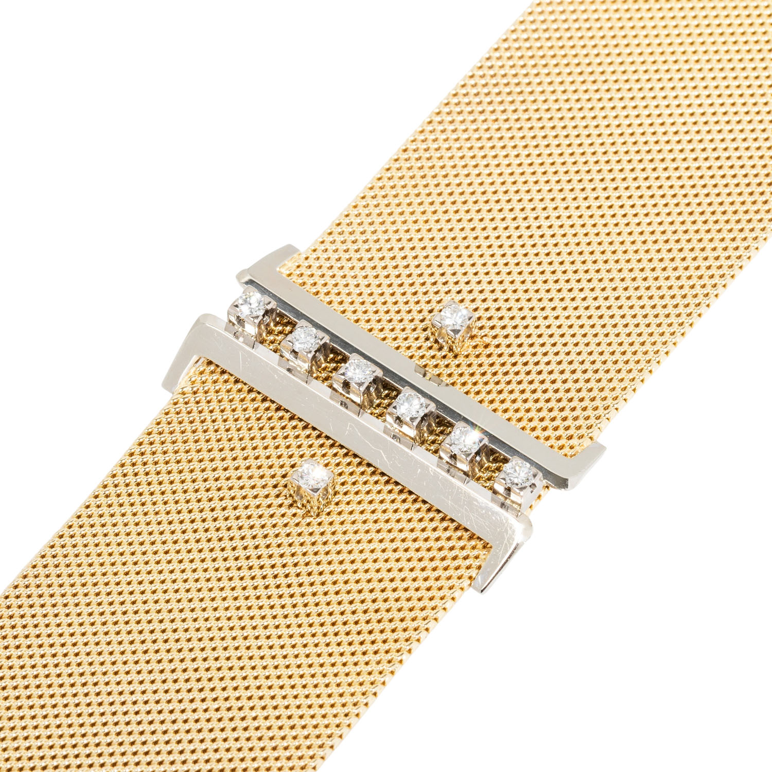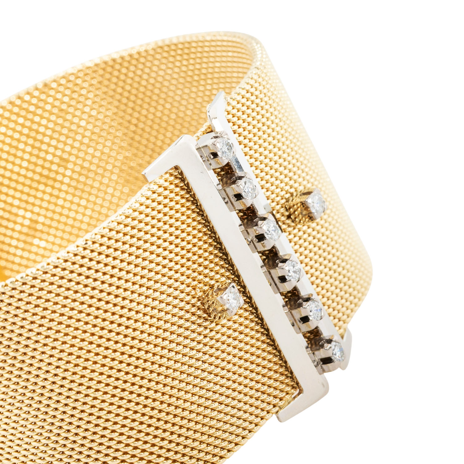 Bracelet, Milanese band with 8 brillant-cut diamonds totalling approx. 0.48 ct, WHITE (H)/VS, 14K yellow gold/white gold, 86.2 g, L: approx. 17.5 cm, W: approx. 3 - 3.3 cm, 20th/21st century, minimal signs of wear, with hallmark.