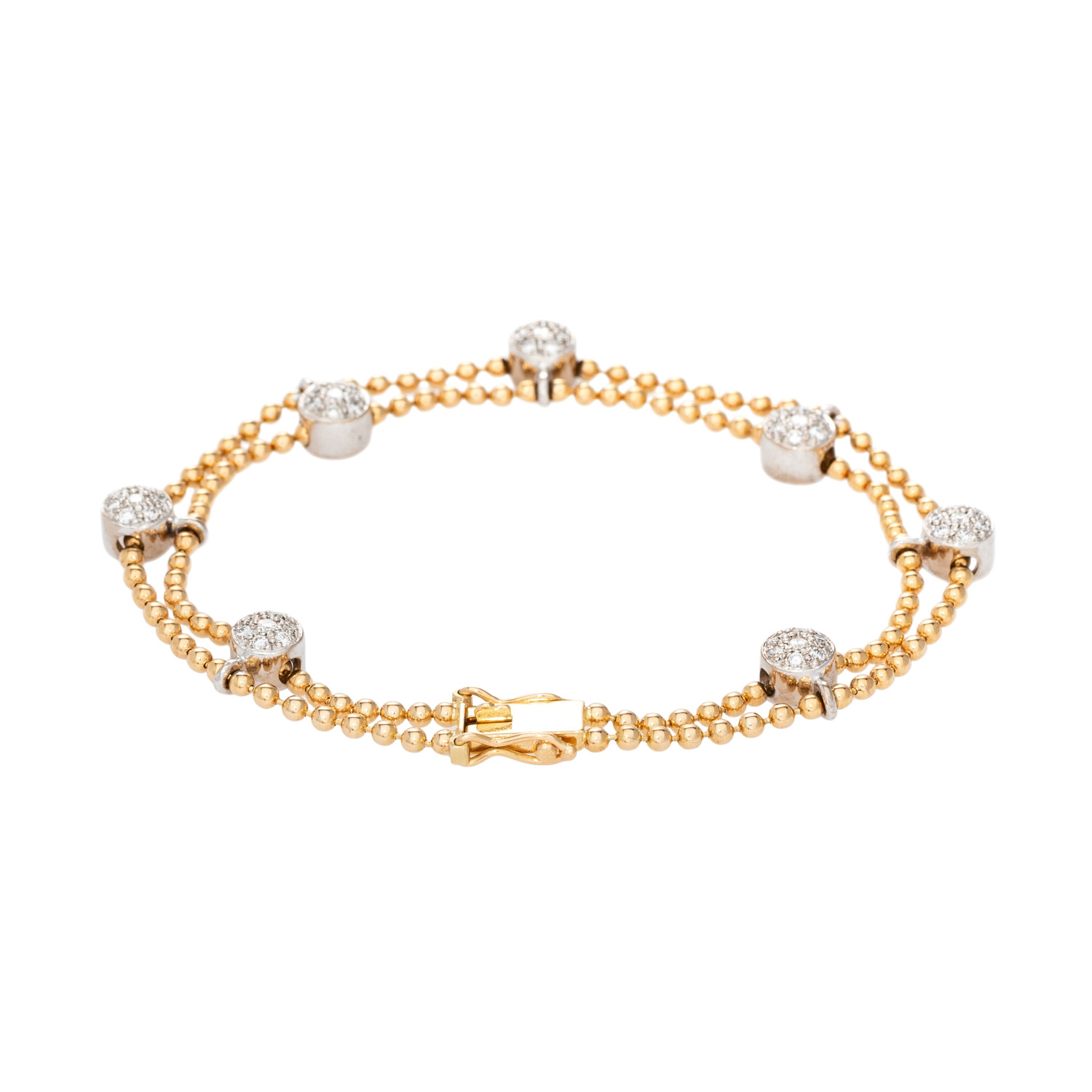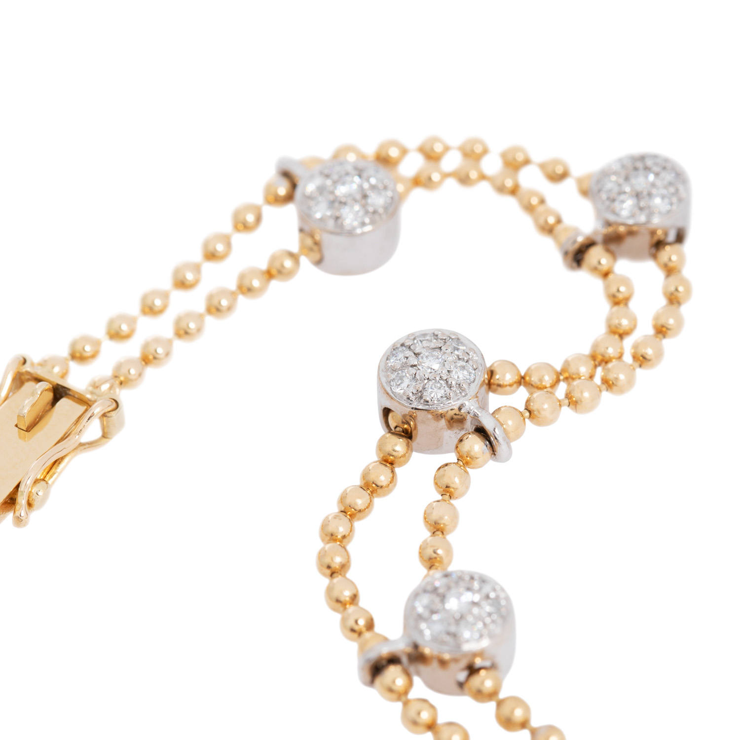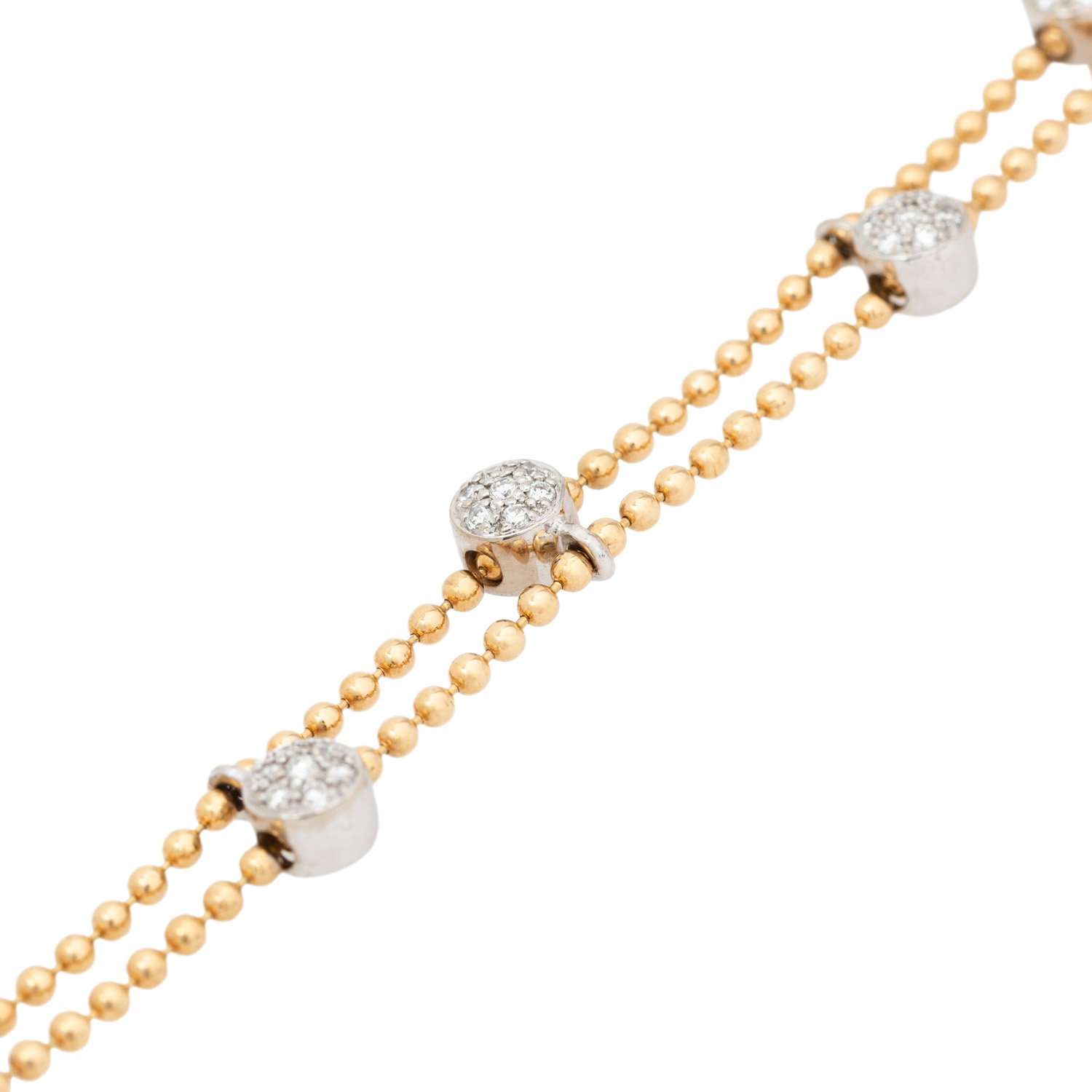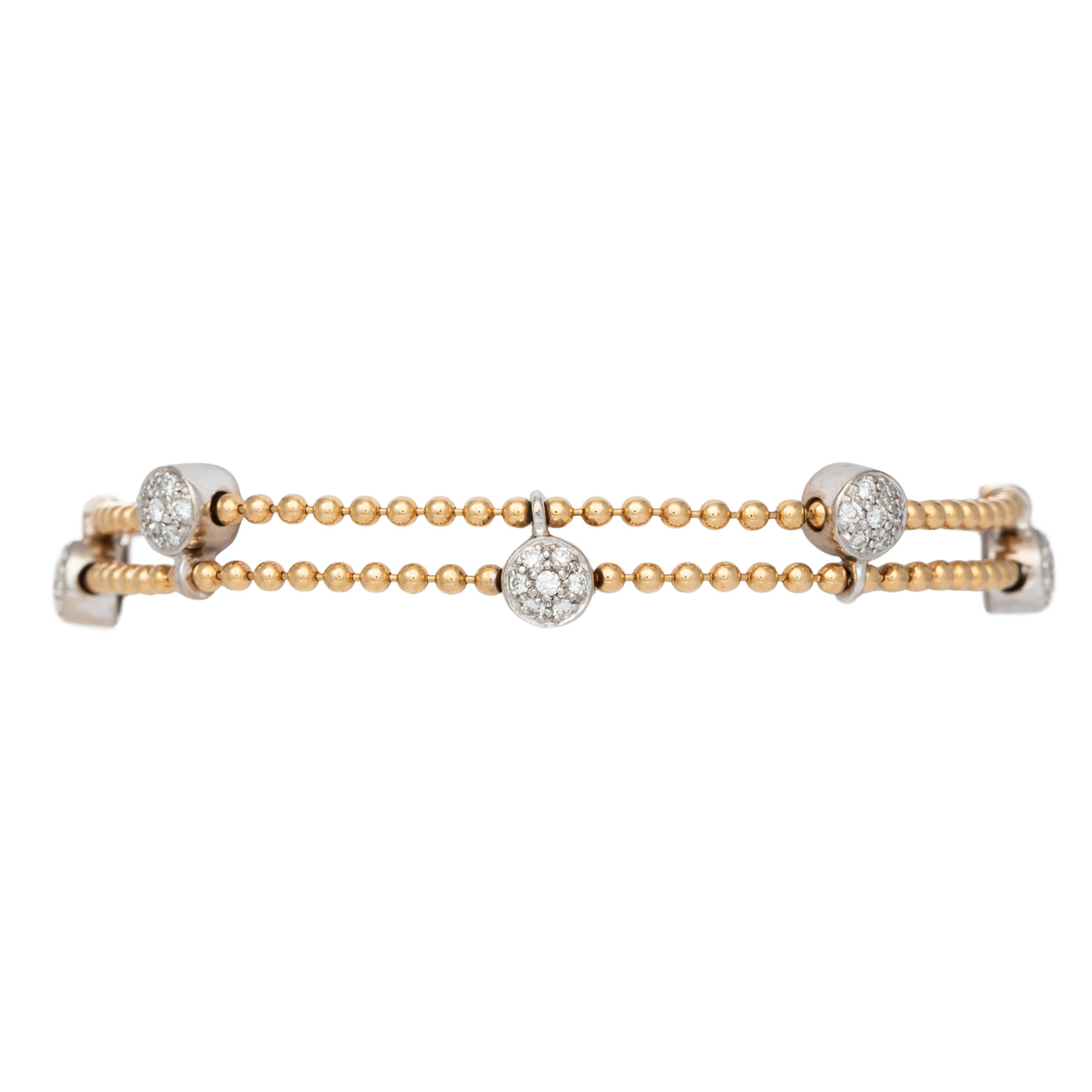 Bracelet with 49 brillant-cut diamonds totalling 0.51 ct (engraved), RW-WHITE (G-H)/VS-SI, 18K yellow gold/white gold, 15.4 g, L: approx. 18 cm, W: approx. 6 - 8.7 mm, 21st century, minimal signs of wear, with hallmark 'LW'.