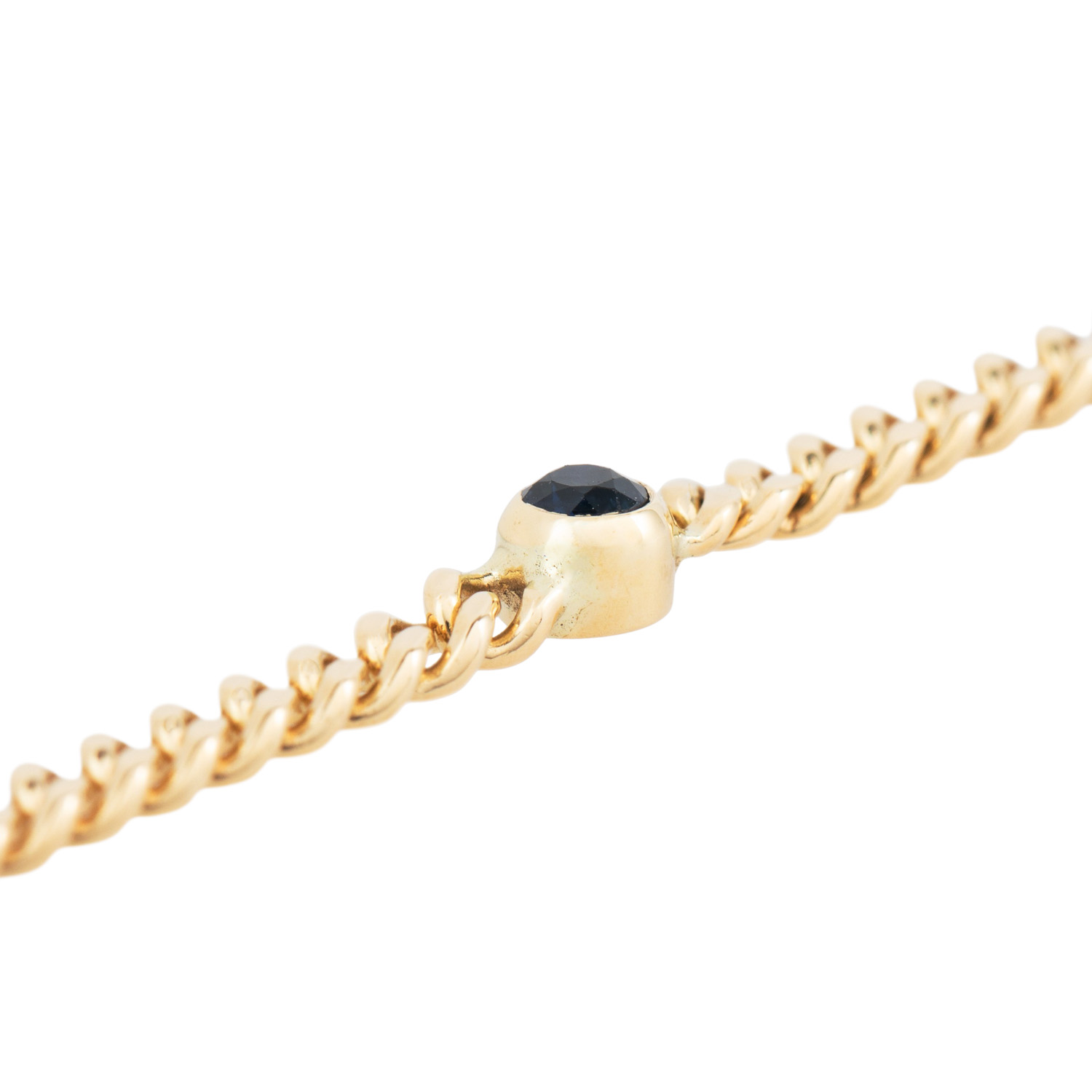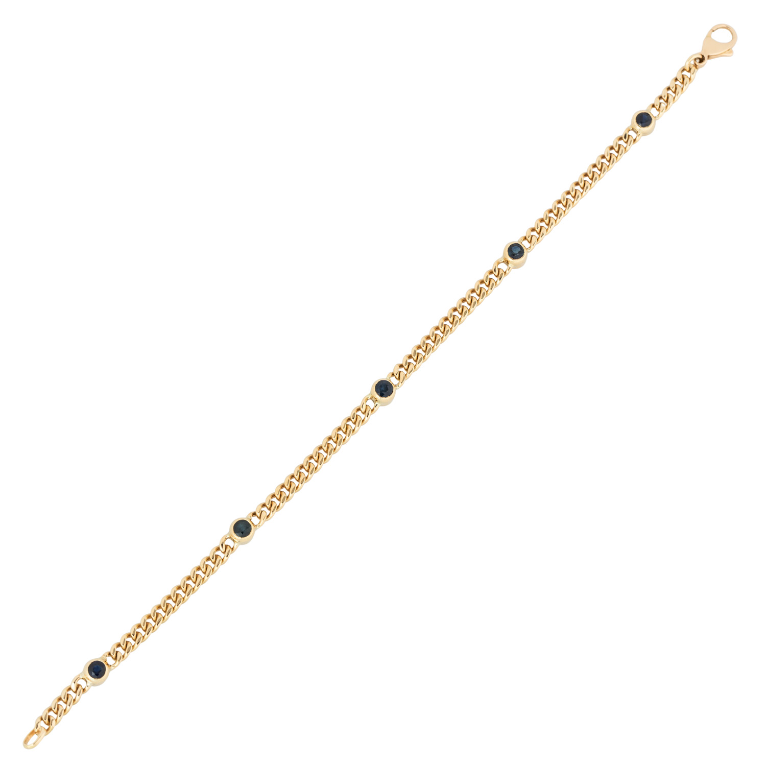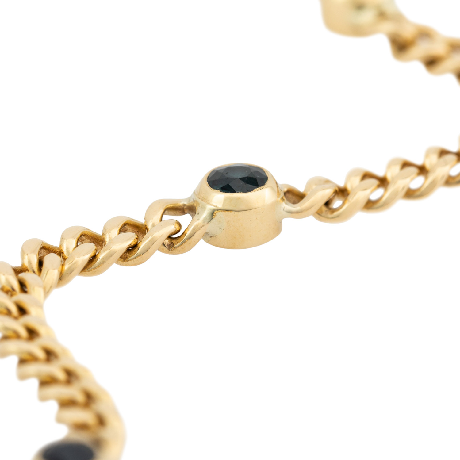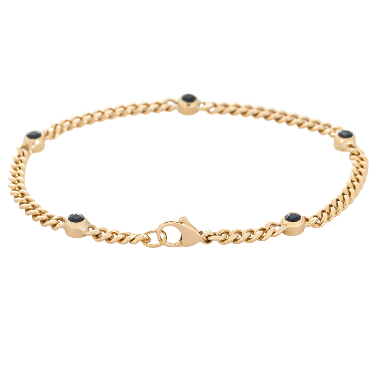 Bracelet with 5 sapphires, round faceted, D: ap. 3.3 mm, 18K yellow gold, 9.6 g, L: 18 cm, W: 4.5 mm, carabiner clasp, late 20th century, minor signs of wear.