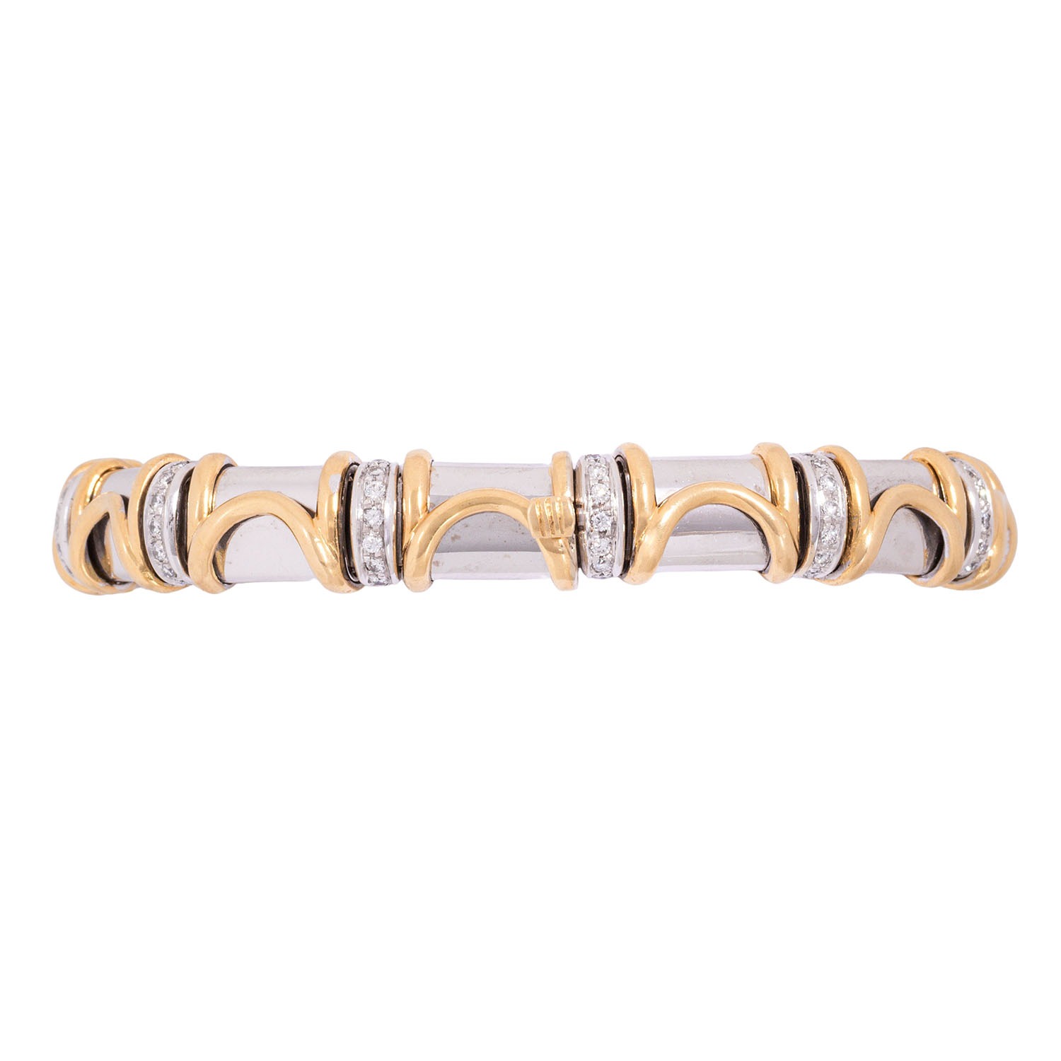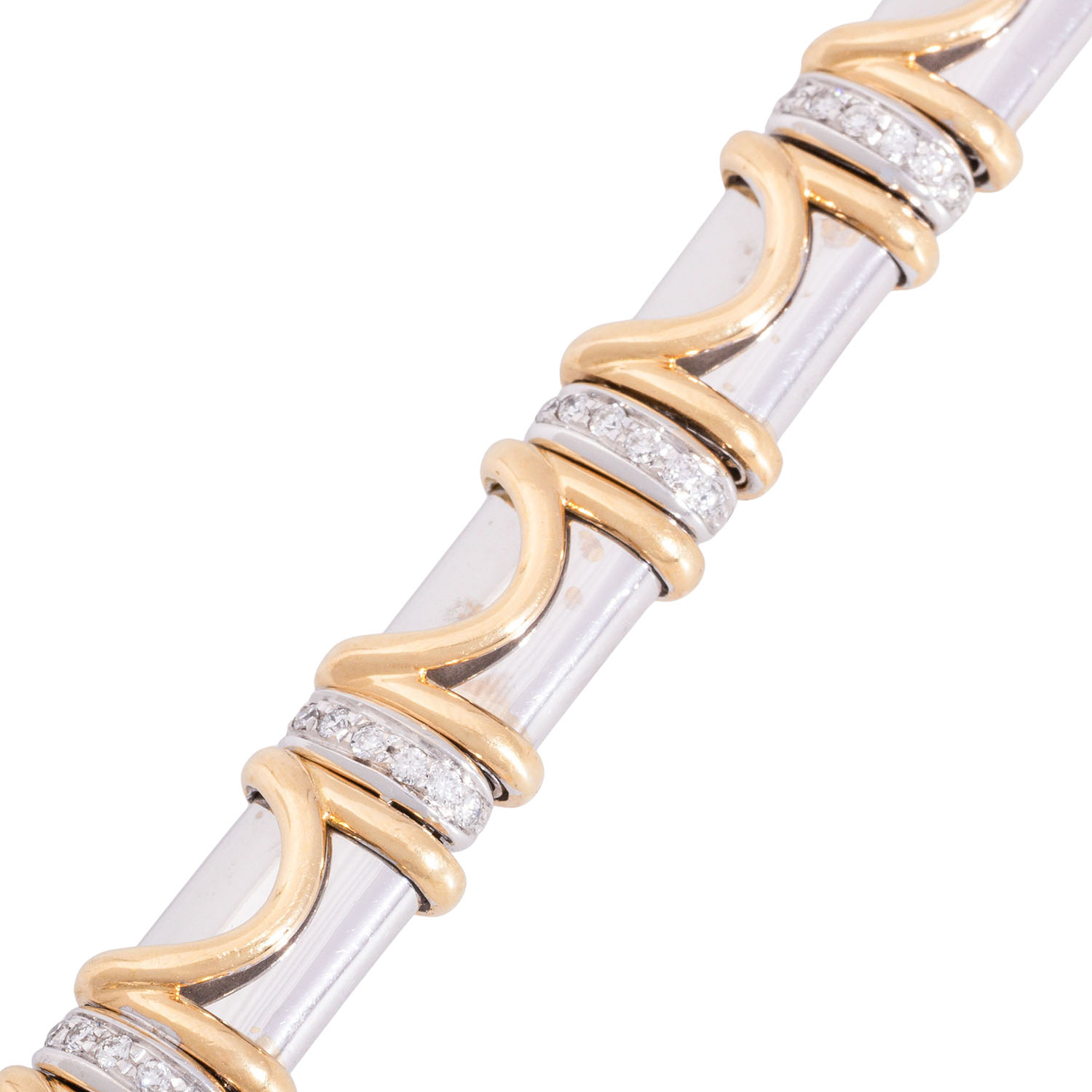 Bracelet with 84 brilliant-cut diamonds totalling approx. 1.02 ct, RW (G)/VS, 18K yellow gold/white gold, 48.6 g, L: approx. 19 cm, W: approx. 10.3 mm, 20th/21st century, signs of wear, with hallmark 'H'.