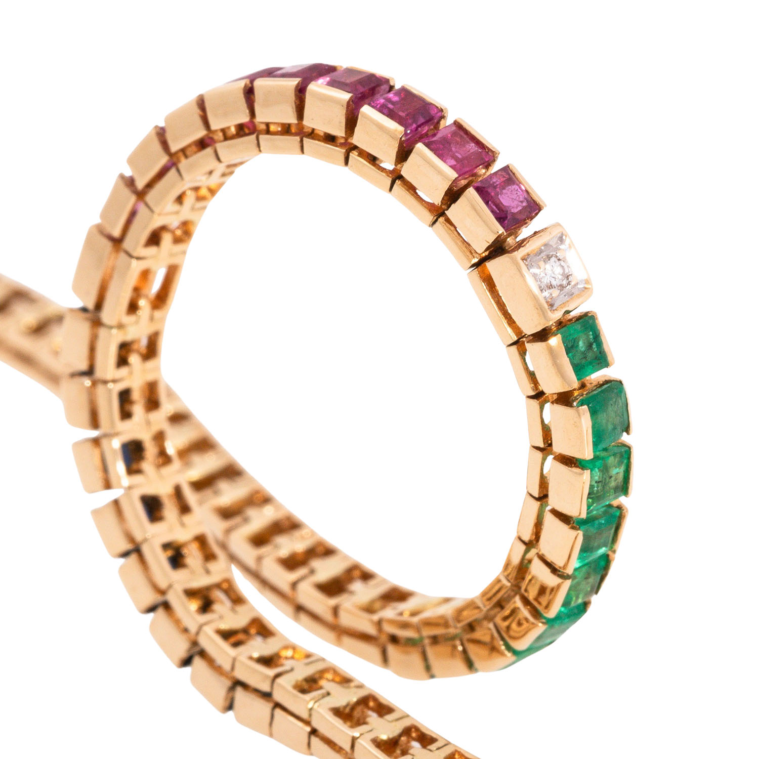Bracelet with 9 sapphires, 9 rubies, 9 emeralds and 2 diamonds