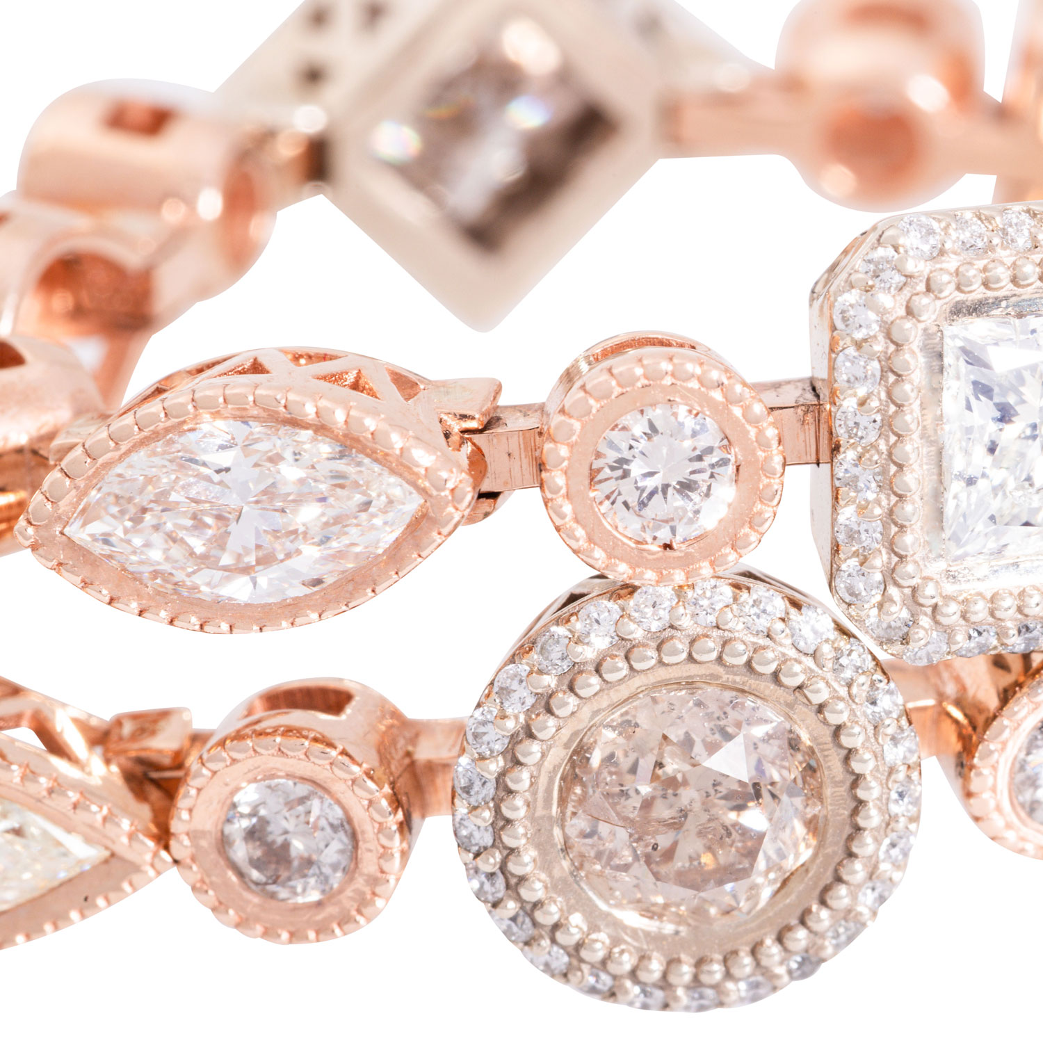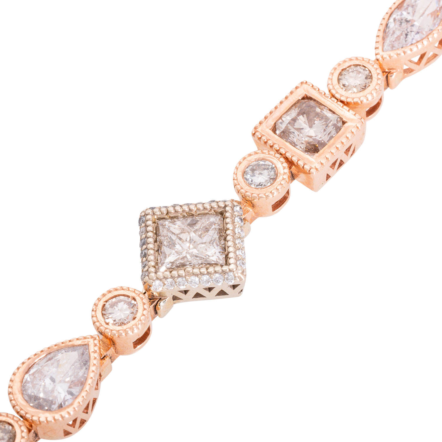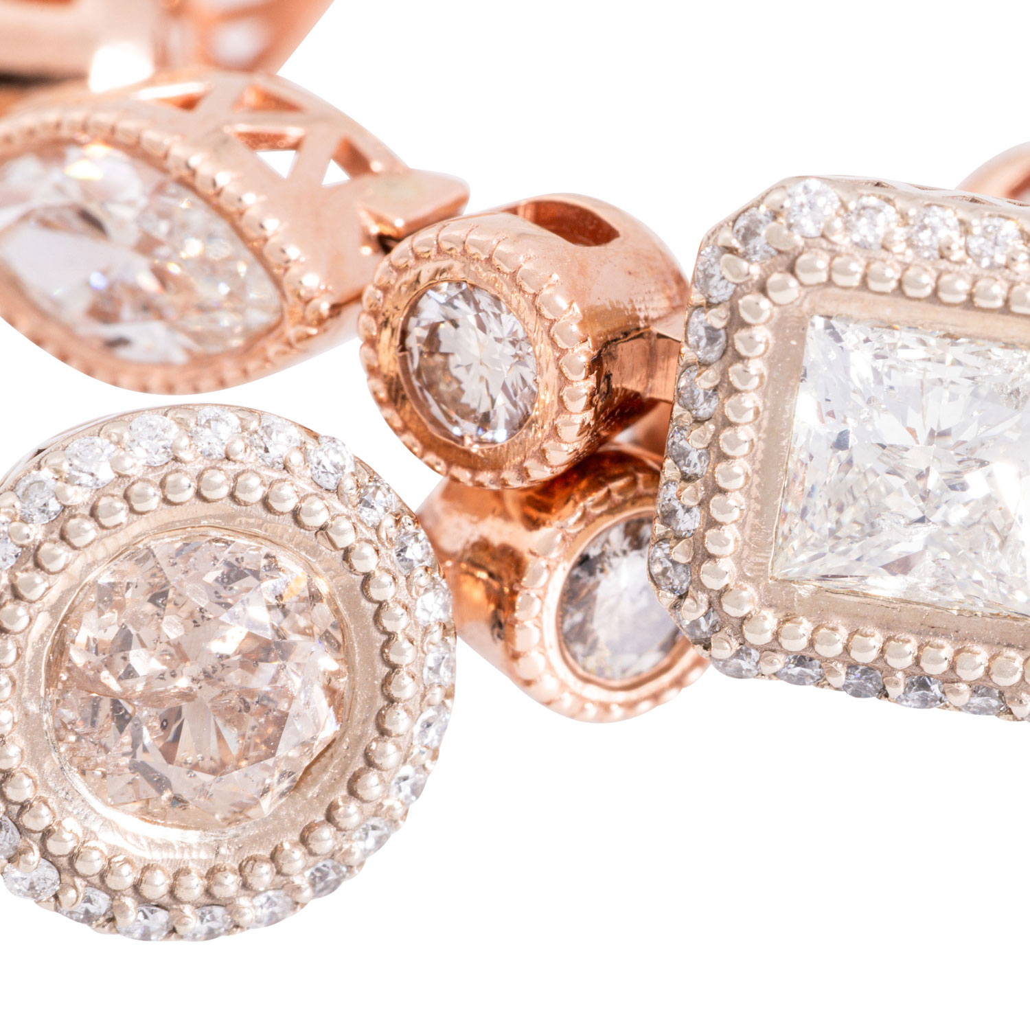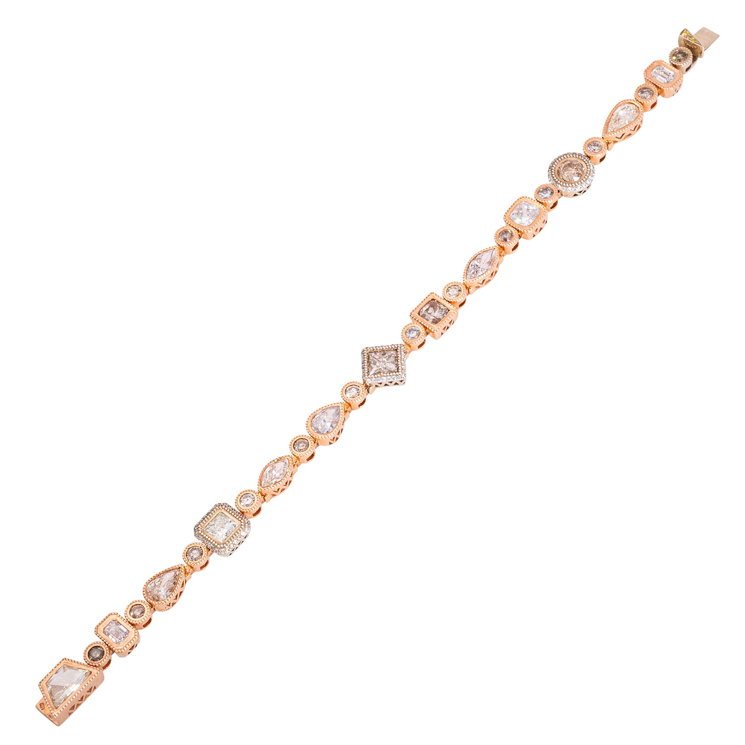 Bracelet with diamonds in various cuts and colours totalling ca. 14.1 ct, WG/RG 14K, 31.4 g, L: 20.5 cm, 21st century, mint condition.