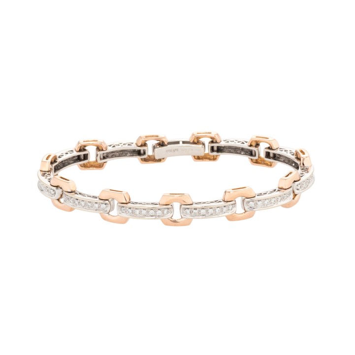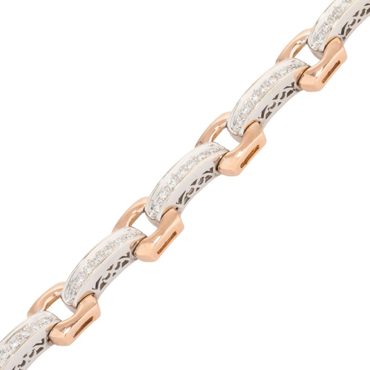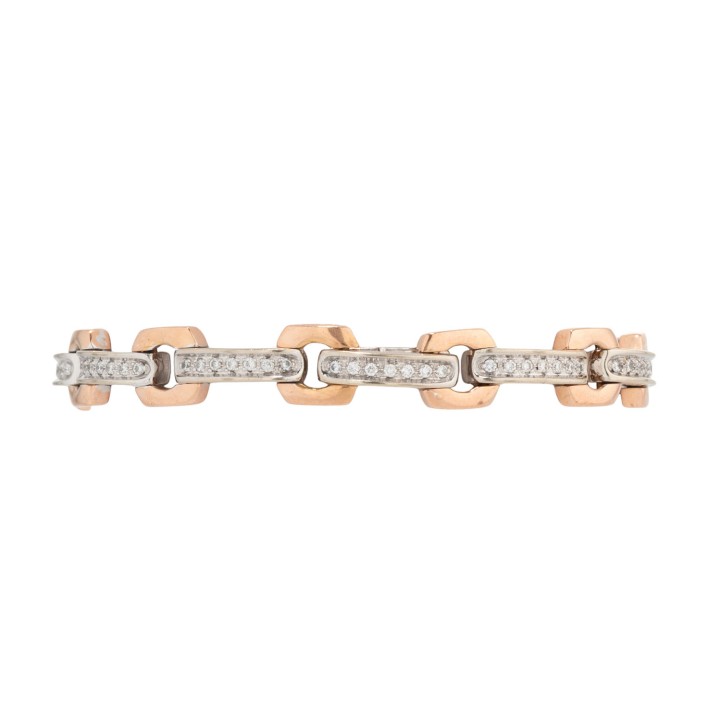 Bracelet with brilliant-cut diamonds totalling ca. 0.84 ct, engraved, good to medium colour and clarity, 18K white and red gold, 27.5 g, L: 18.5 cm, 20th/21st century, signs of wear, engraved 'WILLS' (China).