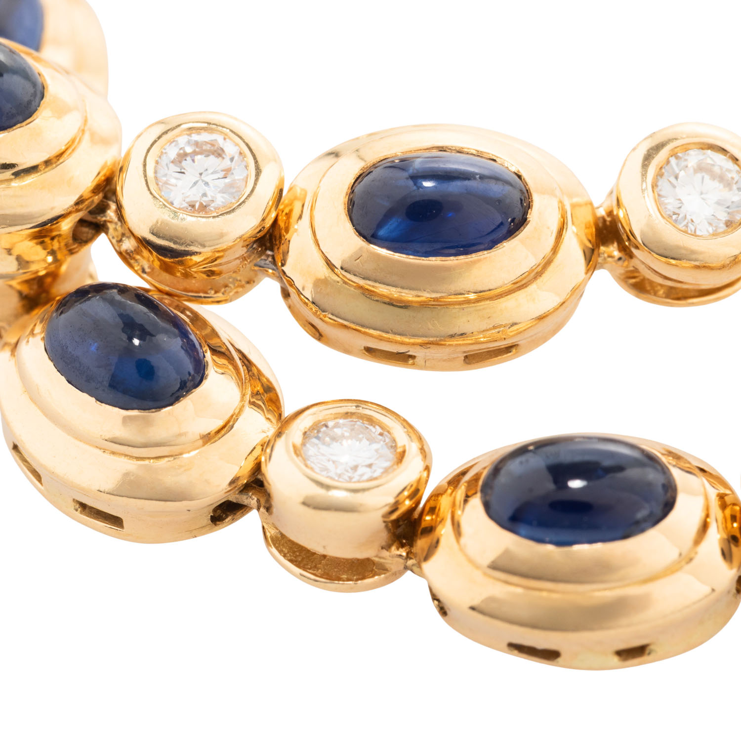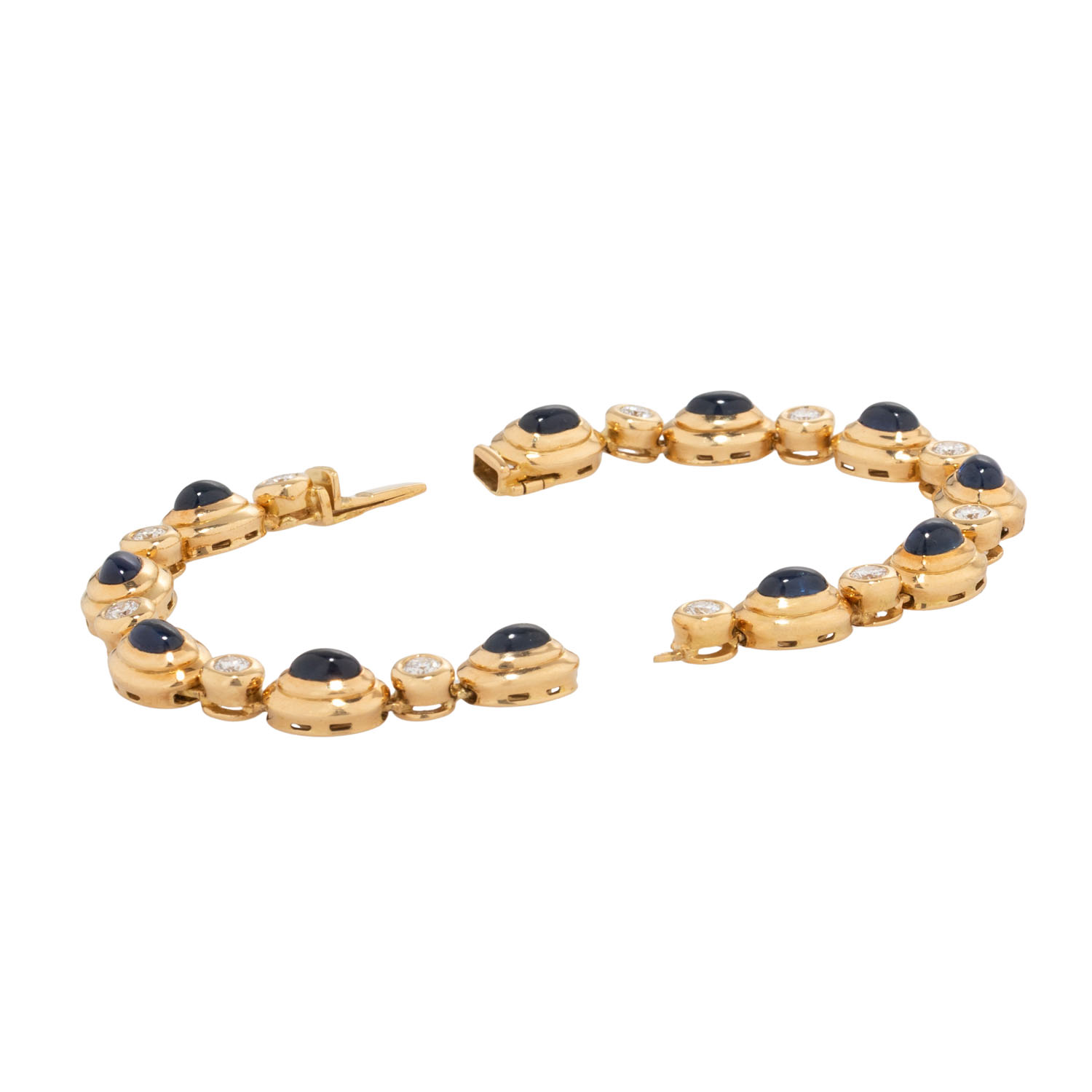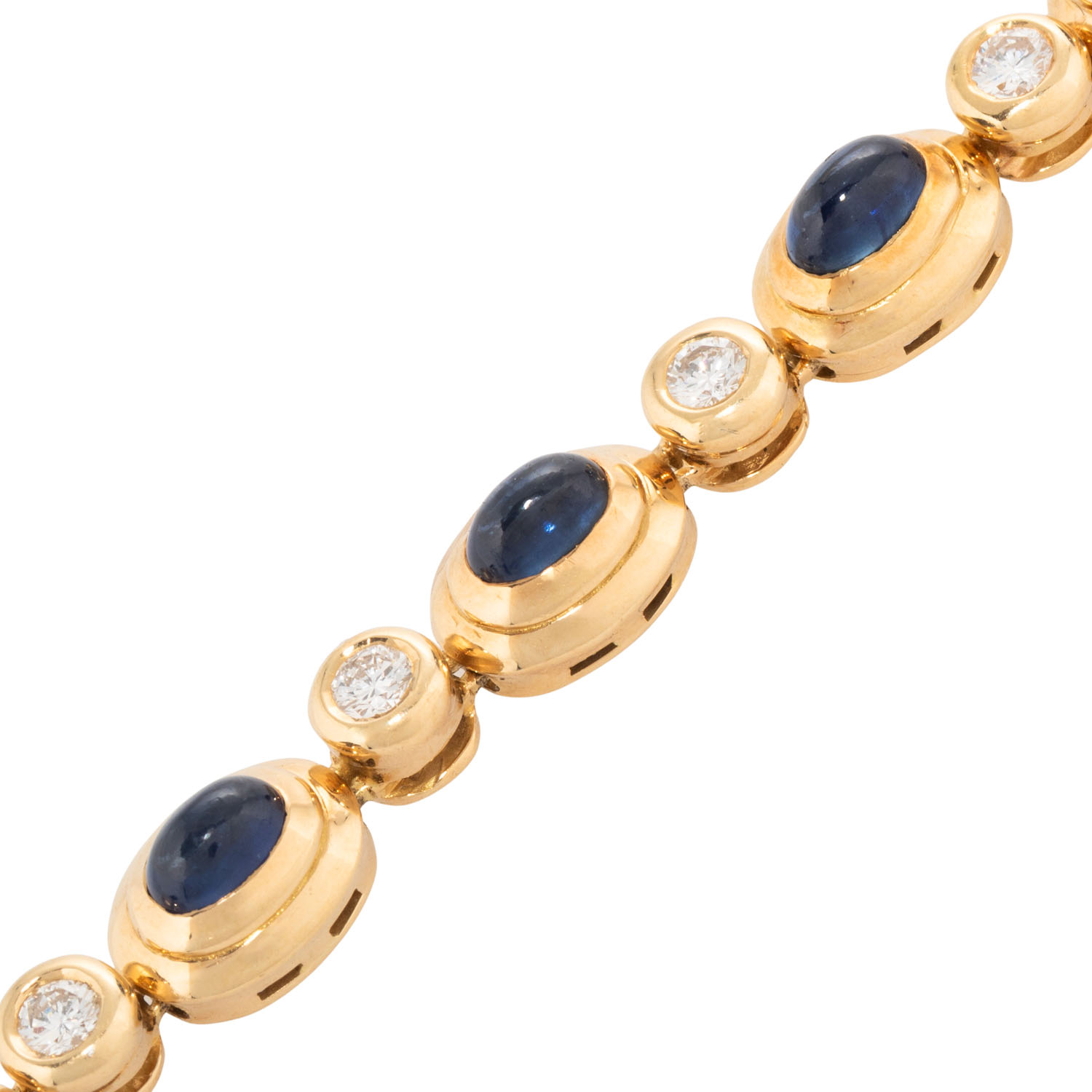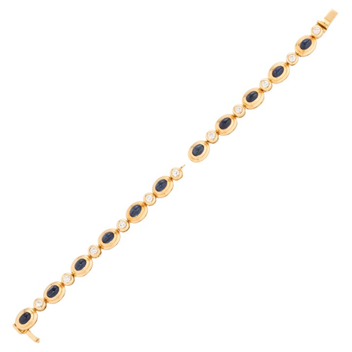 Bracelet with oval cabochon-cut sapphires totalling ca. 5.5 ct and brilliant-cut diamonds totalling ca. 1.5 ct, ca. RW-WHITE (G-H)/VS, 18K yellow gold, 26.1 g, L: 18 cm, late 20th century, bracelet is broken and not wearable like this!