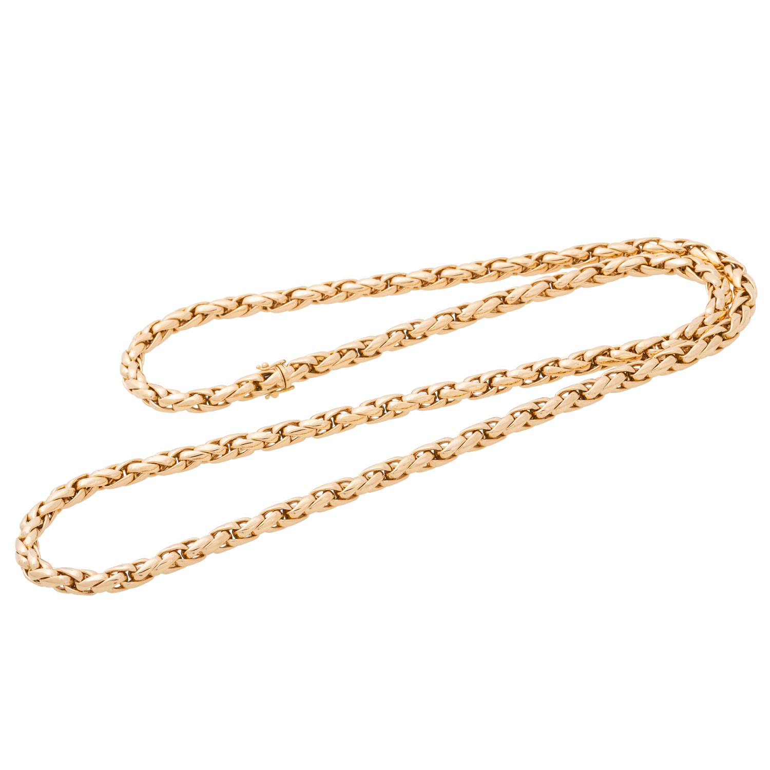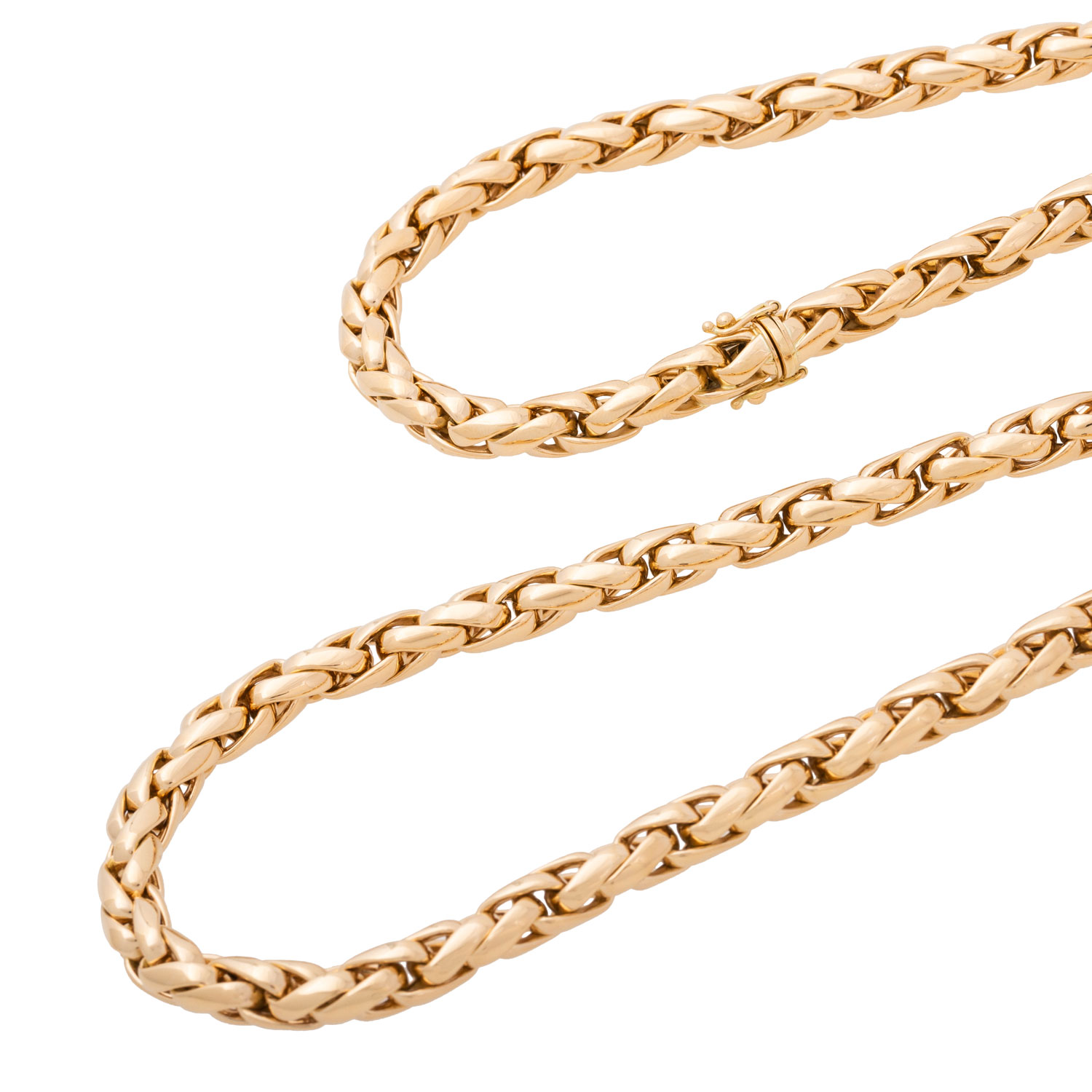 Phantasy necklace, polished, 18K yellow gold, 132.1 g, L: ca. 88 cm, W: ca. 7 mm, early 21st century, minimal signs of wear, box clasp.