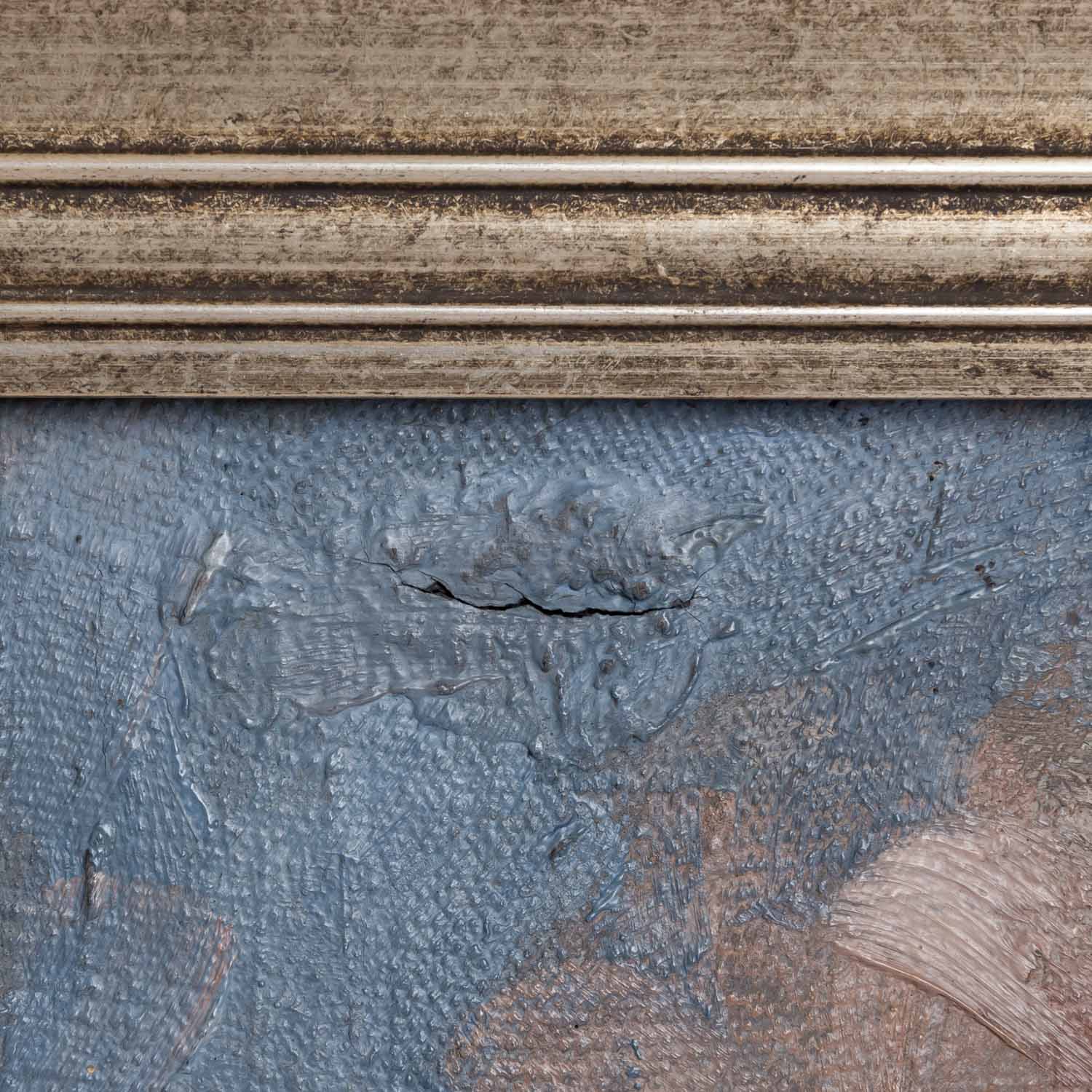 BREITWIESER, Robert, ATTRIBUTED/Circle (1899 - 1975), 'Rhine landscape', 20th century, oil on canvas, HxW: approx. 59 x 74 cm (HxW frame: approx. 71 x 87 cm). Signs of age and rubbing, tear in the canvas, craquelure, colour defects and soiling. With frame (slight damage).