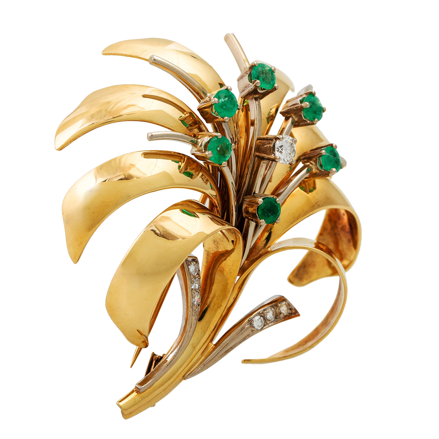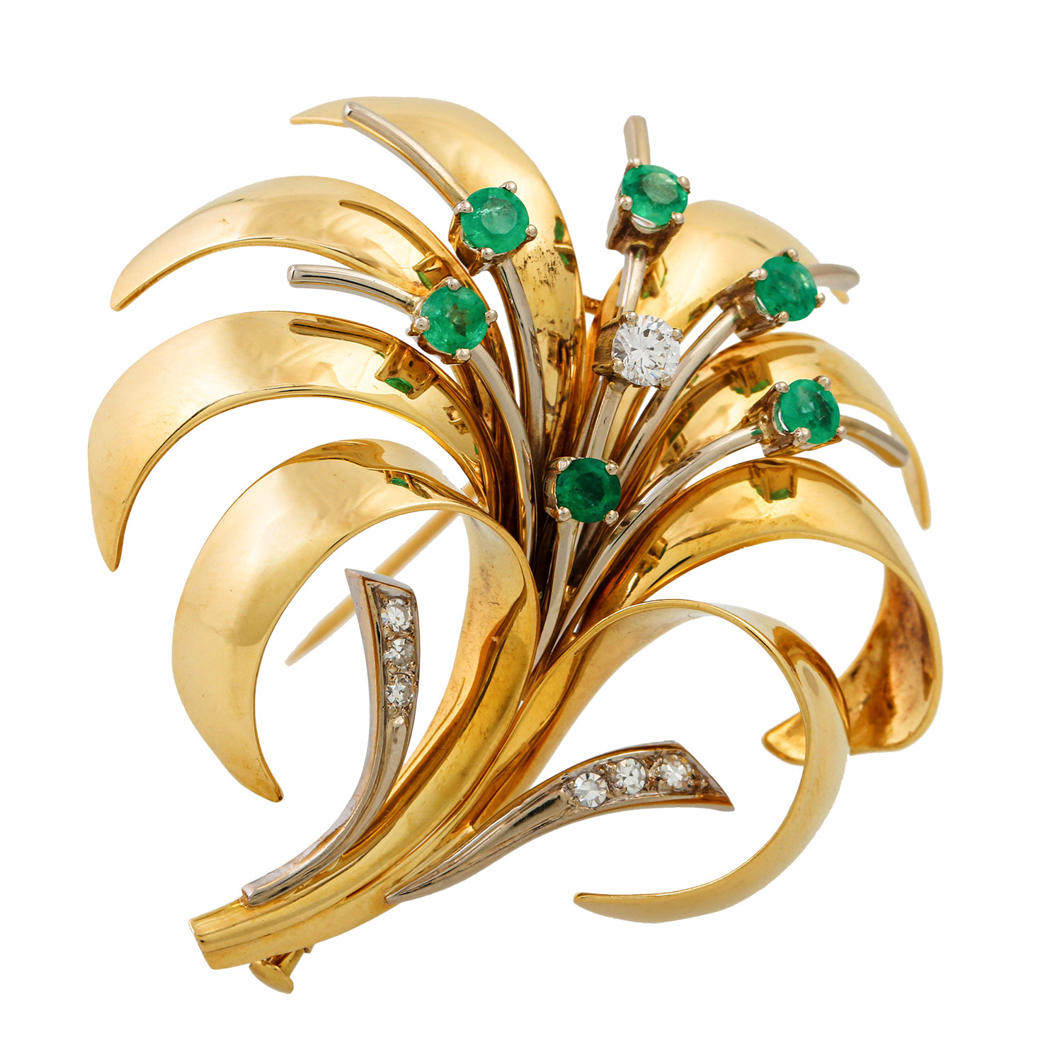 Brooch 'Flower bouquet' with diamonds totaling ca. 2.6 ct,