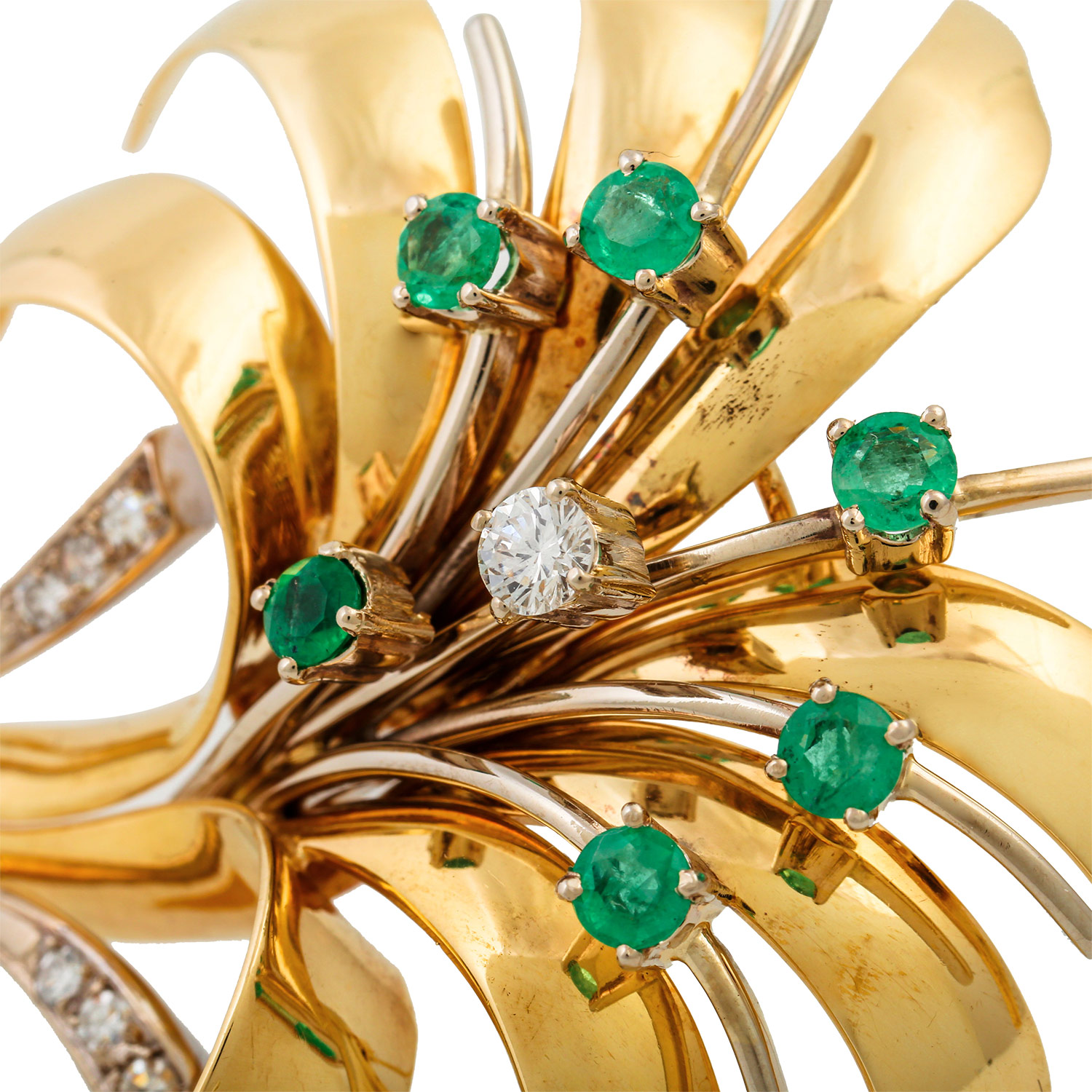 with fac. Emeralds, brilliant-cut diamond of approx. 0.18 ct, approx. LGW/SI, 6 octagonal diam., GG/ WG 14K, D: approx. 5 cm.