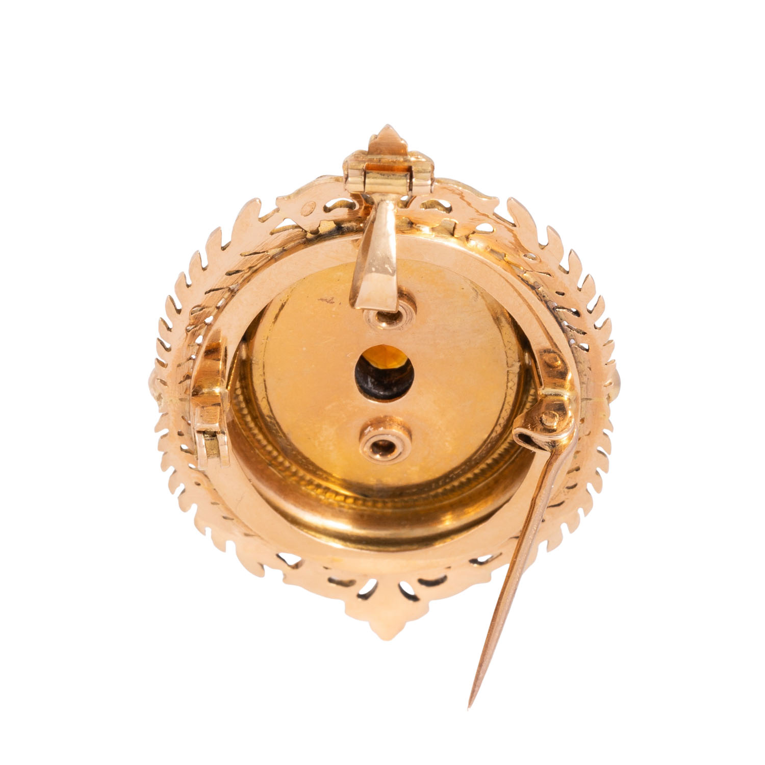 Historism brooch with citrine, 32 half pearls and 4 diamond roses,