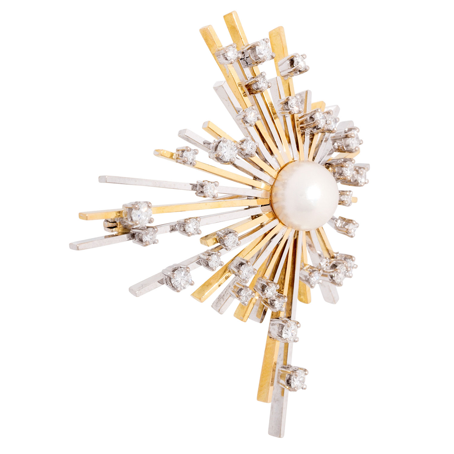 Brooch with Akoya pearl and 24 diamonds total approx. 1.18 ct,