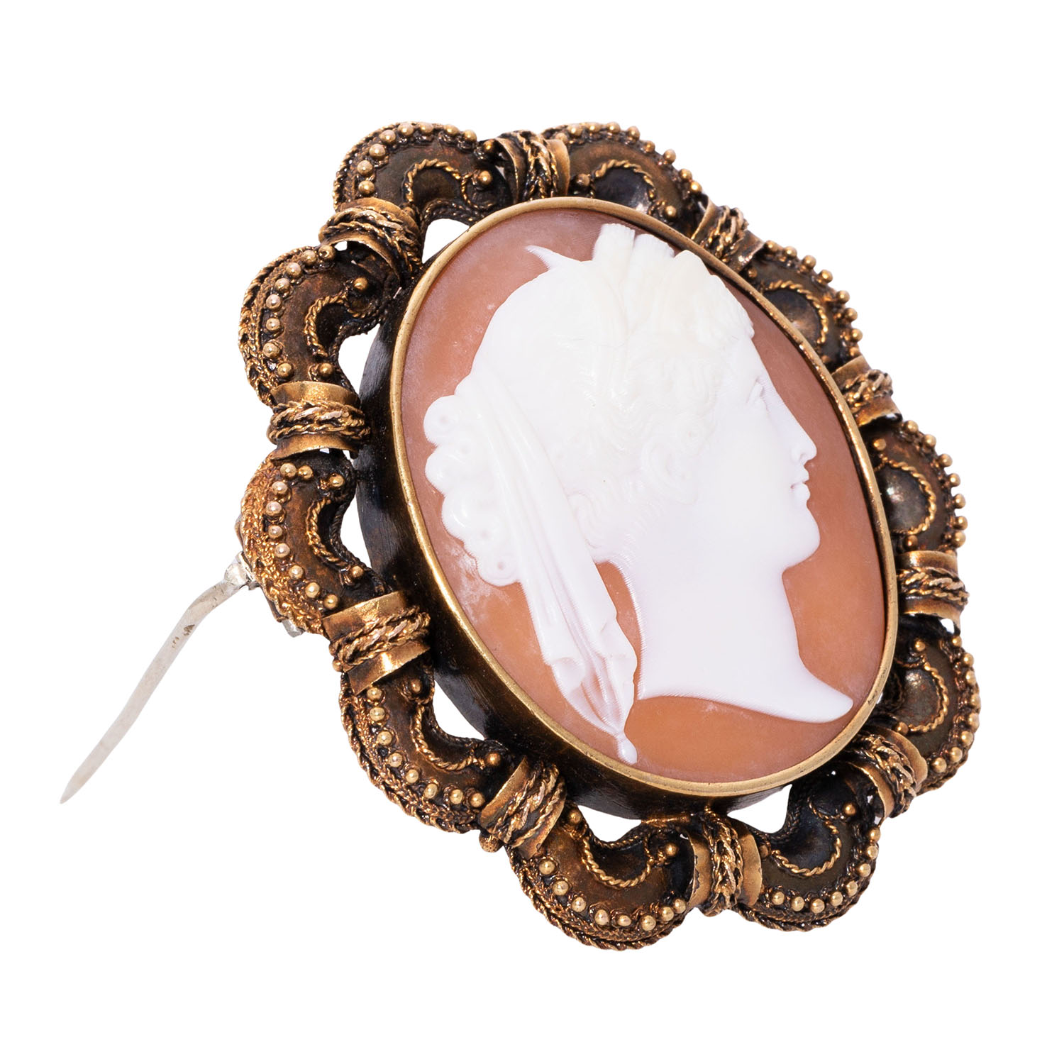 Brooch with shell cameo 'Portrait of a goddess'