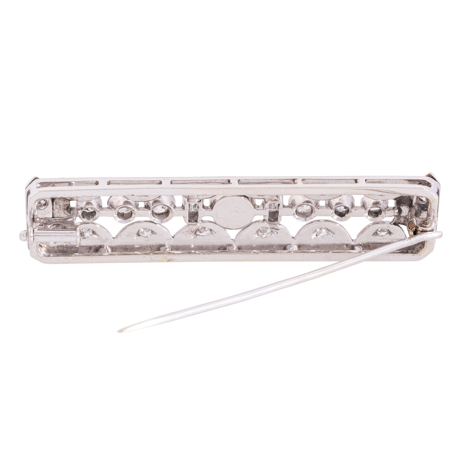 Art Déco fine bar brooch with 3 pearls and 4 diamonds totaling approx. 0.6 ct,