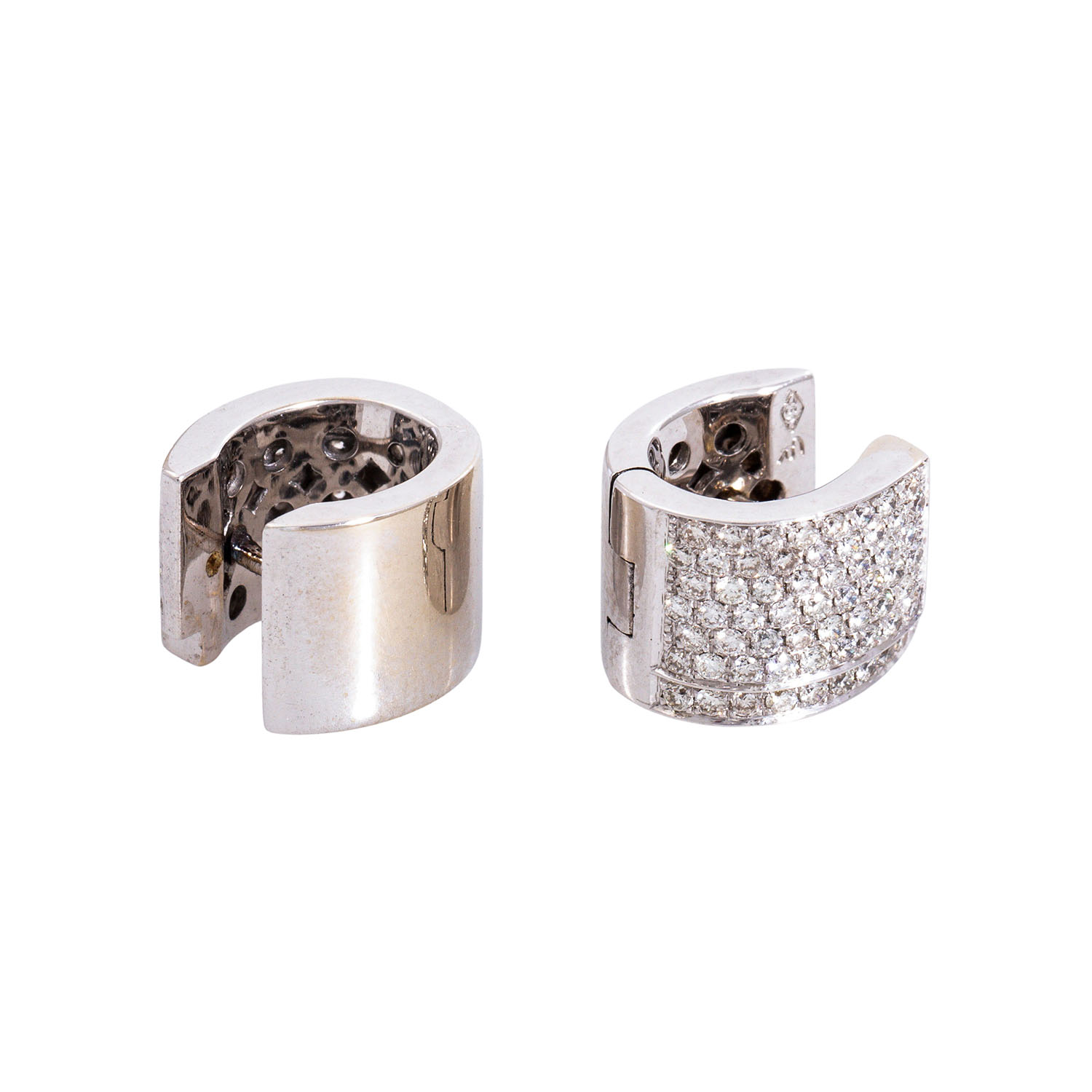 Pair of hinged hoop earrings with 56 brilliant-cut diamonds,