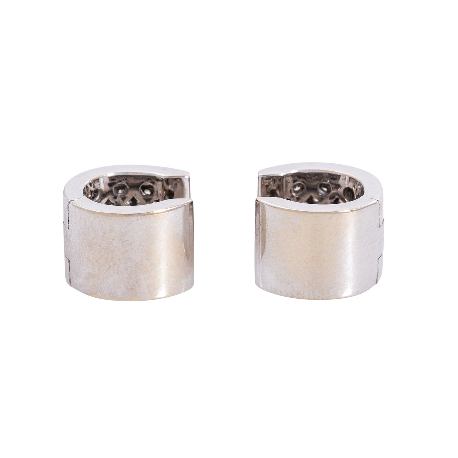 Pair of hinged hoop earrings with 32 brilliant-cut diamonds,