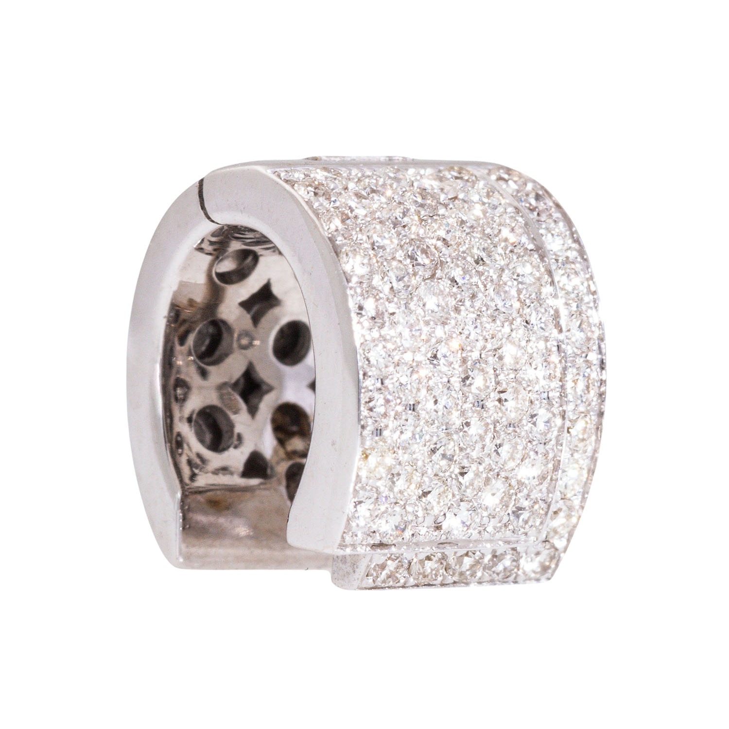 BUCHERER pair of hoop earrings with 152 brilliant cut diamonds totalling ca. 1.44 ct, RW (G)/VS, 18K white gold, 8.9 g, 21st century, minimal signs of wear.