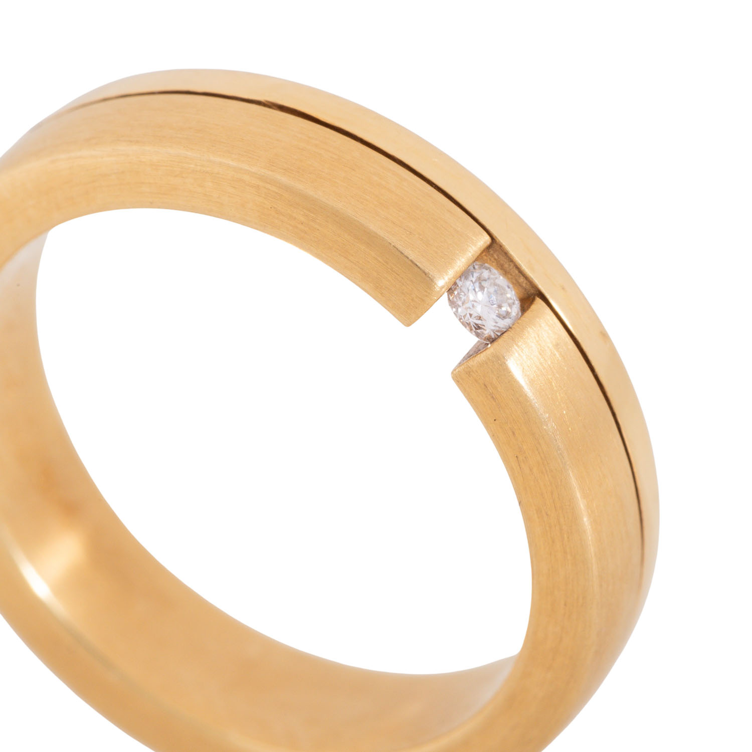 BUNZ ring with brilliant-cut diamond of 0.05 ct (hallmarked), good to very good colour and clarity, YG 18K, 8.9 g, RW: 54.5, 20th/21st century, minimal signs of wear.