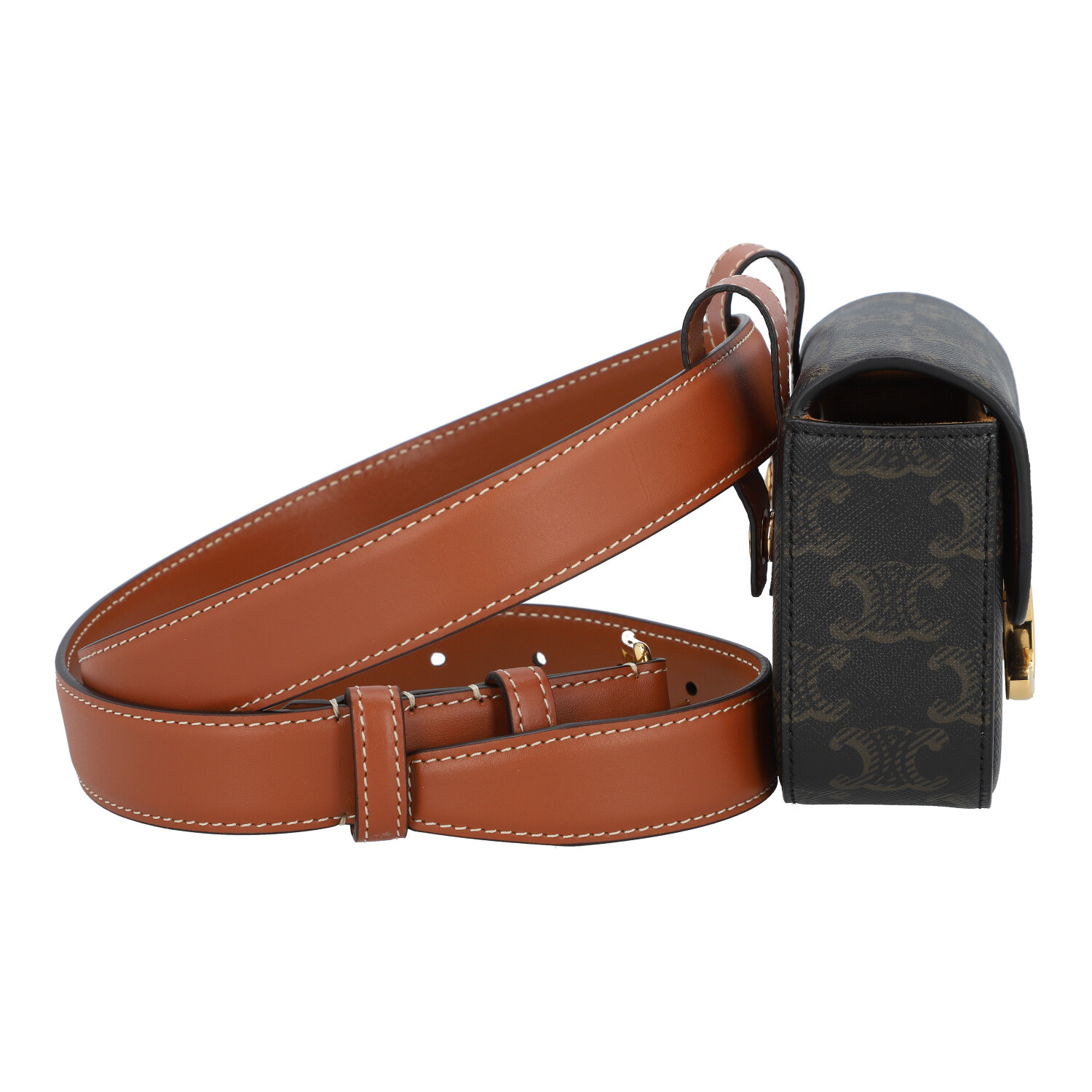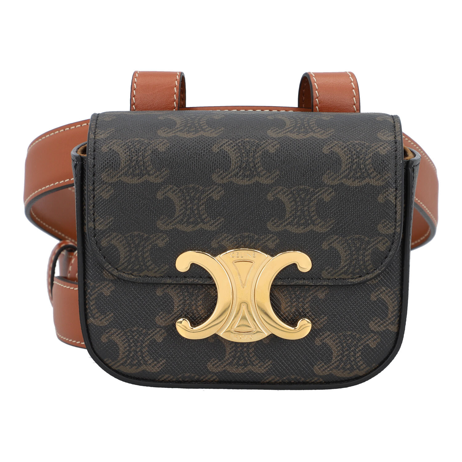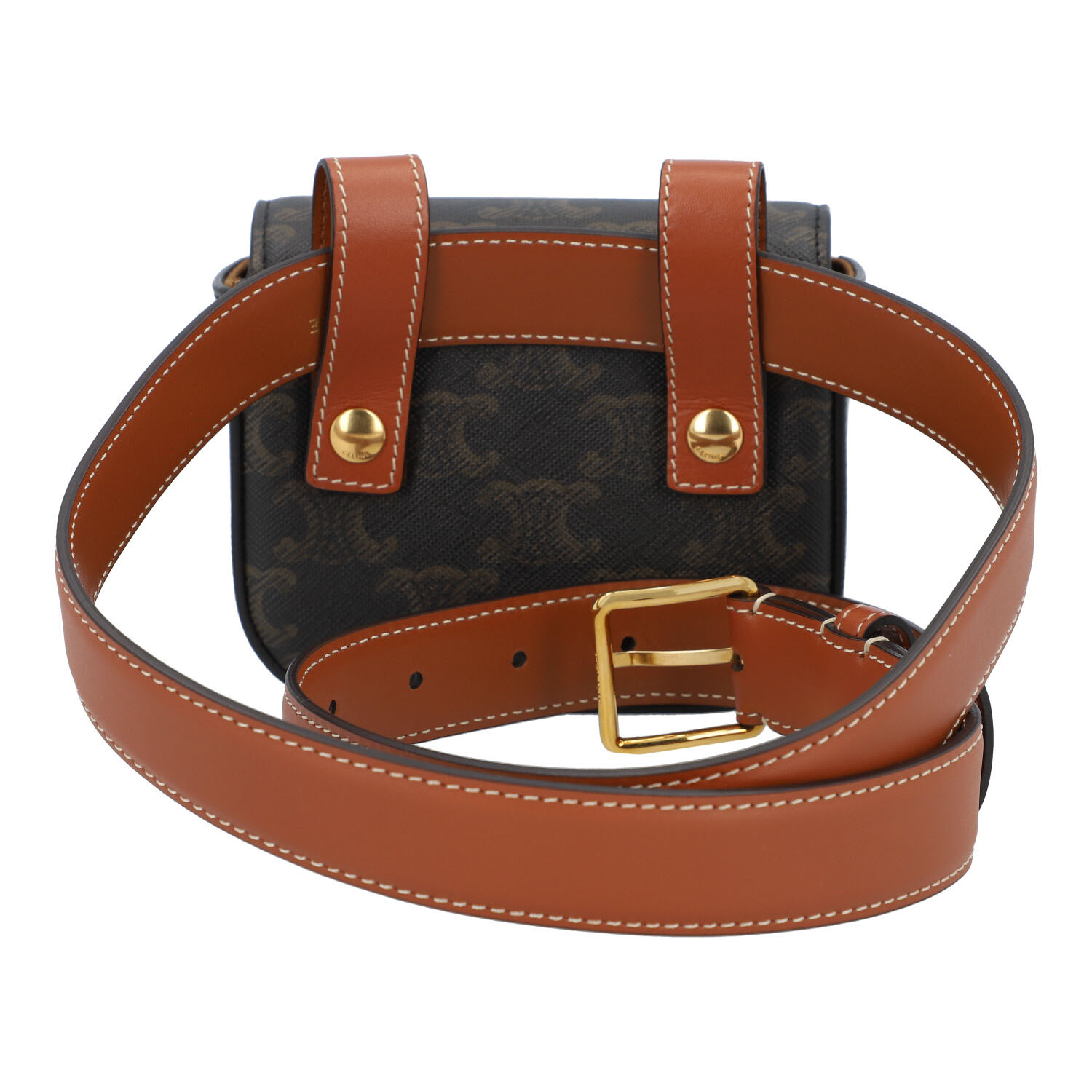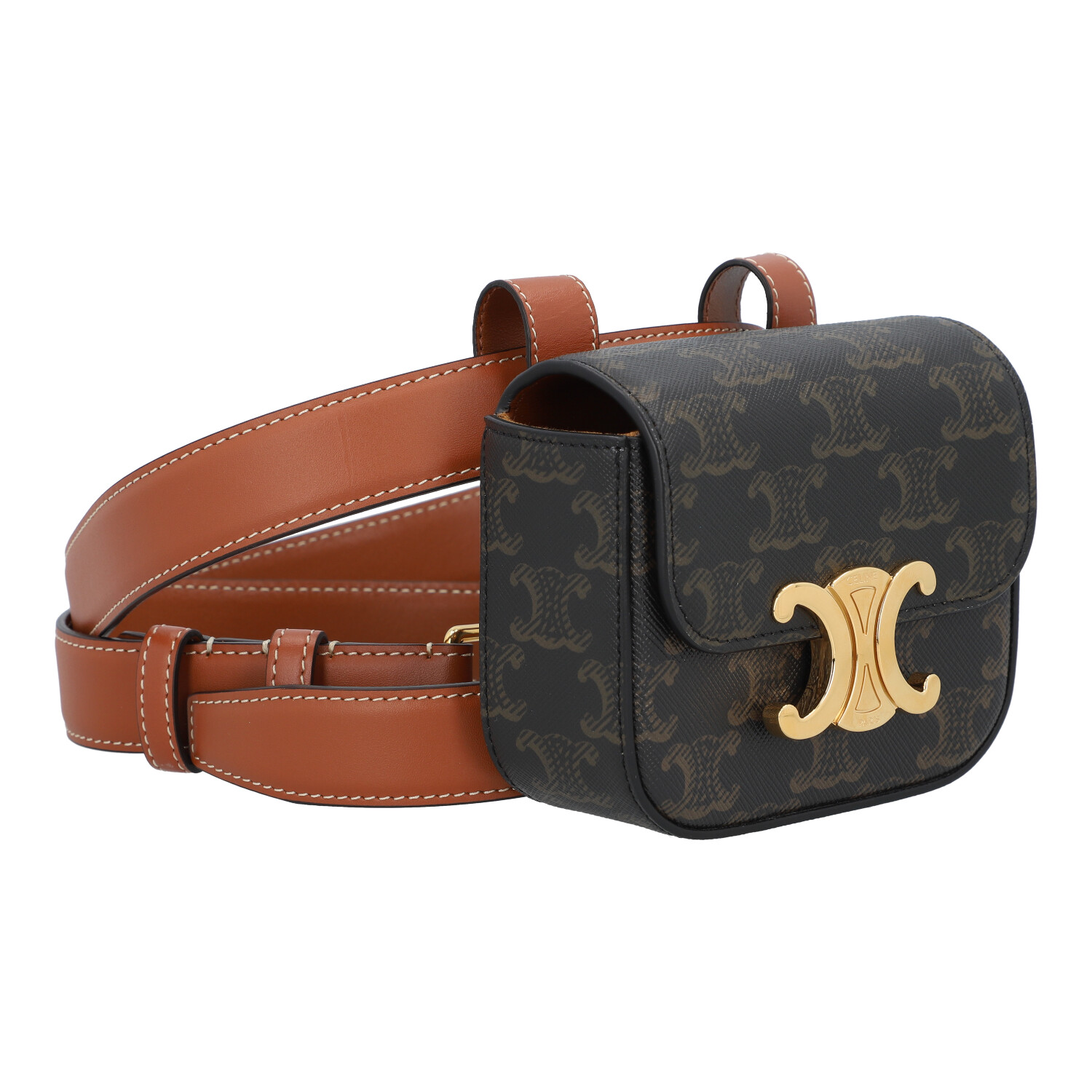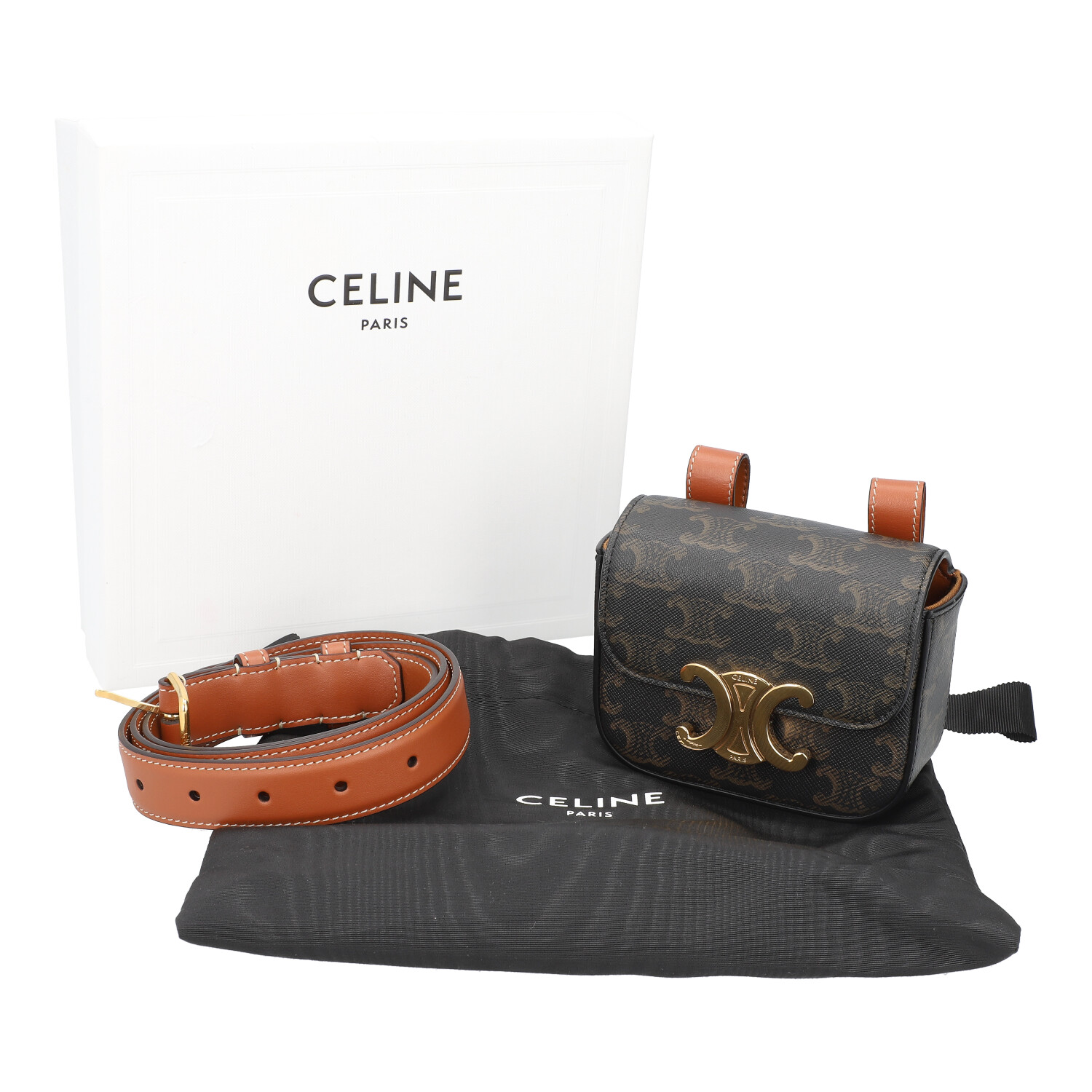 CELINE belt bag. Retail price 1.150,-€. Belt strap (length 85cm) made of leather in light brown with small, detachable bag with classic mTriomphe logo pattern and gold-colored hardware. Box and dust bag enclosed. In very good condition.