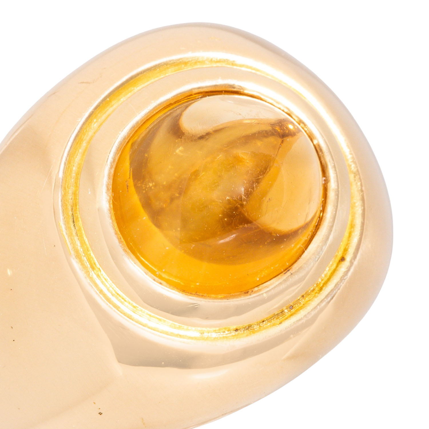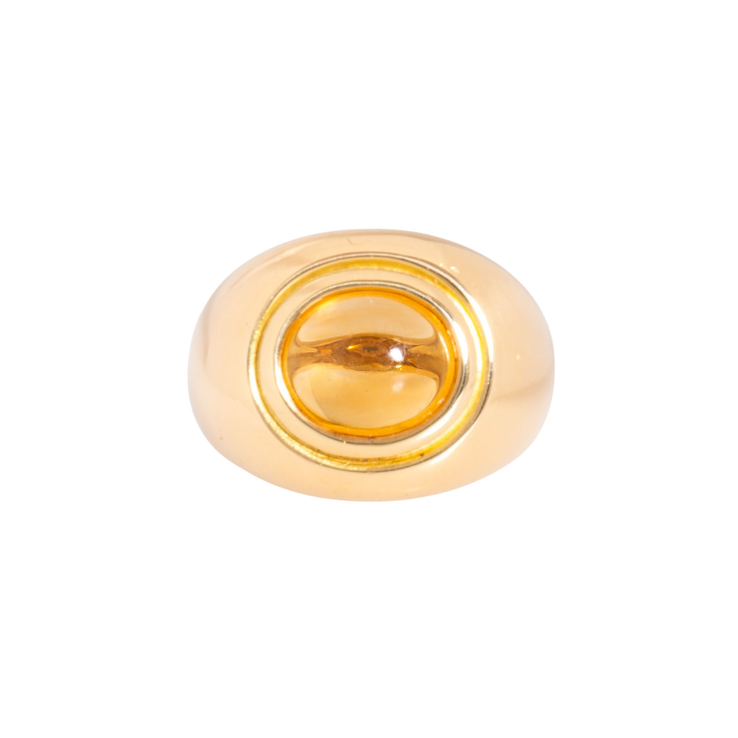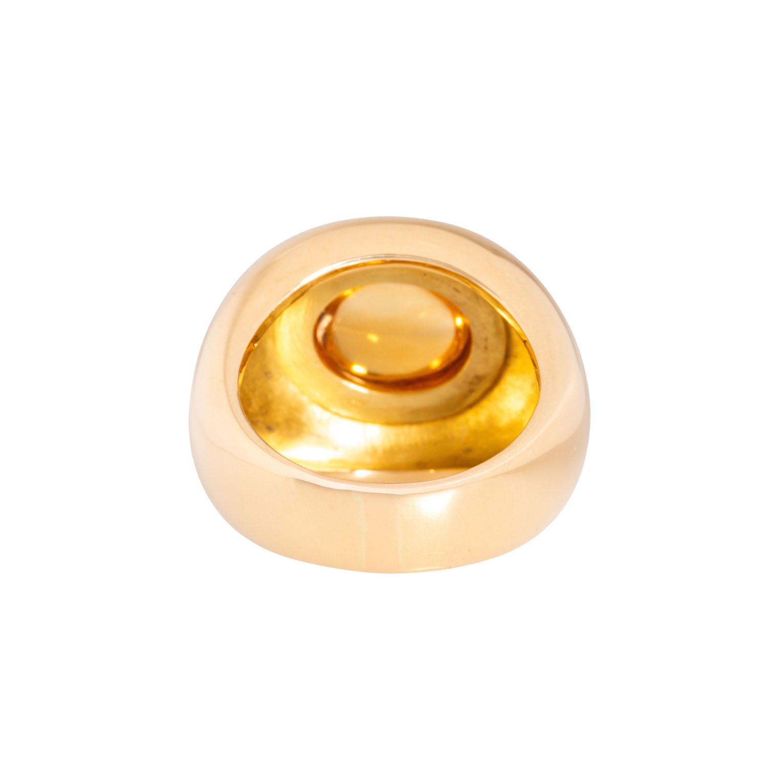 CADA Ring with oval citrine cabochon, ap. 12 x 10 mm, 18K yellow gold, 21.6 g, ring size 58, late 20th century, minimal signs of wear, hand crafted.